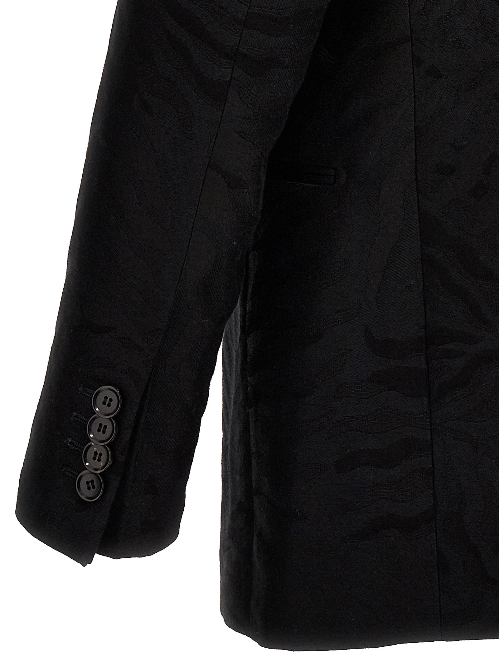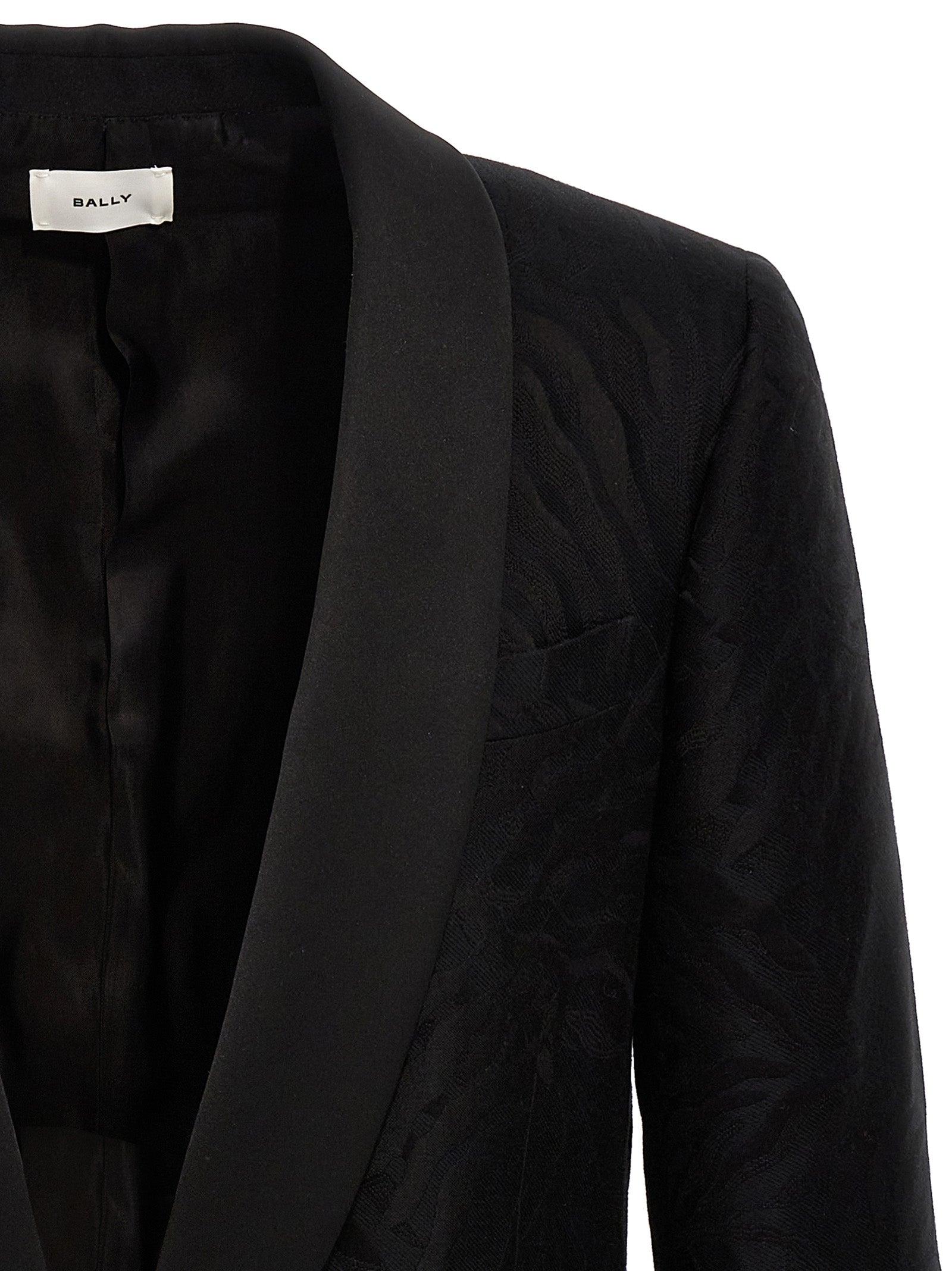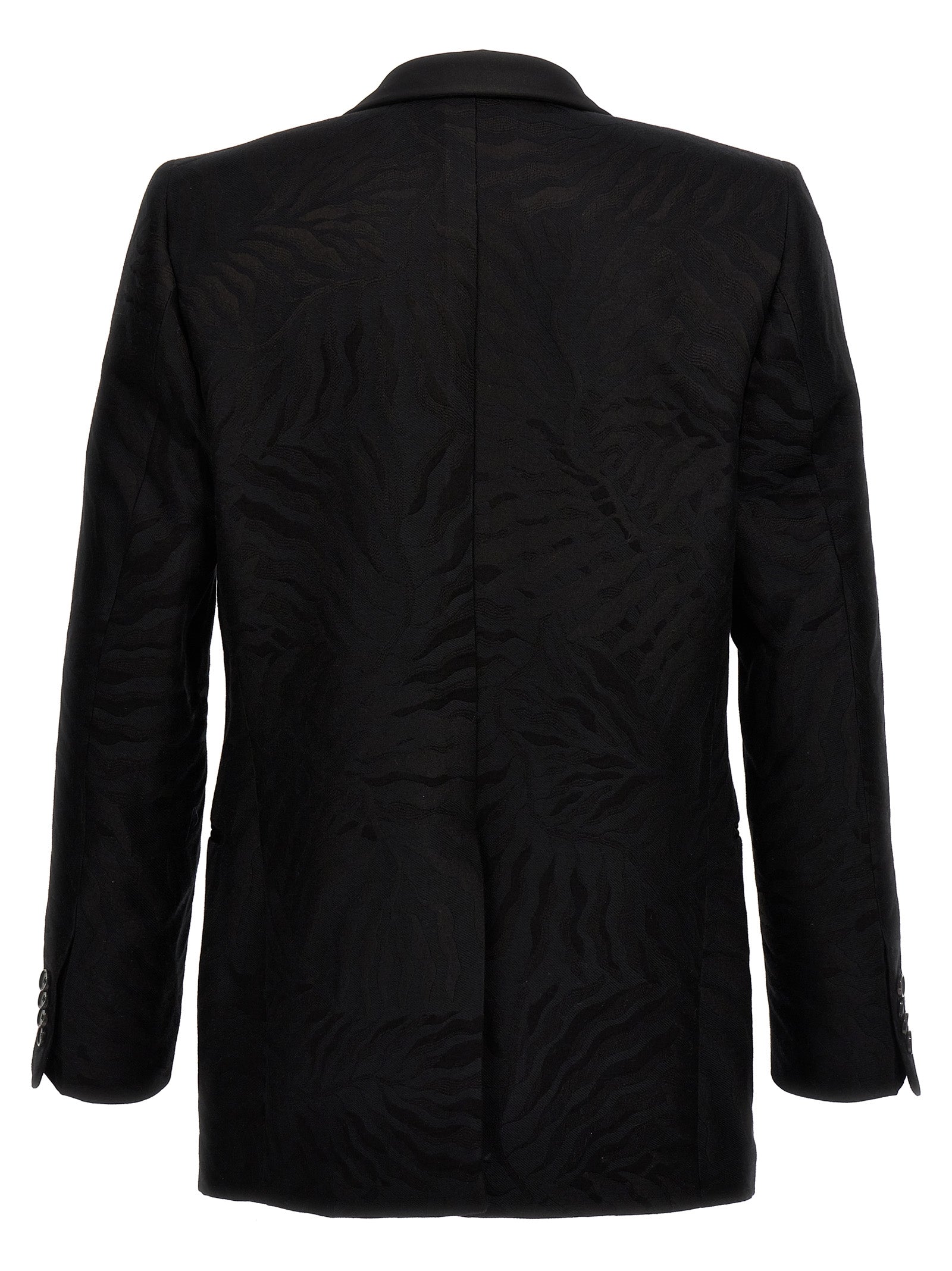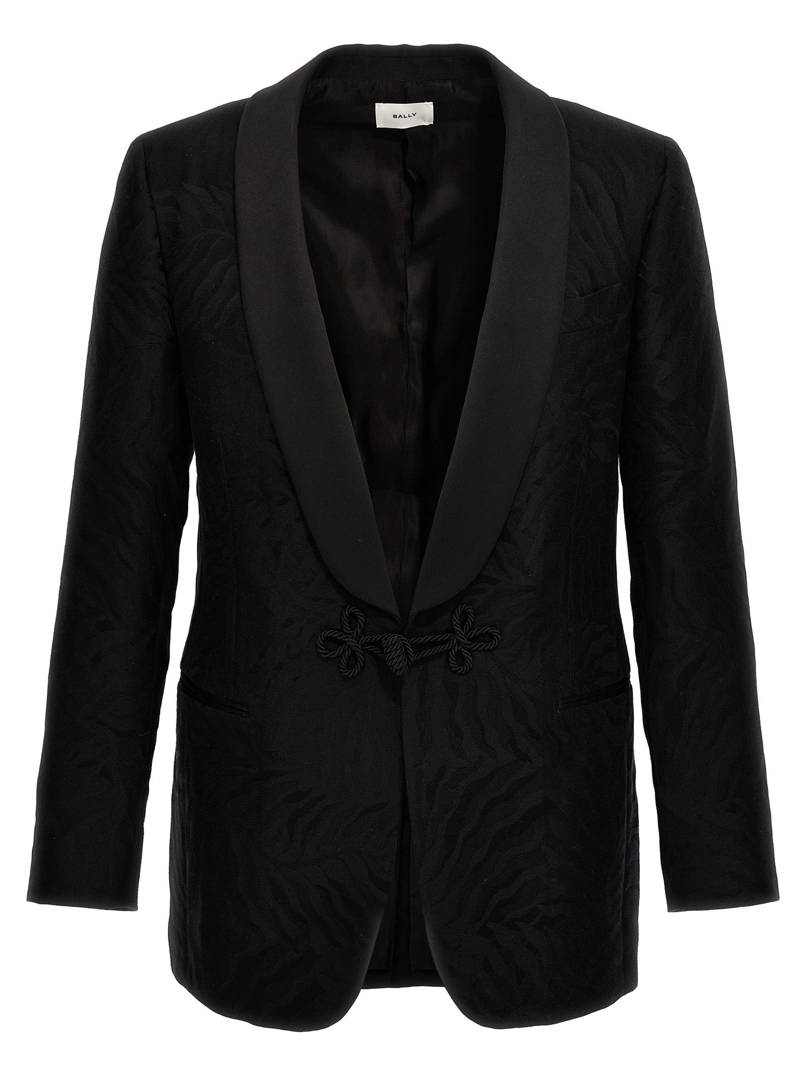 Single-breasted blazer in wool blend cotton with jacquard fabric with shawl lapels in satin fabric, satin rope samaro closure.