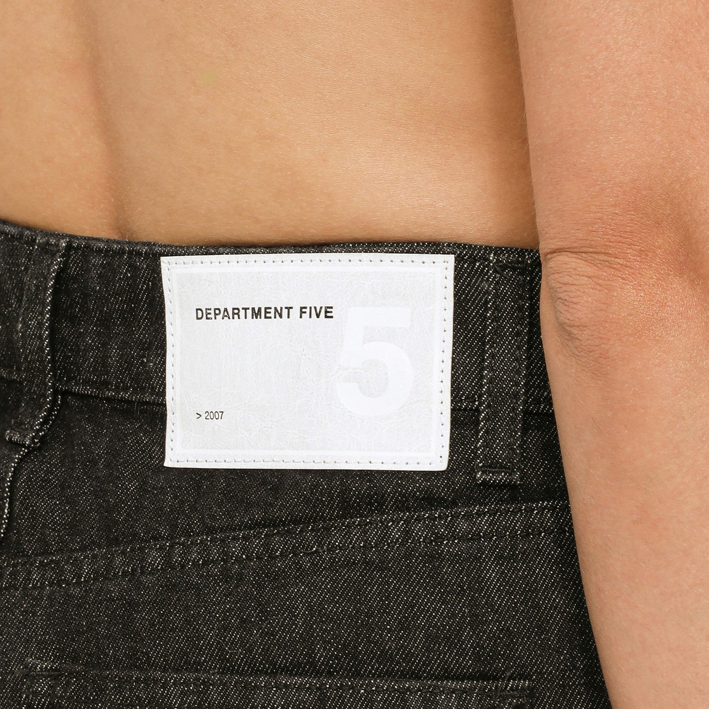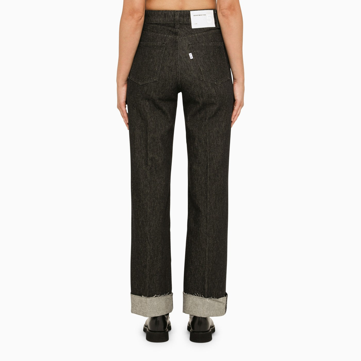 Department 5 jeans in black cotton denim, featuring a high waist, three front pockets, two back pockets and a logo patch on the back.