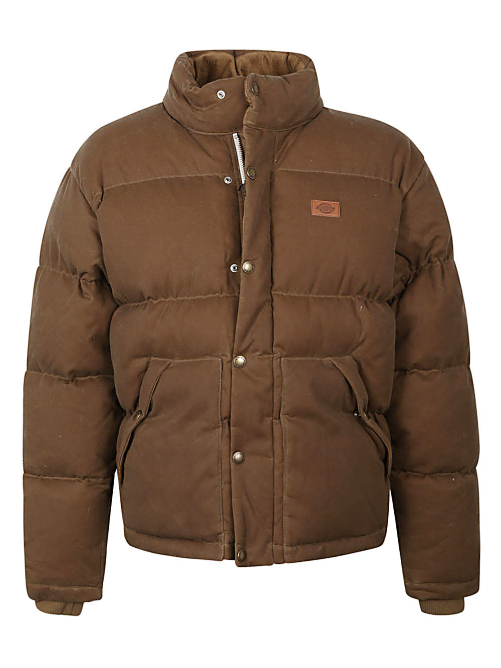 Beige duvet, zip and buttons closure, two oblique pockets with buttons, small logo on the chest, high collar, cuffs and elastic edges, two internal pockets.