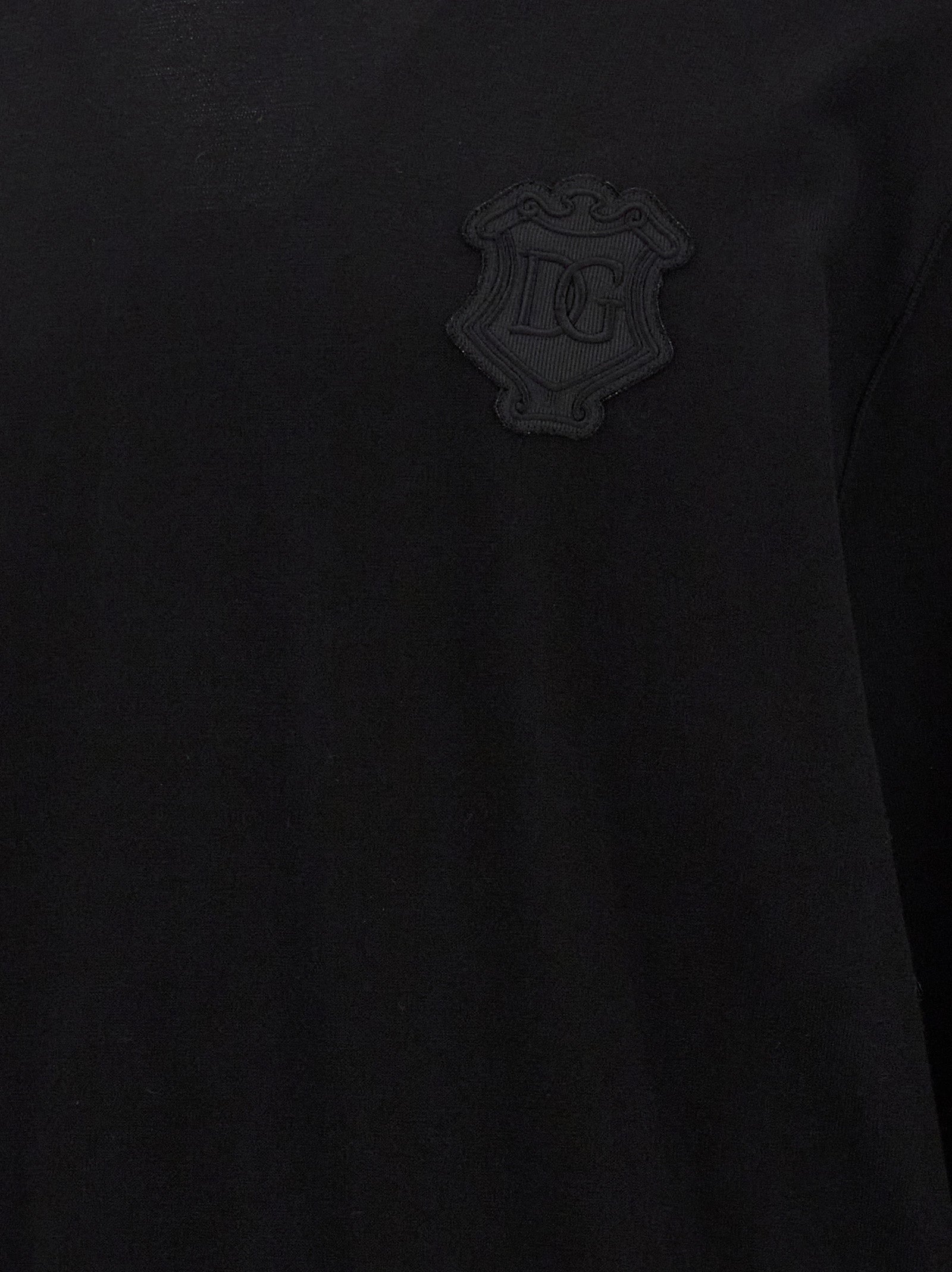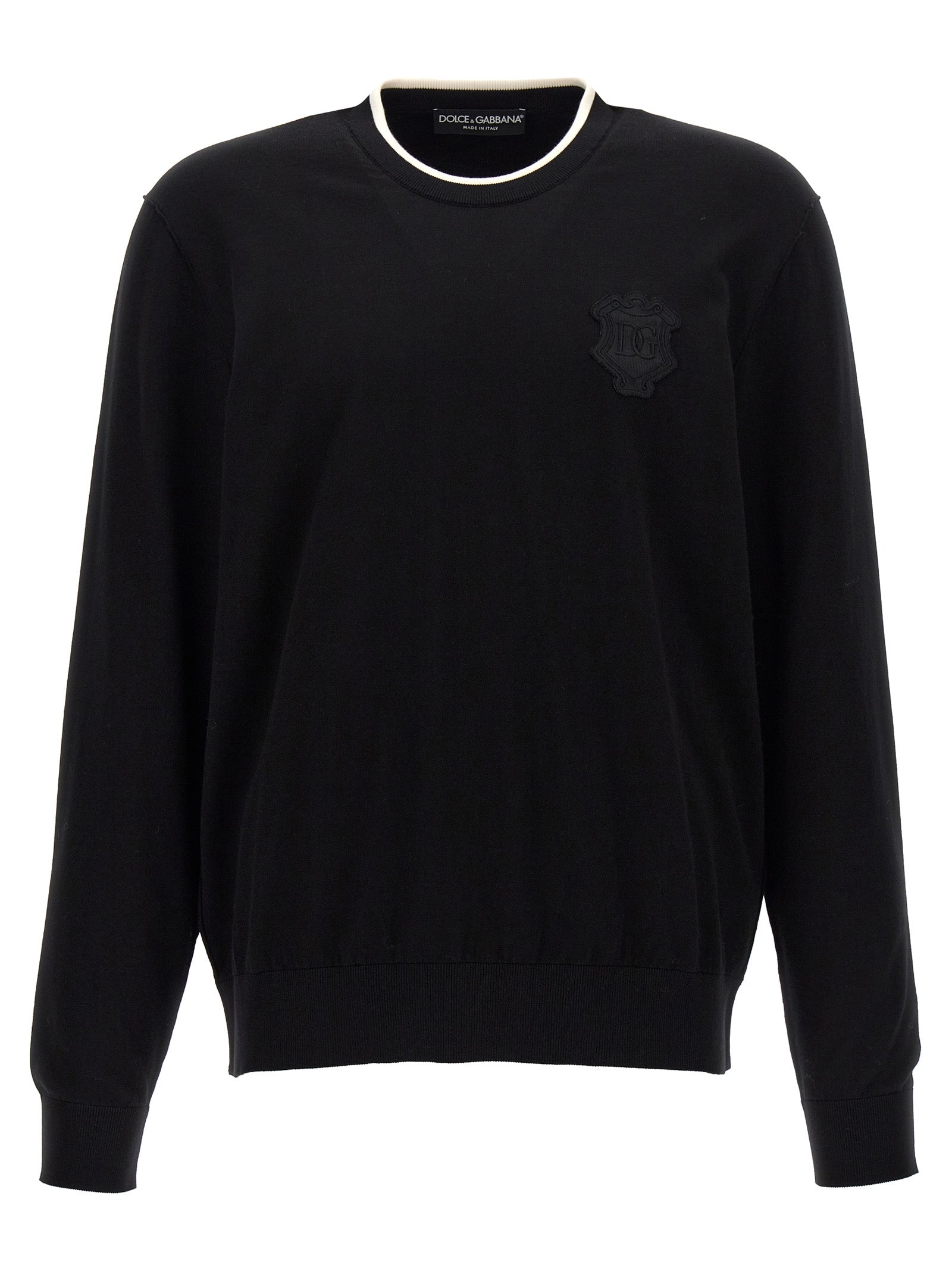 Cotton sweater with 'DG' logo patch, crew neck, contrast trim detail, long cuffed sleeves.