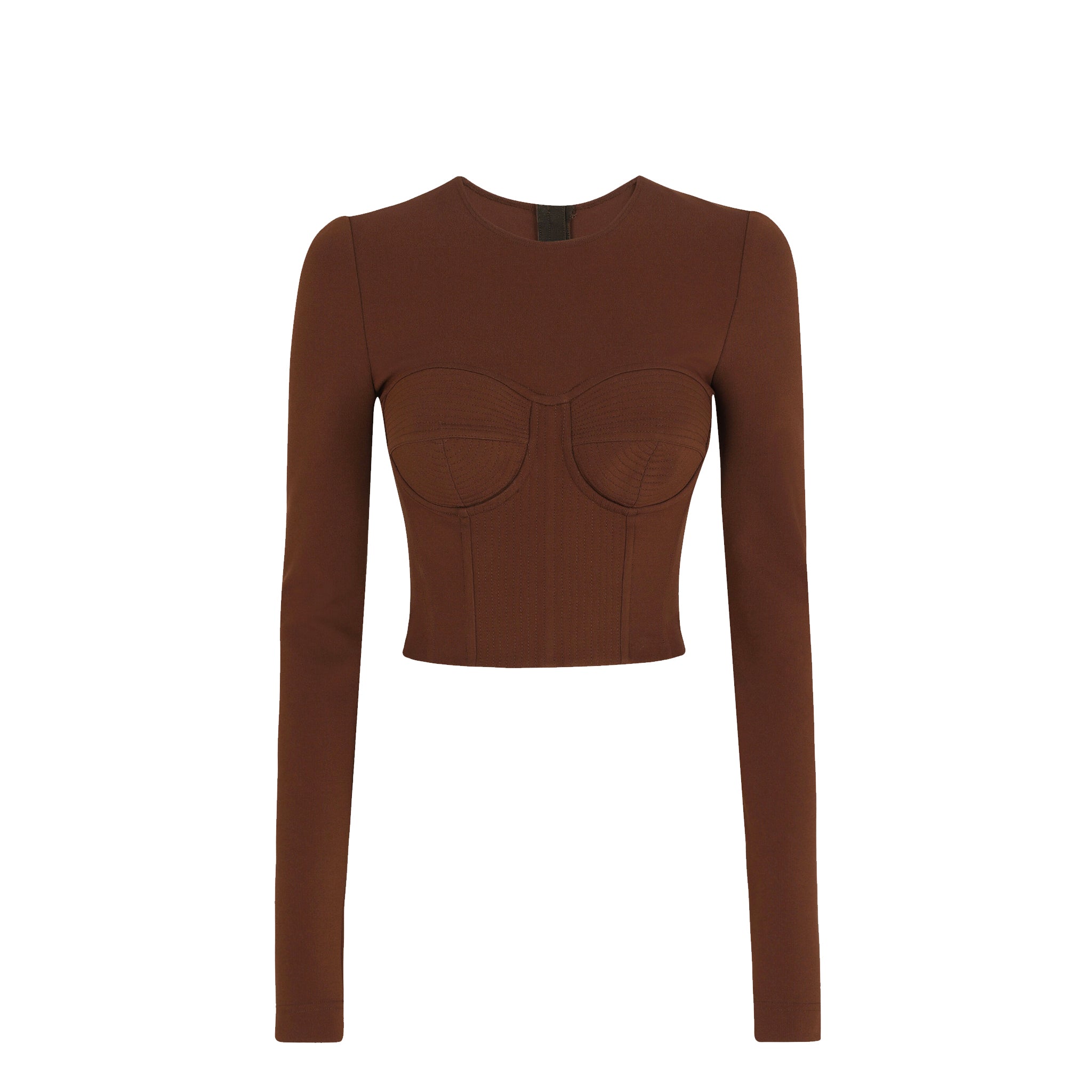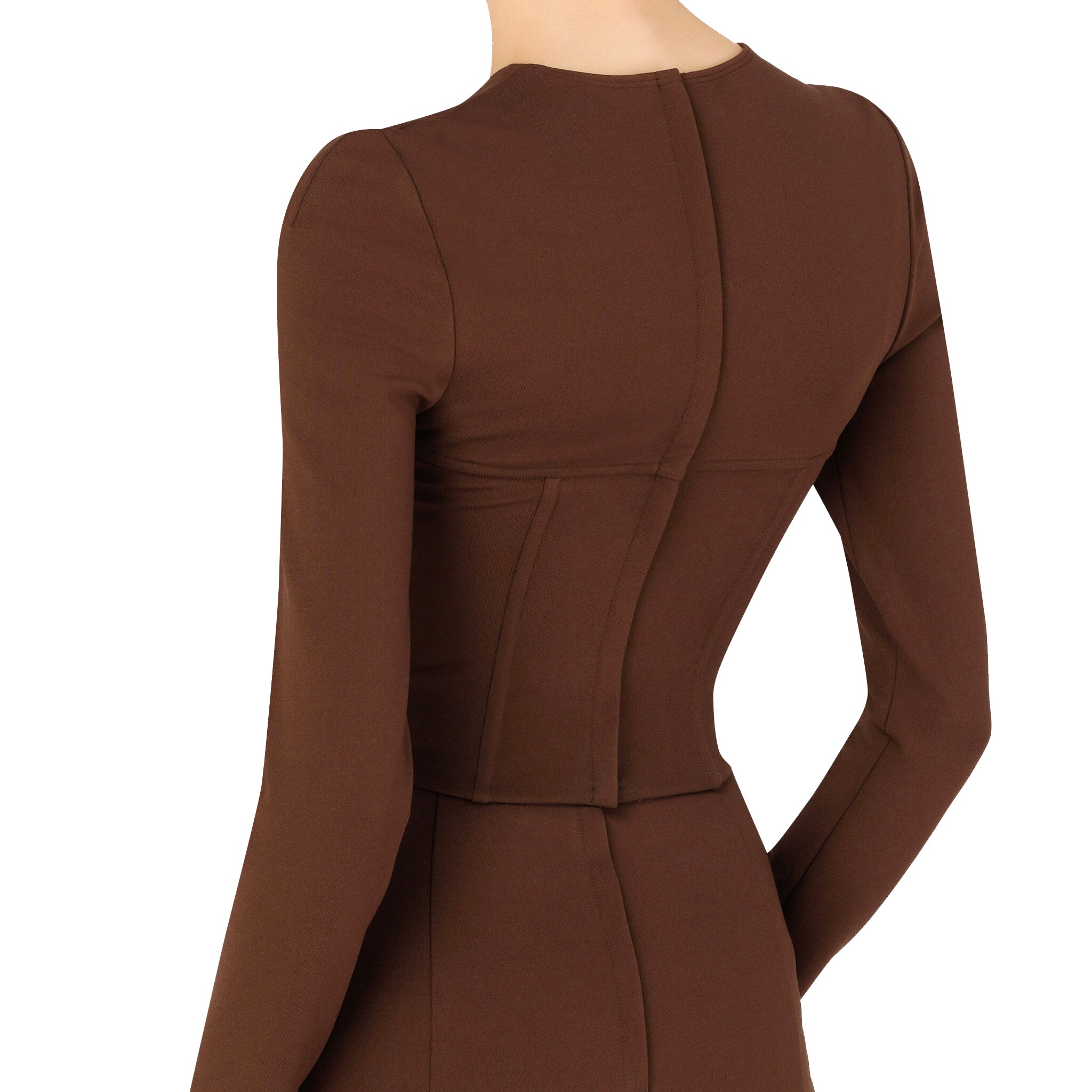 - Composition: 75% Viscose 17% polyamide 8% elastane - Hook and zip fastening - Long sleeves - Round neck - Machine wash (delicate) - Made in Italy -