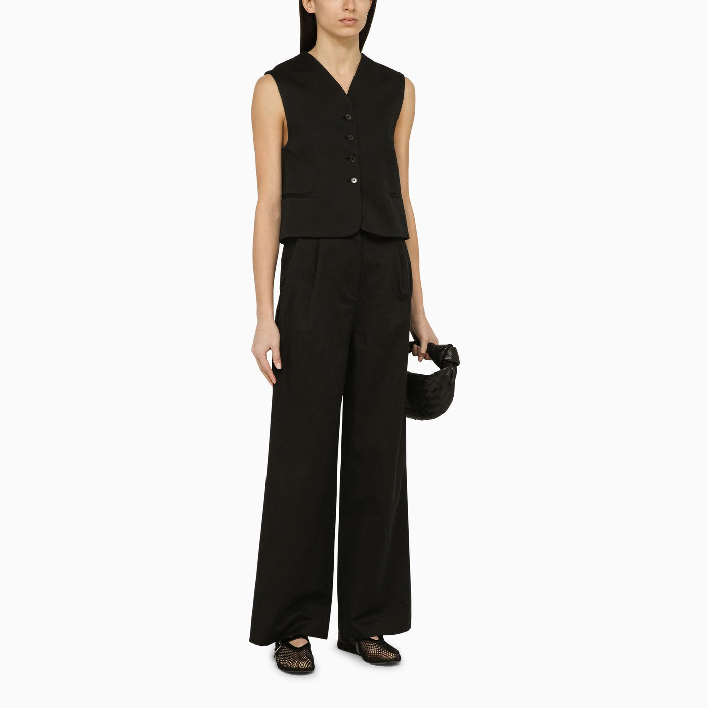 Black cotton and linen palazzo trousers from Loulou Studio featuring front zip and hook fastening, belt loops, two side gusset pockets and two back welt pockets.