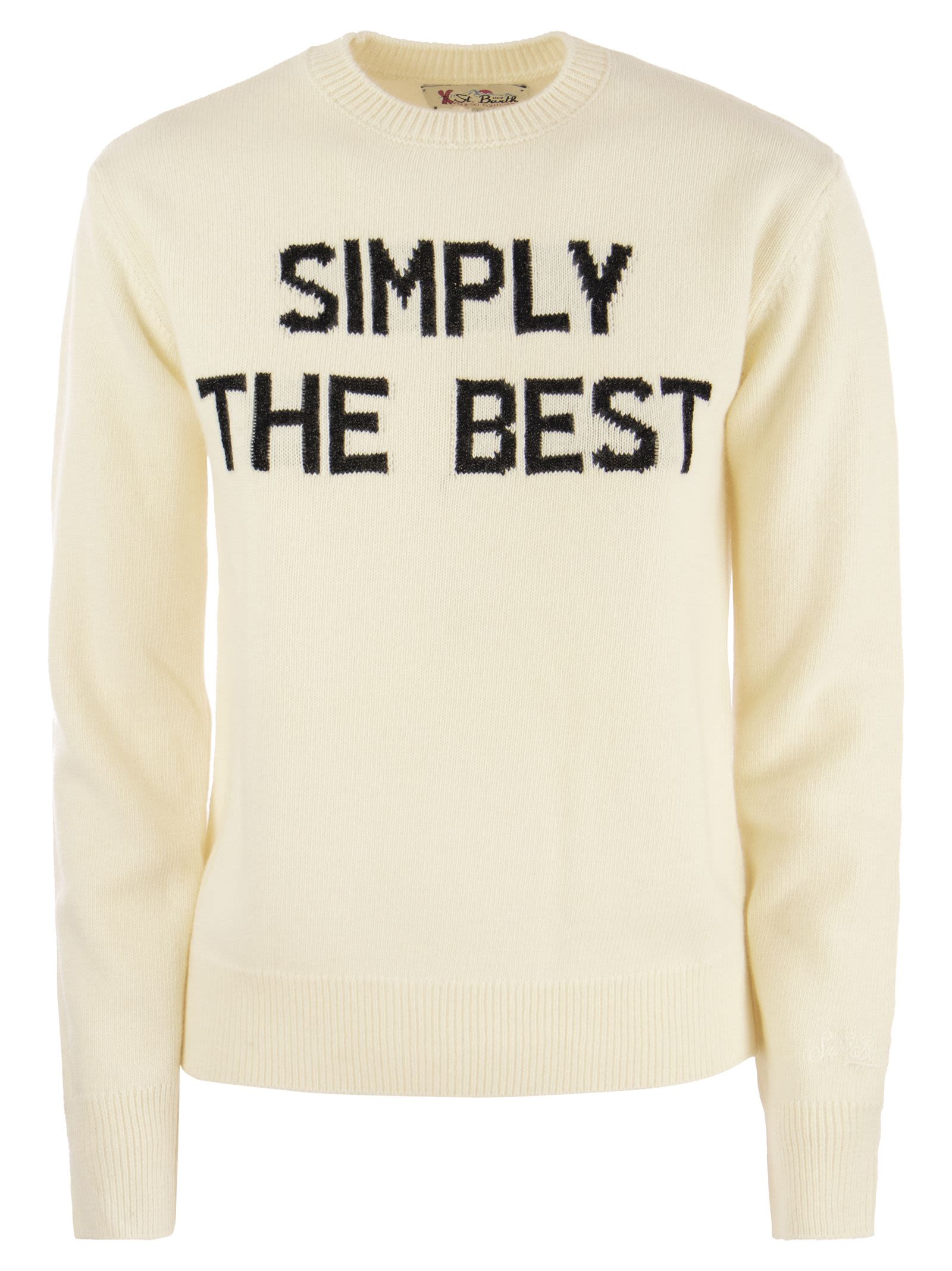 Wool and cashmere blend jumper with front embroidery. Crew neck, long sleeves, ribbed collar bottom and cuffs. - Round neck - Regular fit - "Simply the best" lettering on the front DESIGNER ID: QUE0010 11509E