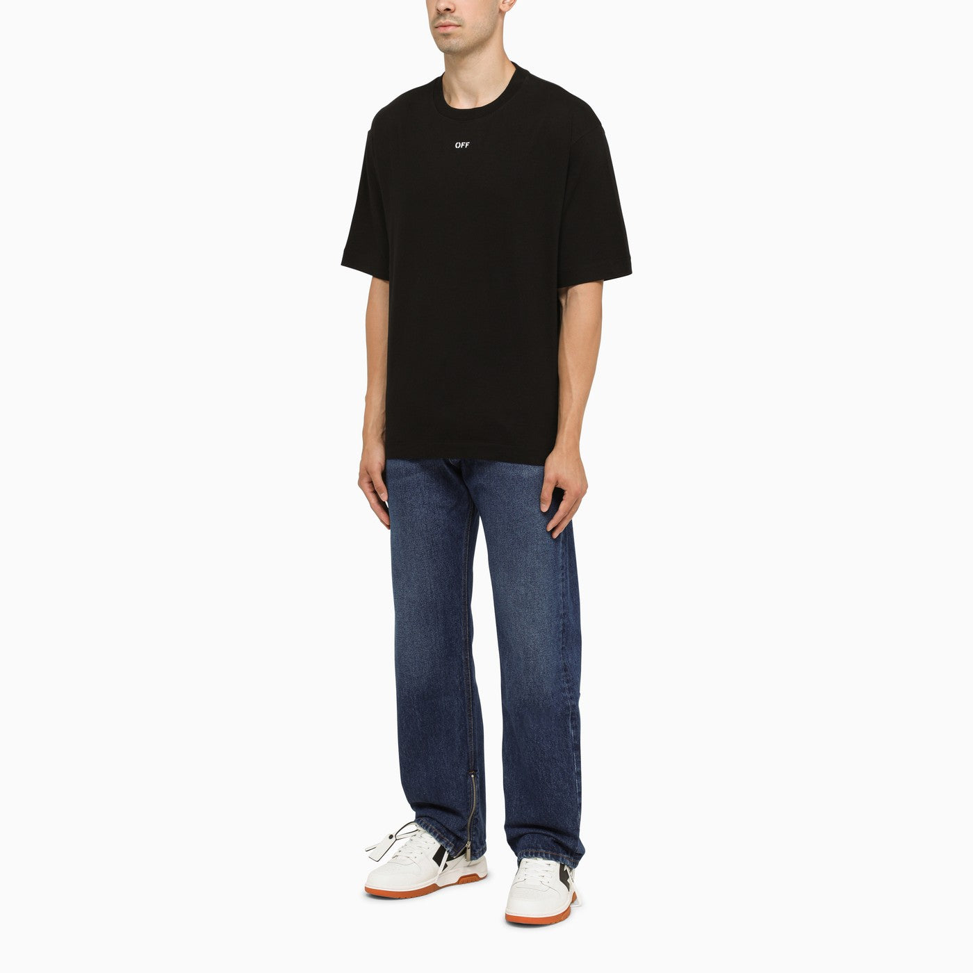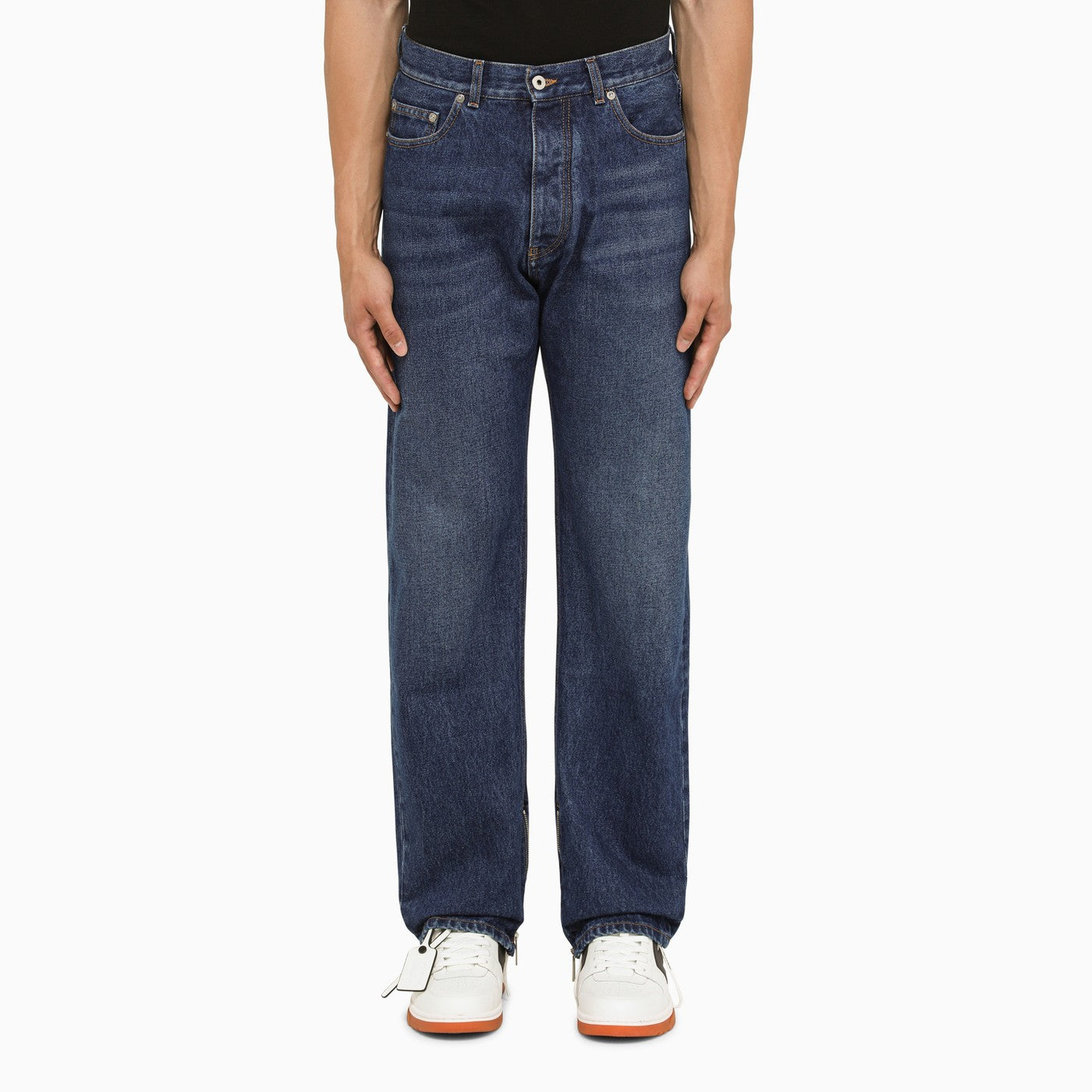 Blue cotton denim jeans from Off-White featuring five pockets, an Arrows patch on the back and a regular fit.