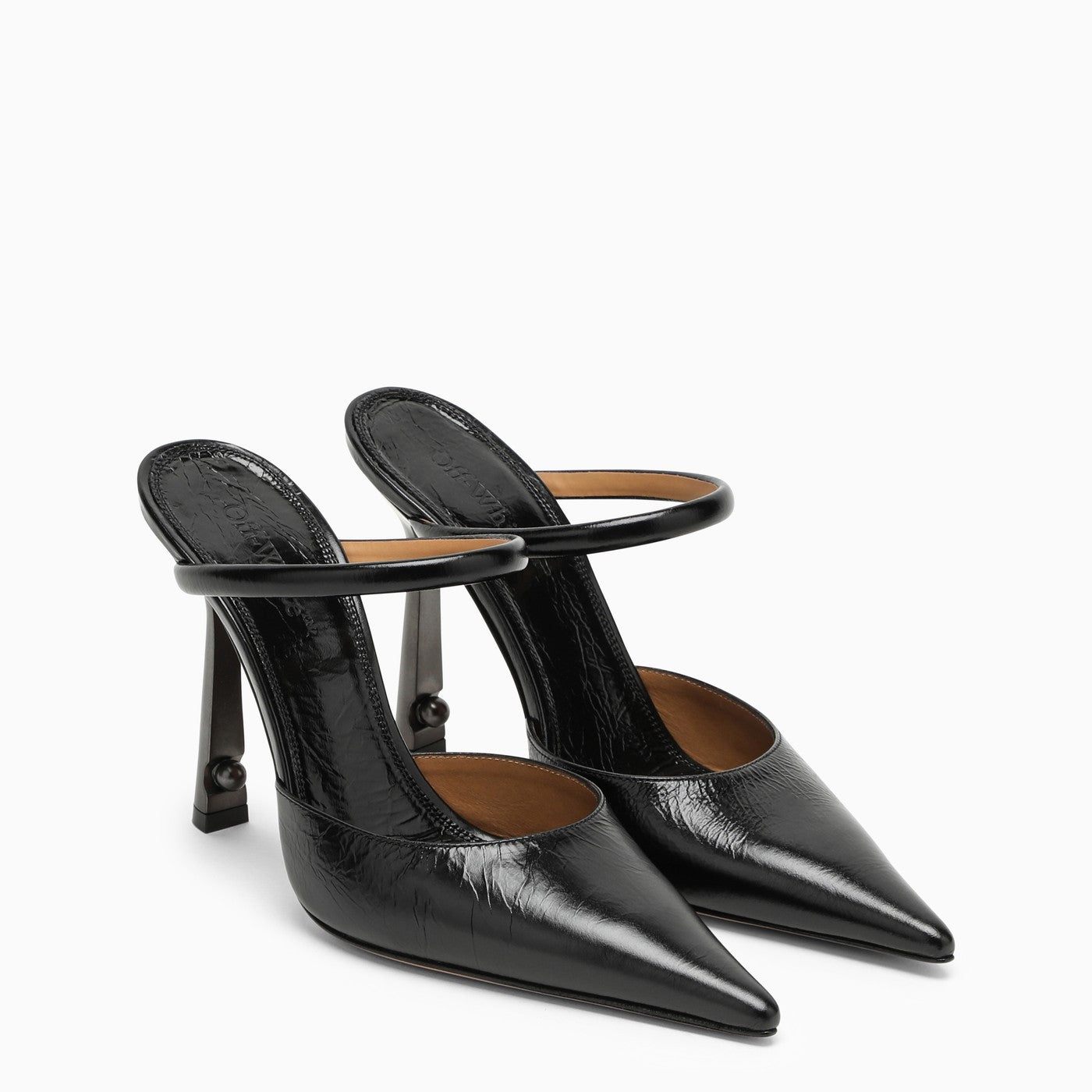 Black leather slingback by Off-White, featuring a pointed design, slim heel and leather sole.