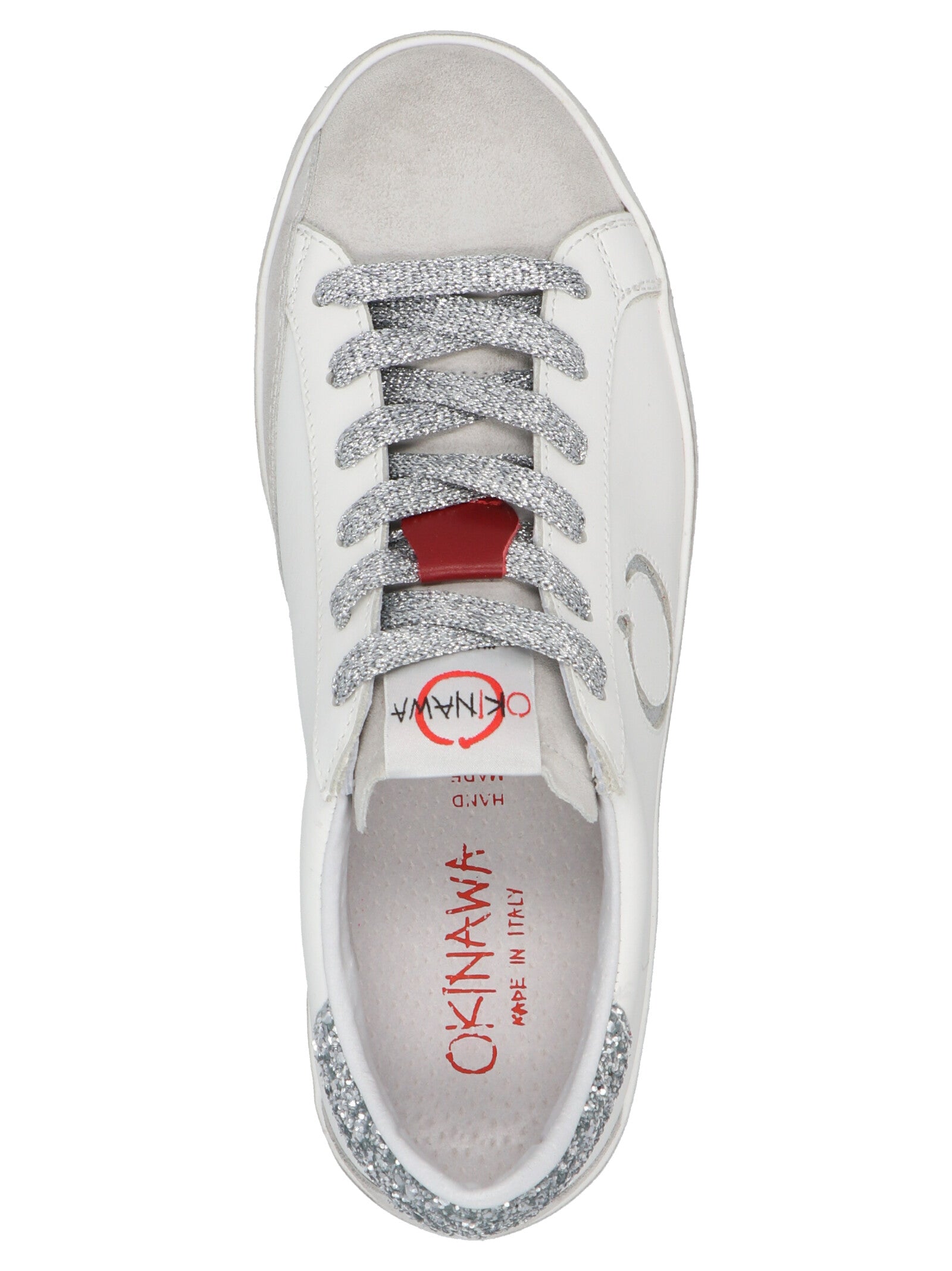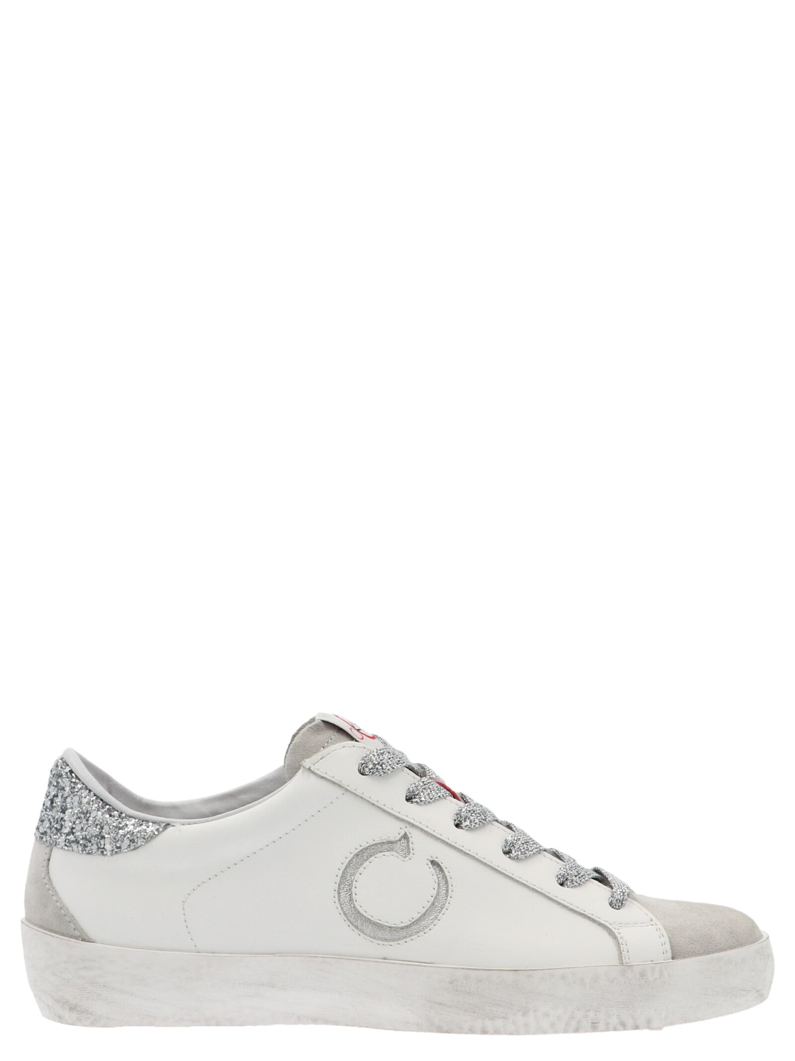 'Low Oki Limited' leather lace-up sneakers with suede and glitter inserts, and distressed effect.