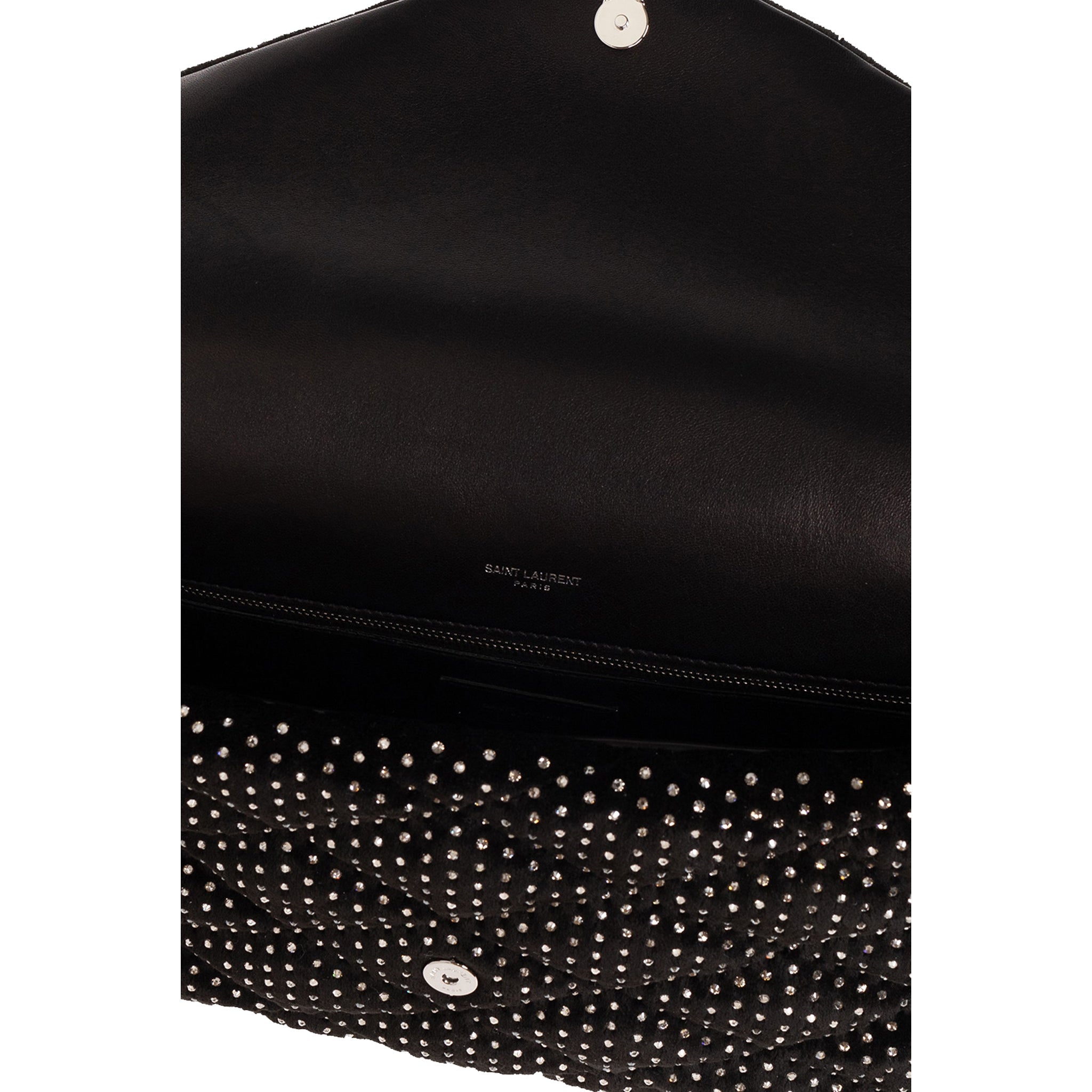 - Composition: 100% polyester - Leather lining - Crystal-Embellished - Magnetic button closure - Back logo detail - Length 38 cm / 14,9 in - Height 19 cm / 7,4 in - Width 6 cm / 2,3 in - Made in Italy -
