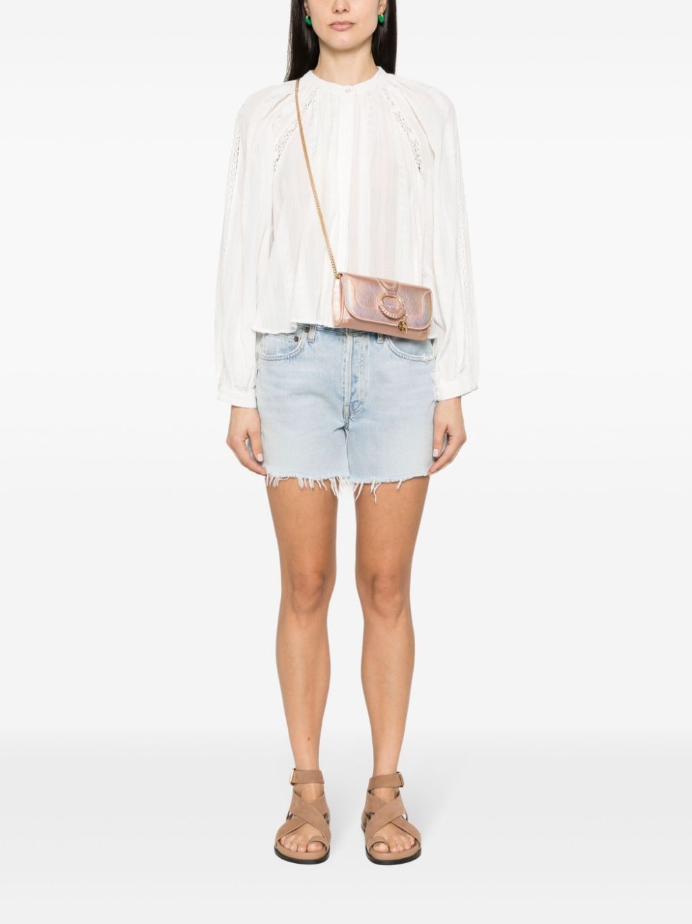 peach pink calf leather pebbled texture holographic finish panelled design braided ring embellishment key and logo charm foldover top chain-link shoulder strap main compartment internal zip-fastening pocket internal card slot internal logo tag cotton lining gold-tone hardware concealed magnetic fastening This piece comes complete with a protective dust bag.
