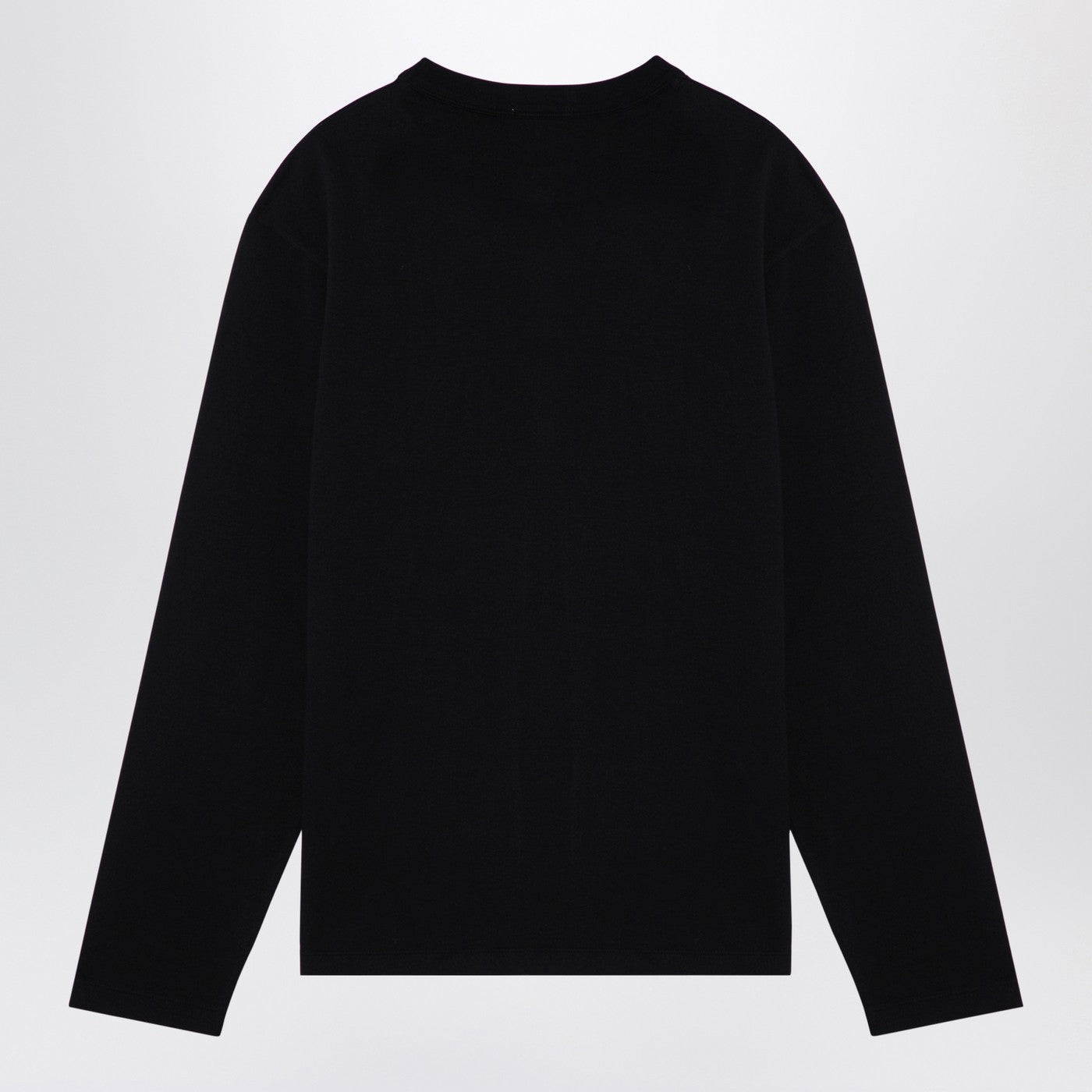 Black organic cotton crew-neck pyjama jersey from Tekla featuring long sleeves, side logo plaque and straight hem.