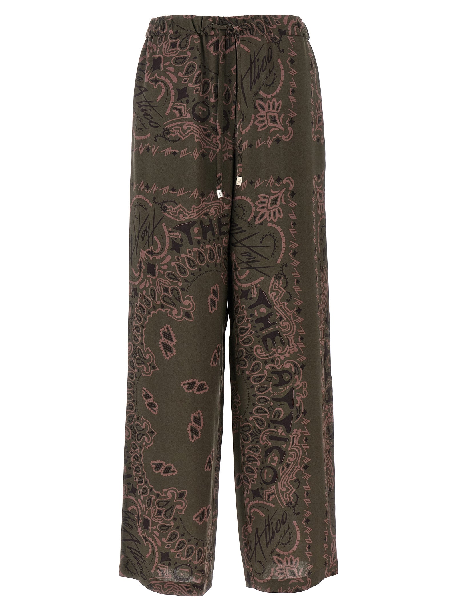 Lightweight pants in 'Bandana' print fabric with wide leg, elastic waistband with adjustable drawstring, pockets.