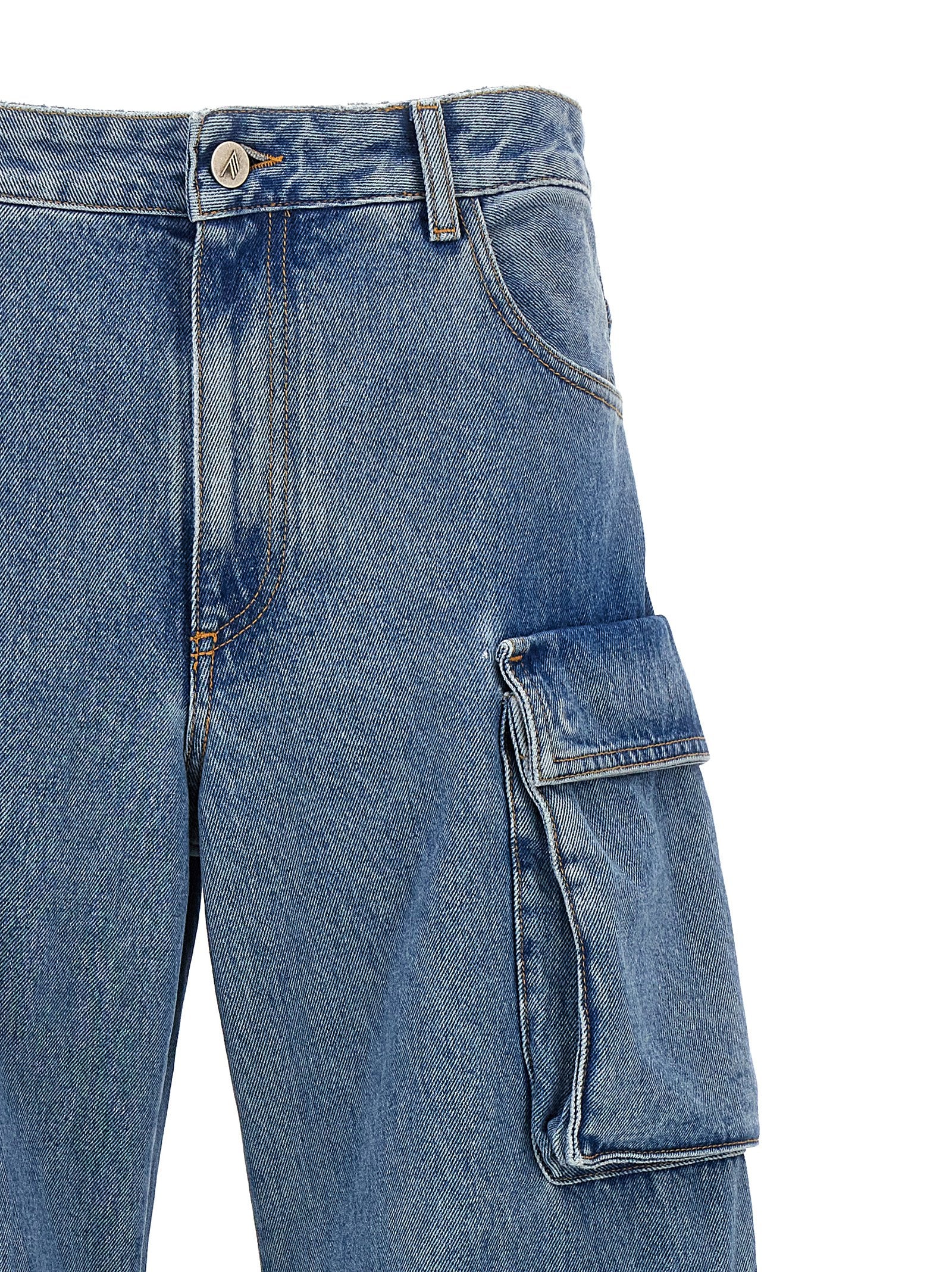 'Fern' cargo jeans in cotton denim with pockets, zip and button closure, leather logo tag, adjustable ankle strap detail.