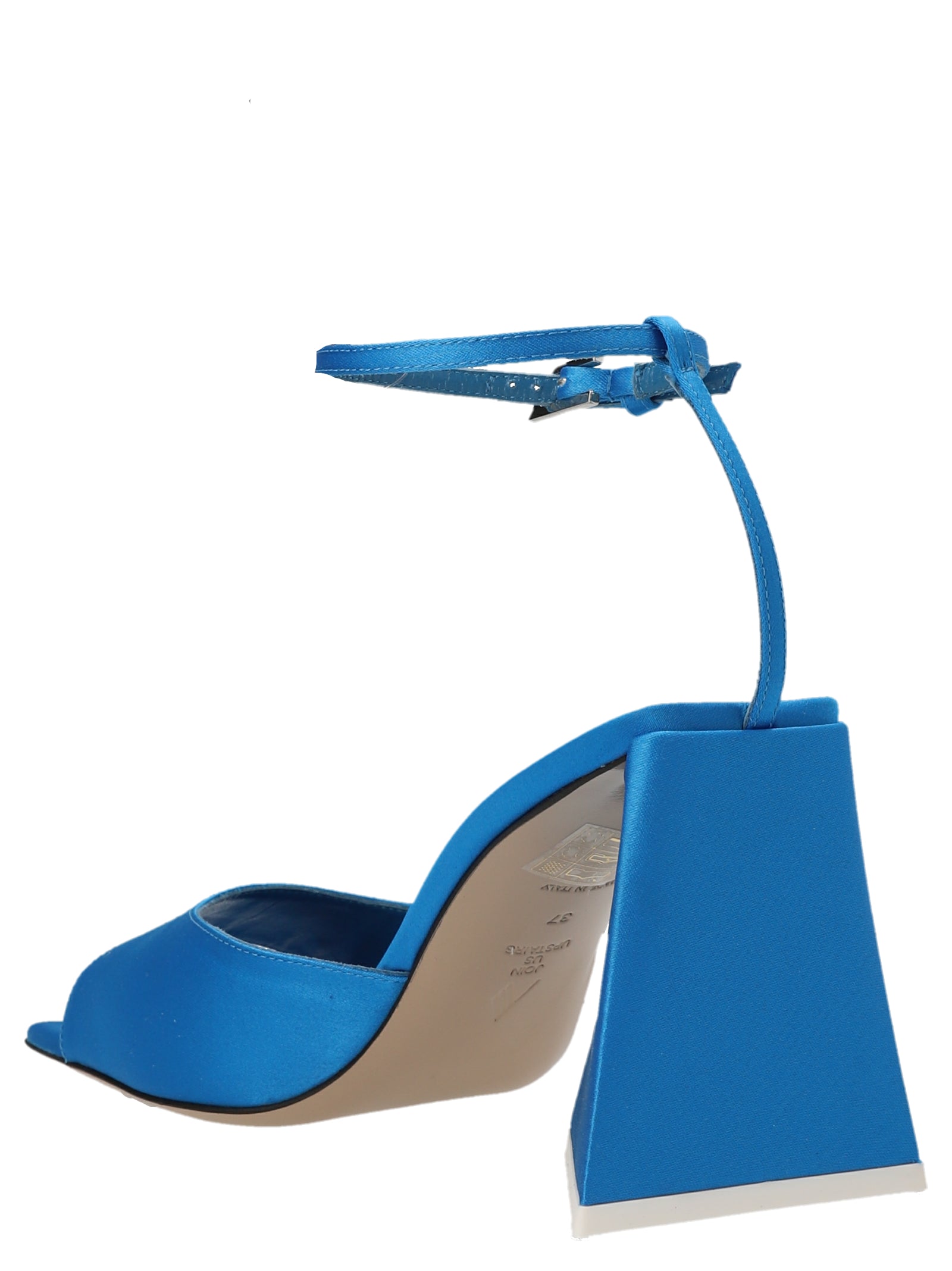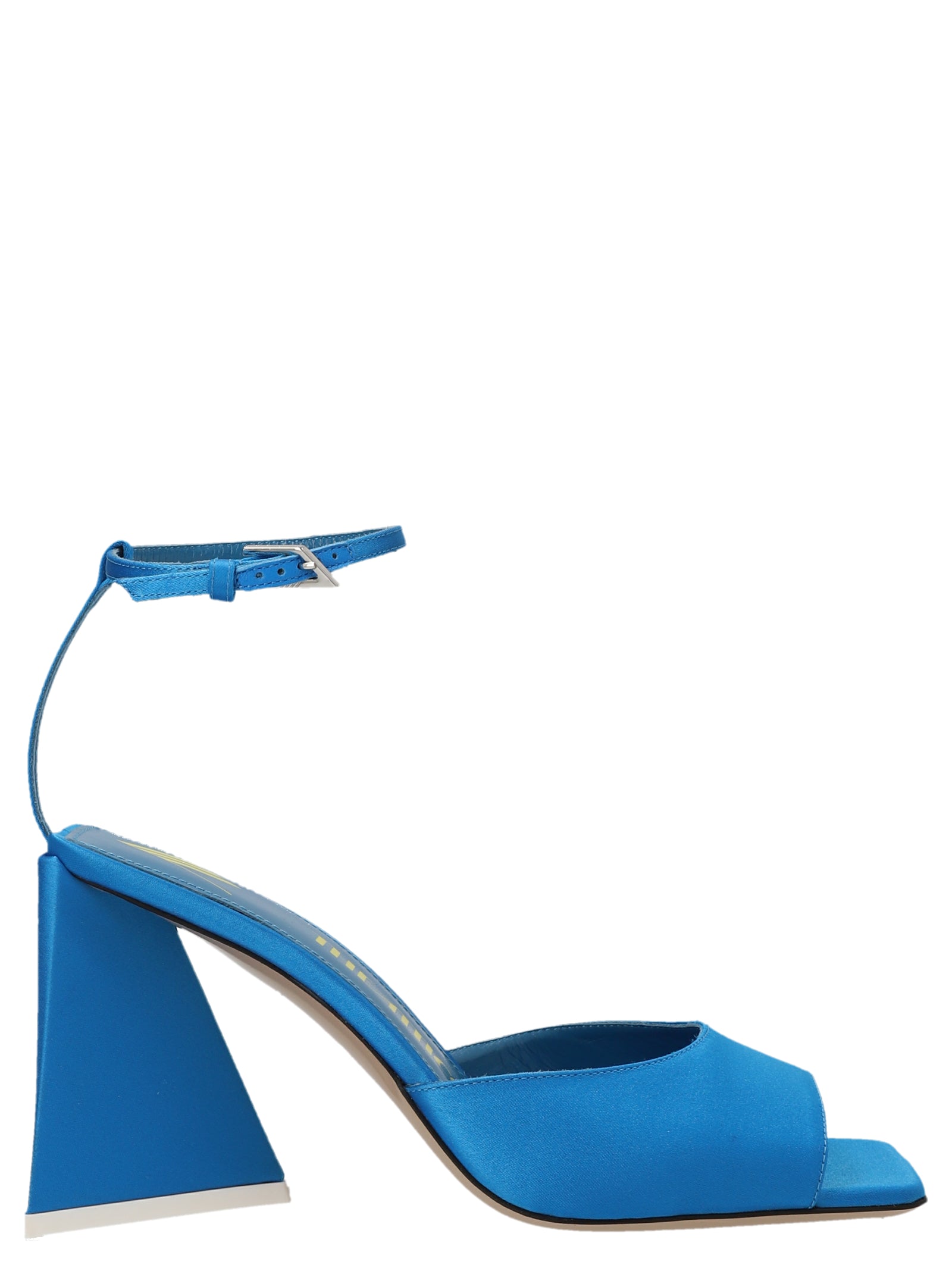 ‘Piper’ satin sandals featuring ankle straps and pyramidal heels.