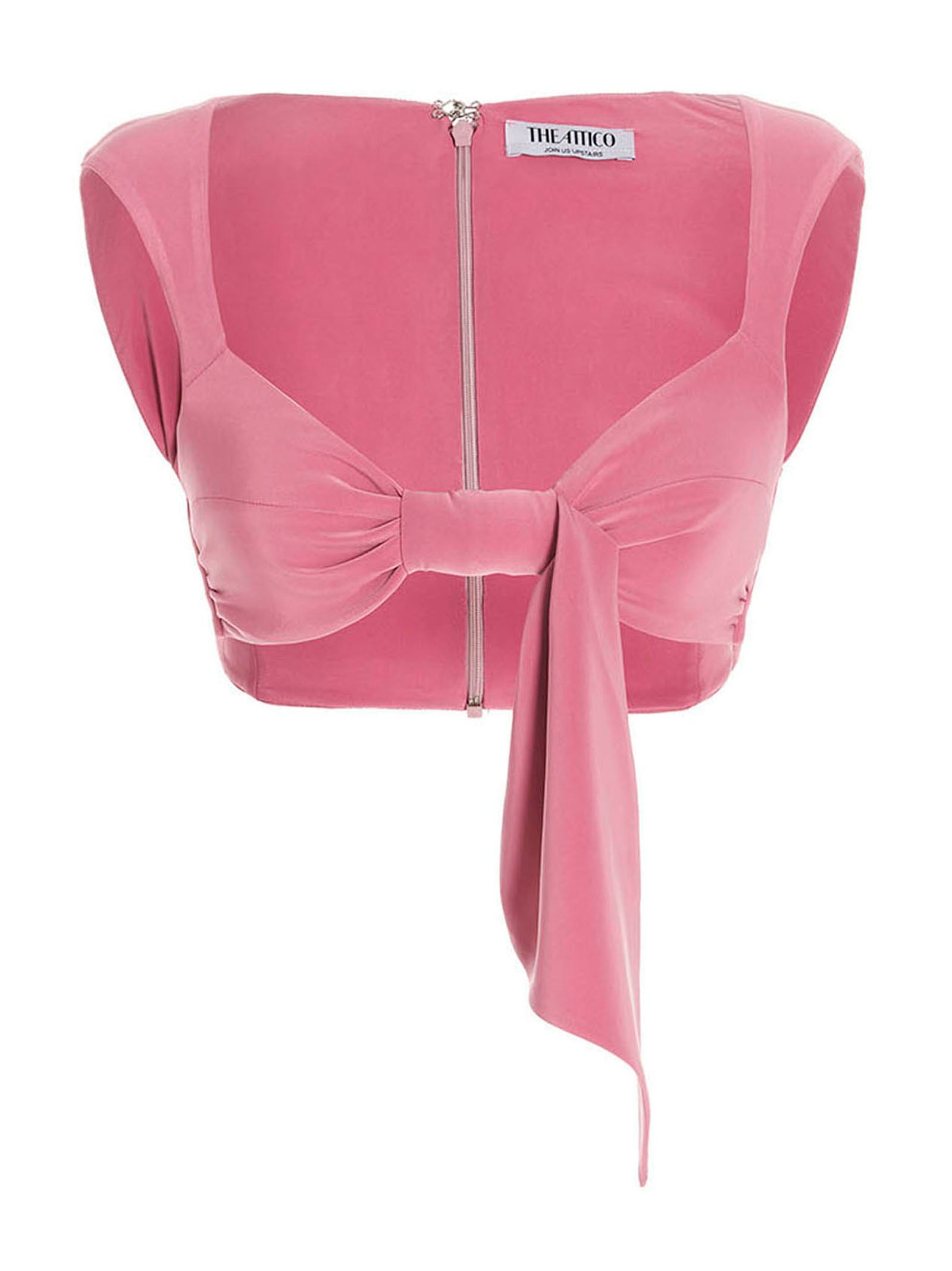 'Stacy' cropped sleeveless top with front knot and a zip closure at the back.