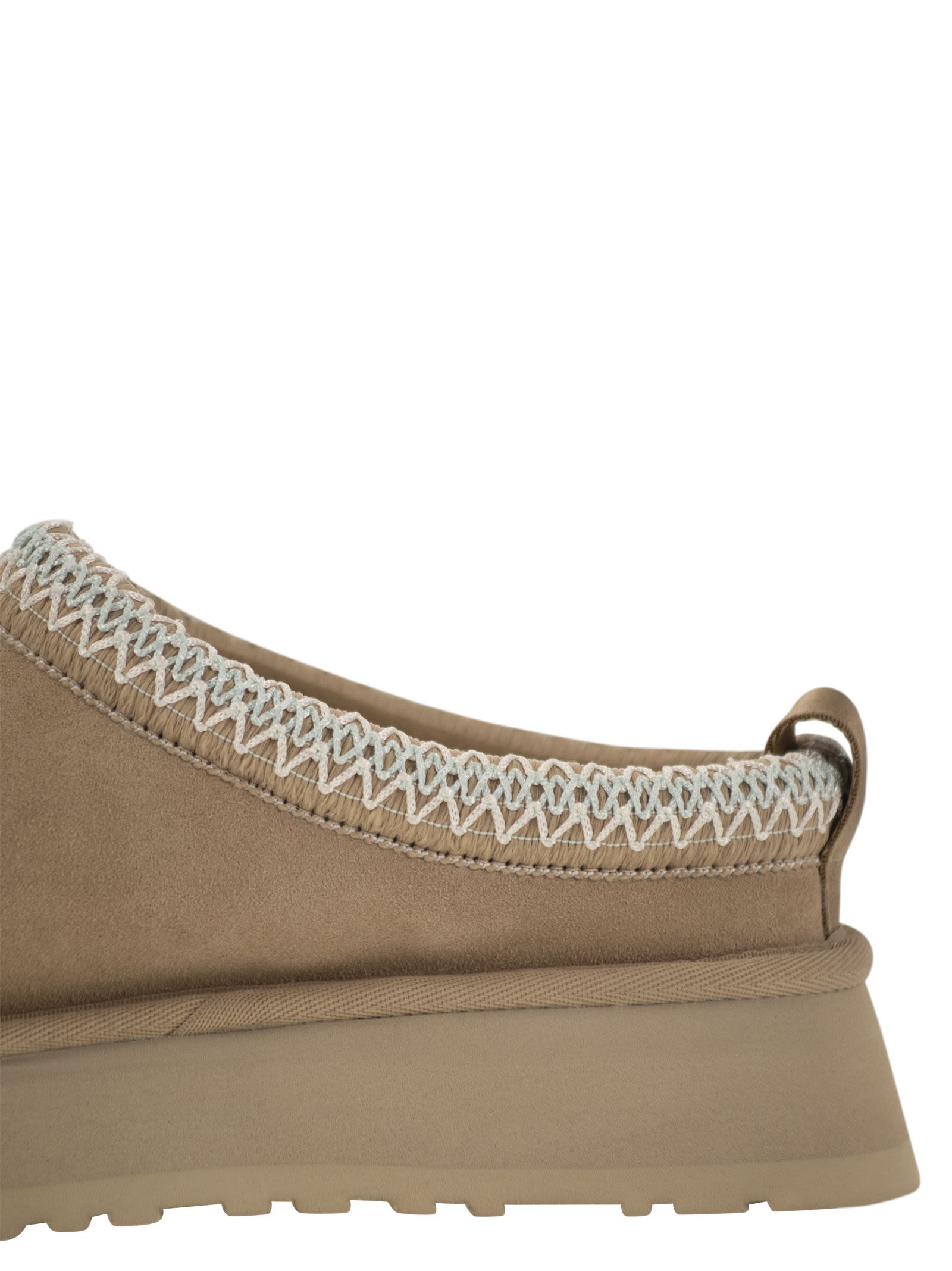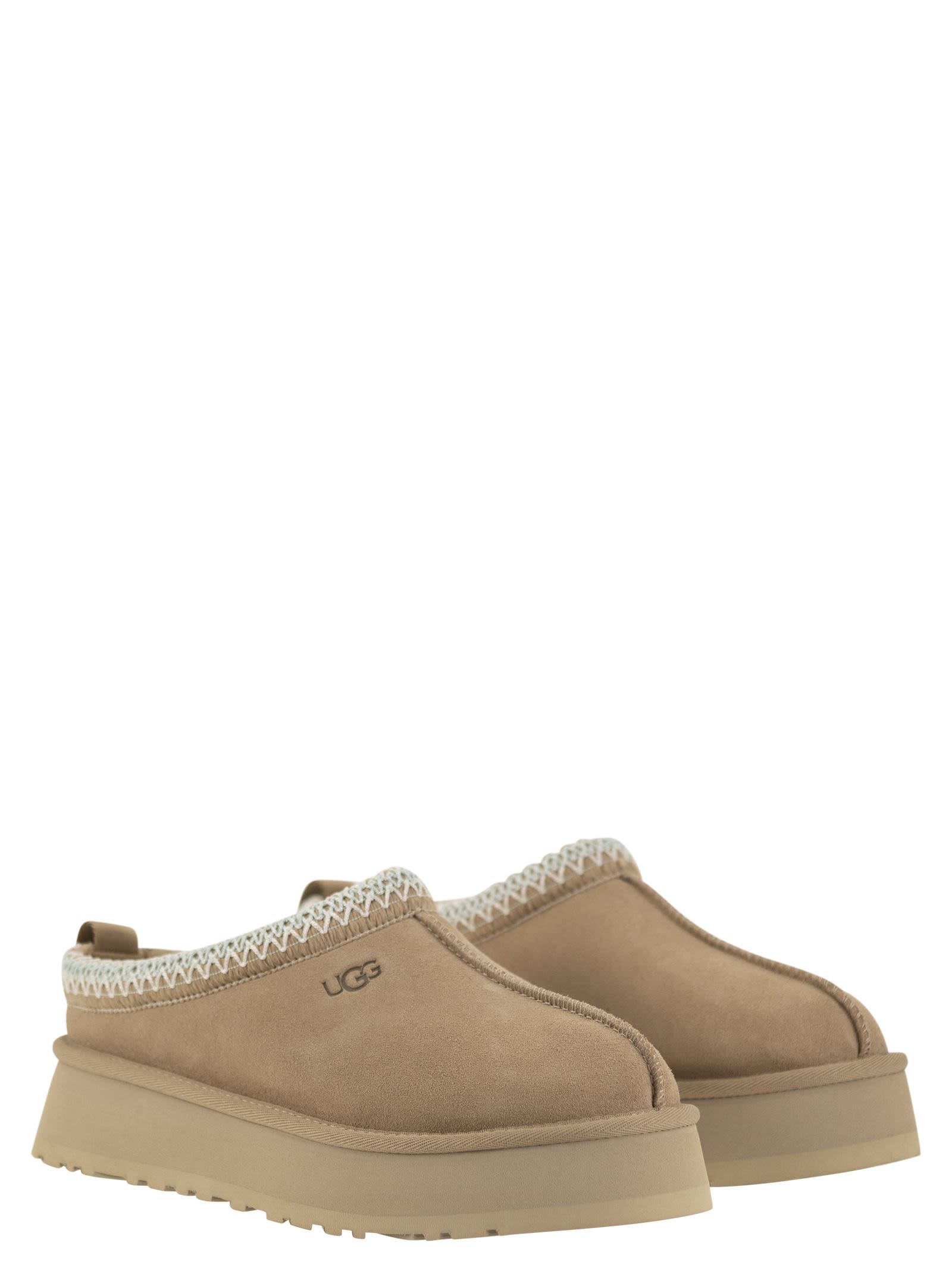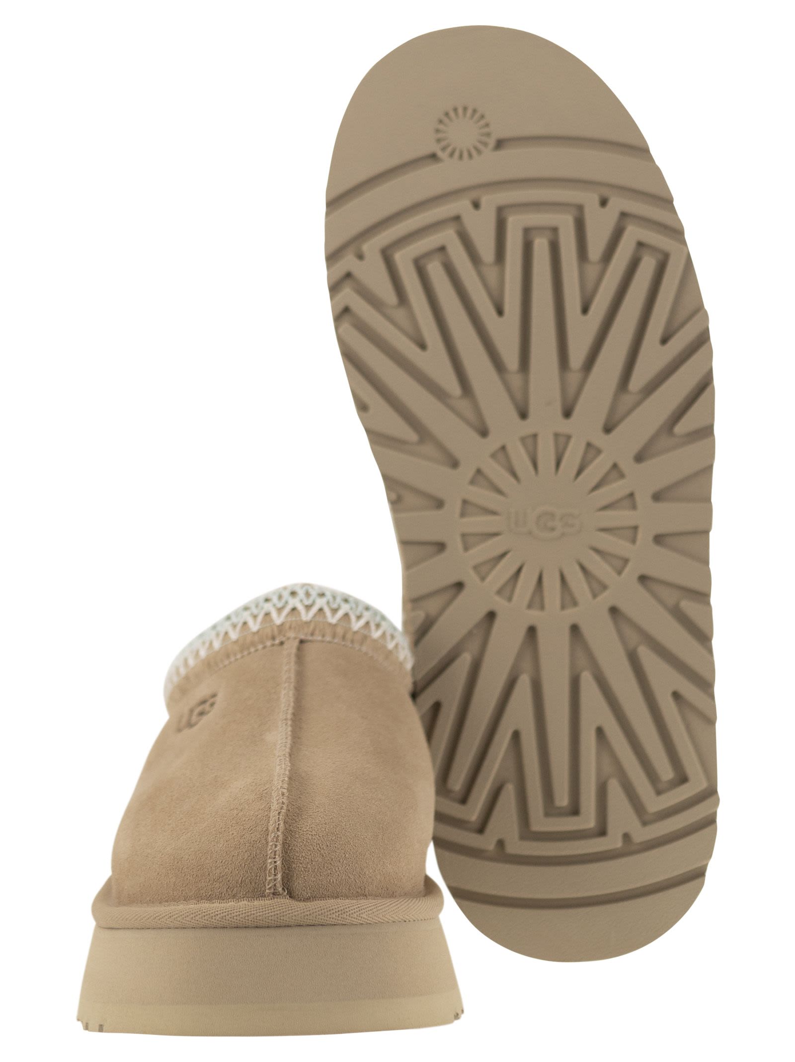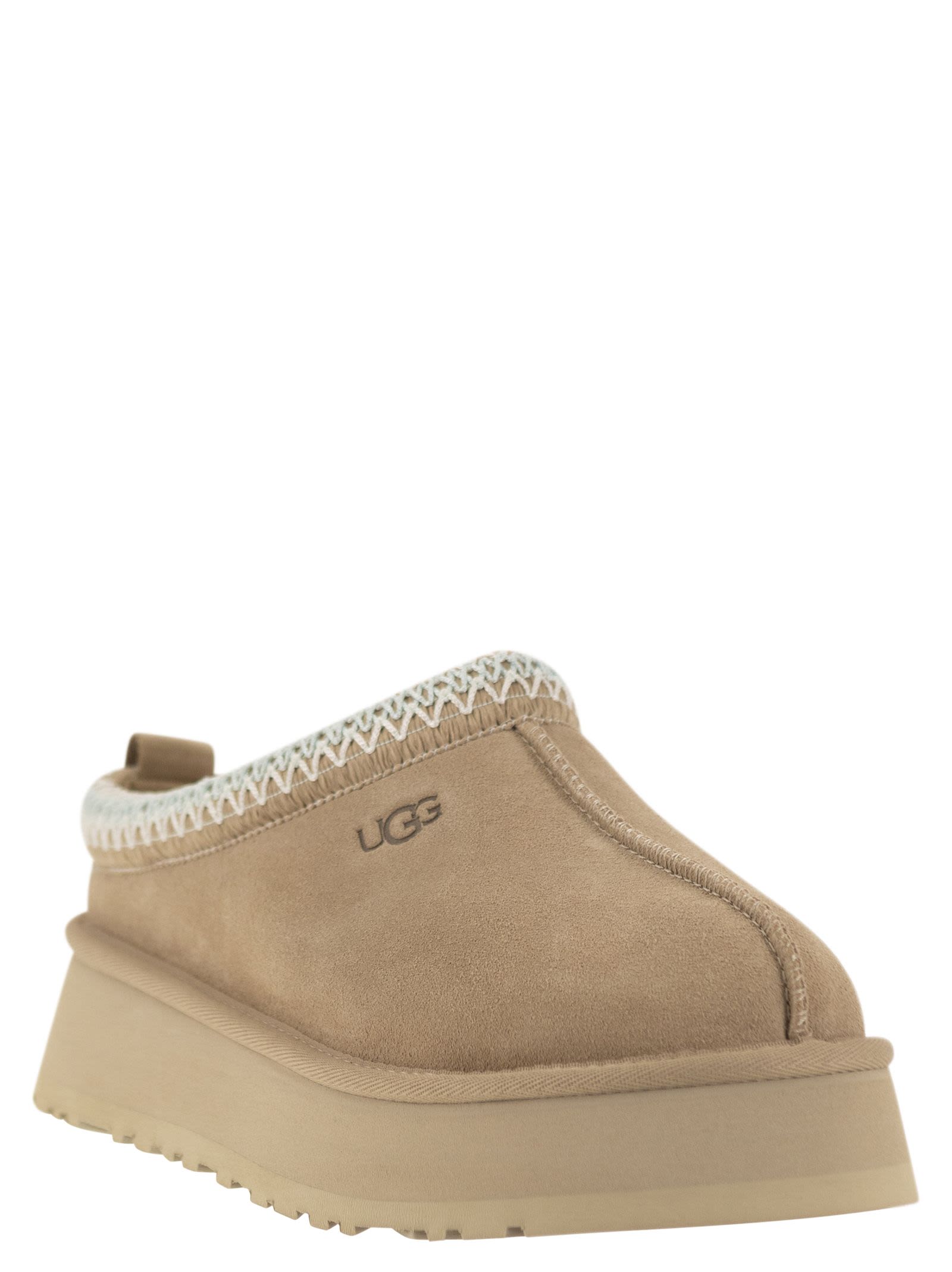A maximalist interpretation of the timeless Tazz model, it revisits its familiar silhouette with a 3.8 cm platform sole for superior cushioning and style. Crafted from the same premium suede as the original, it is lined with the classic UGGplush™ wool blend for a slipper-like comfort feeling in and out of the house. - Suede upper - EVA sole - Fabric edging, made from recycled polyester fibres - Hot-embossed UGG® logo DESIGNER ID: 1122553 SAN