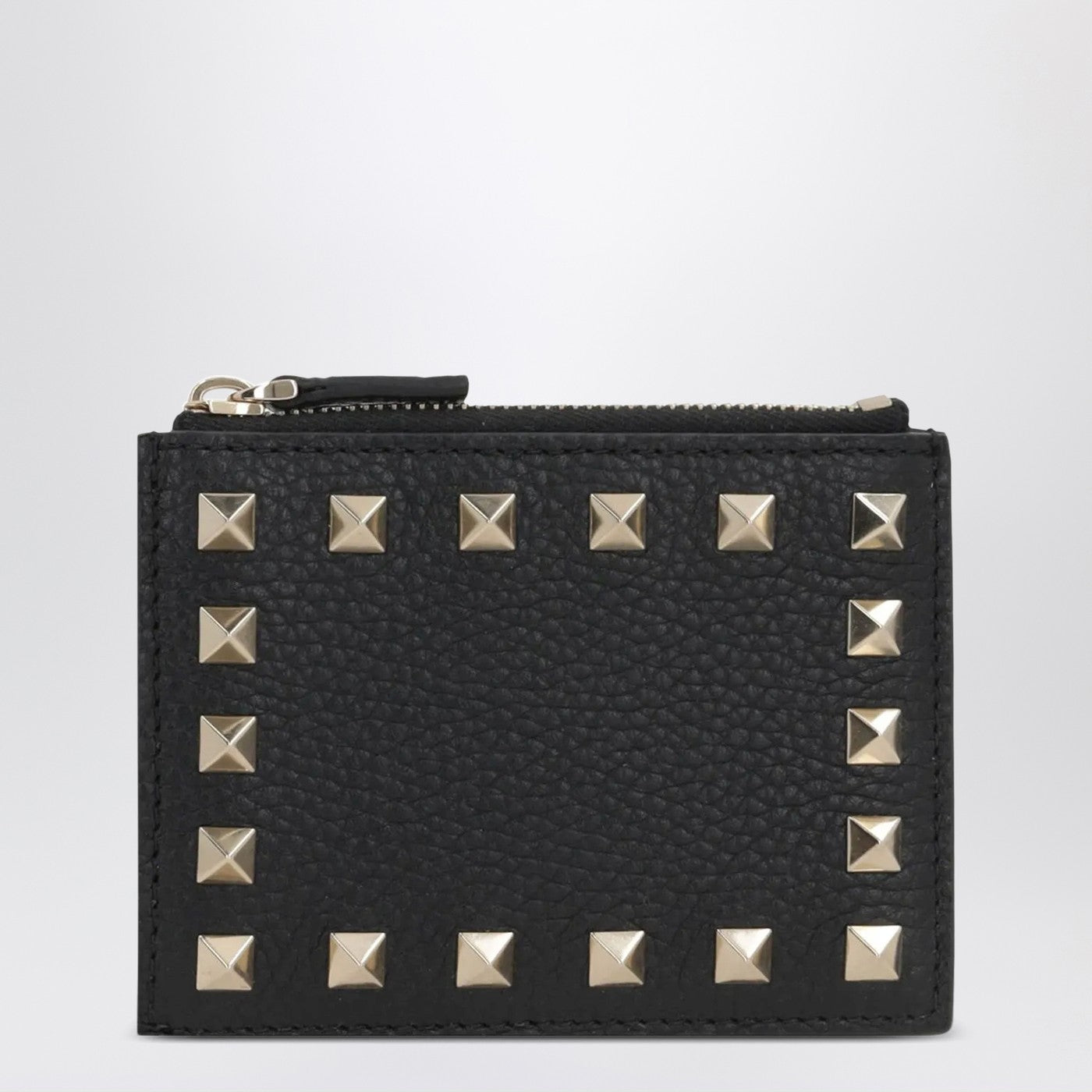 Valentino Garavani Rockstud Zipped Card Holder In Black Leather
