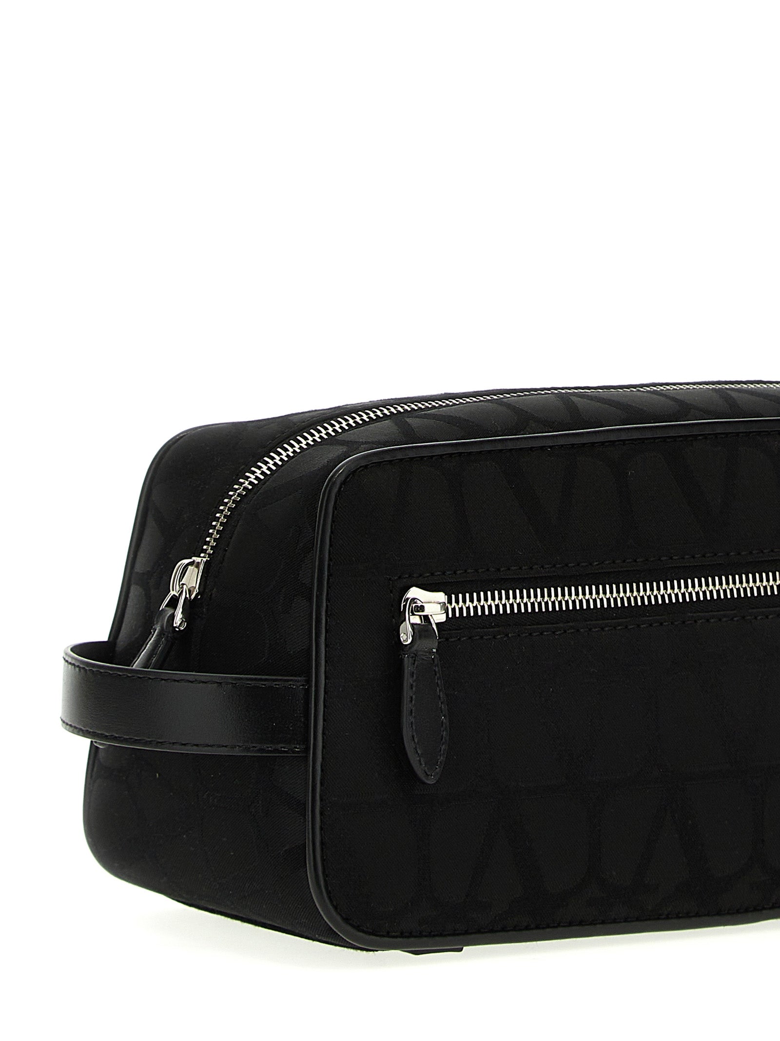 'Black Iconographe' print nylon make-up, zip closure, side handle.