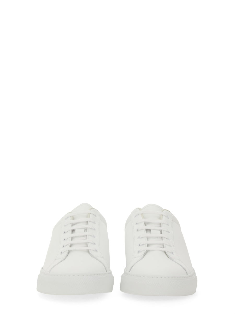 Minimalist sneakers with gold-foil codes—quiet luxury crafted in Italy since 2004.