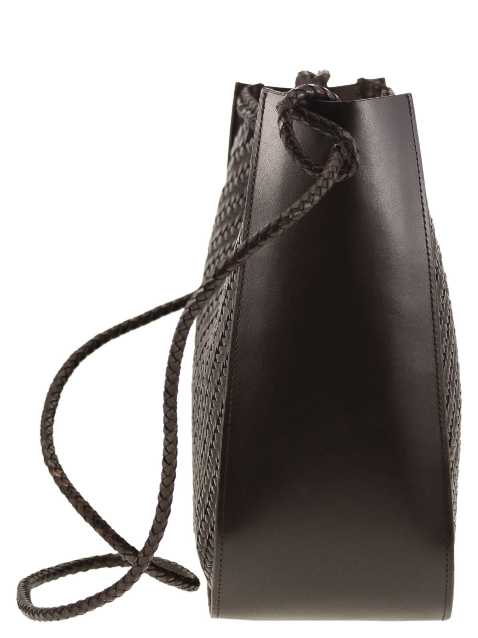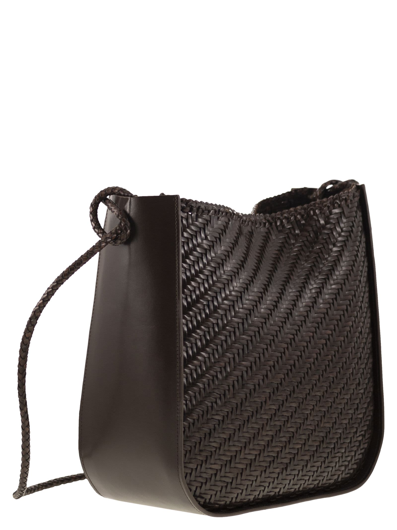 The Wanaka Formed is a miniature version of a traditional basket, offering the same convenience and comfort. Its shoulder strap allows you to carry it with ease wherever you go. Finished on the inside by an open pocket for added convenience. An antiqued St. Christopher medal charm, in homage to the patron saint of travelers, is hand-stitched inside each Dragon Diffusion bag, the brand's seal of authenticity. - Hand-woven bag - Leather - Unlined DESIGNER ID: DGS48759 DARK BROWN