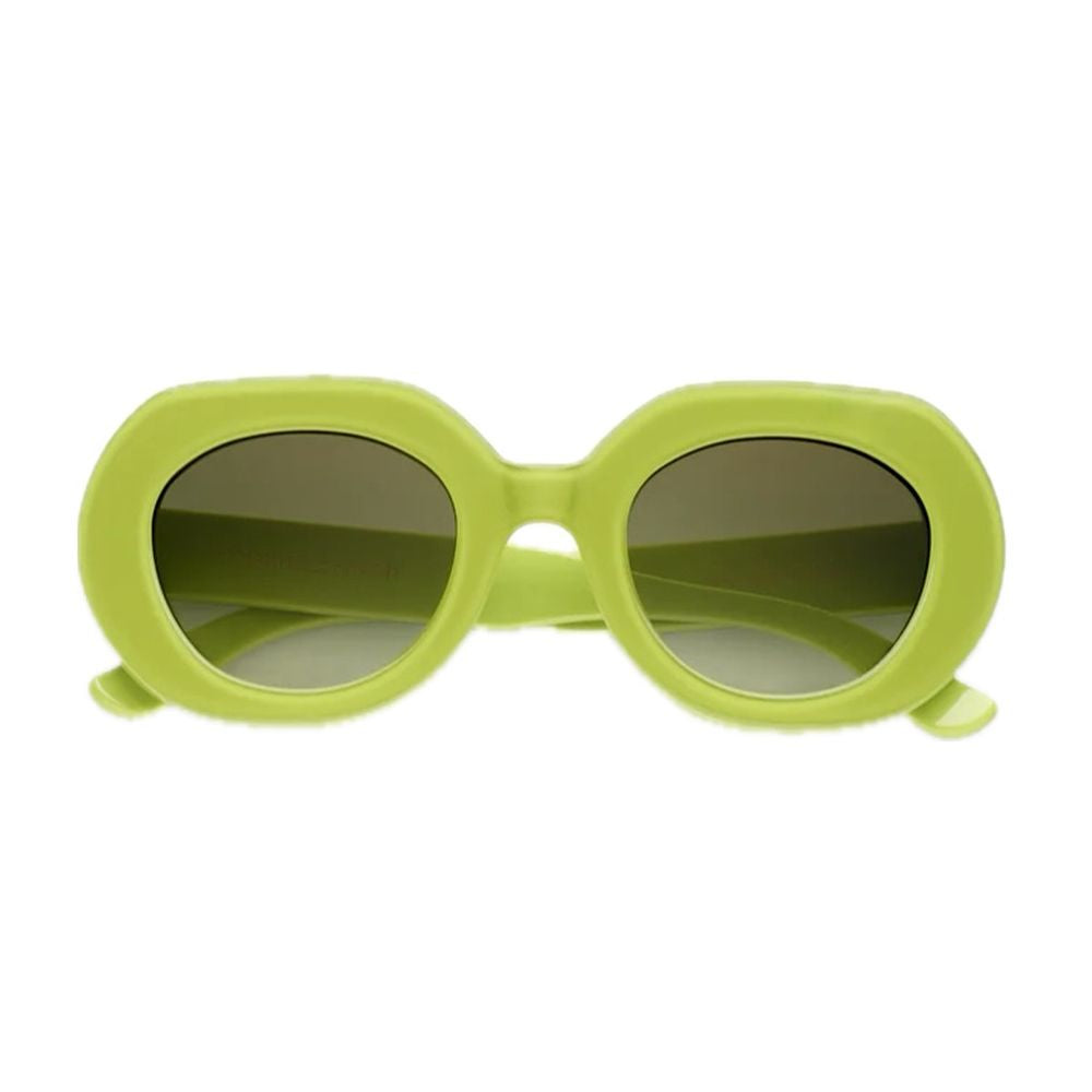 The Emmanuelle Khanh frames celebrate the Maison’s bold and sophisticated style with a round design of decisive proportions, capable of transforming any look into an icon of personality and elegance. The Love sunglasses embody the Maison’s audacious yet refined spirit with a round shape defined by sharp, geometric lines. Crafted from fine bright green acetate and meticulously handmade in France, this model stands out for its distinctive and sophisticated character.The design is completed by gradient green lenses, perfectly harmonized with the frame, and temples embellished with the EK monogram in gold-toned metal set under resin—a signature detail that elegantly seals this iconic model.