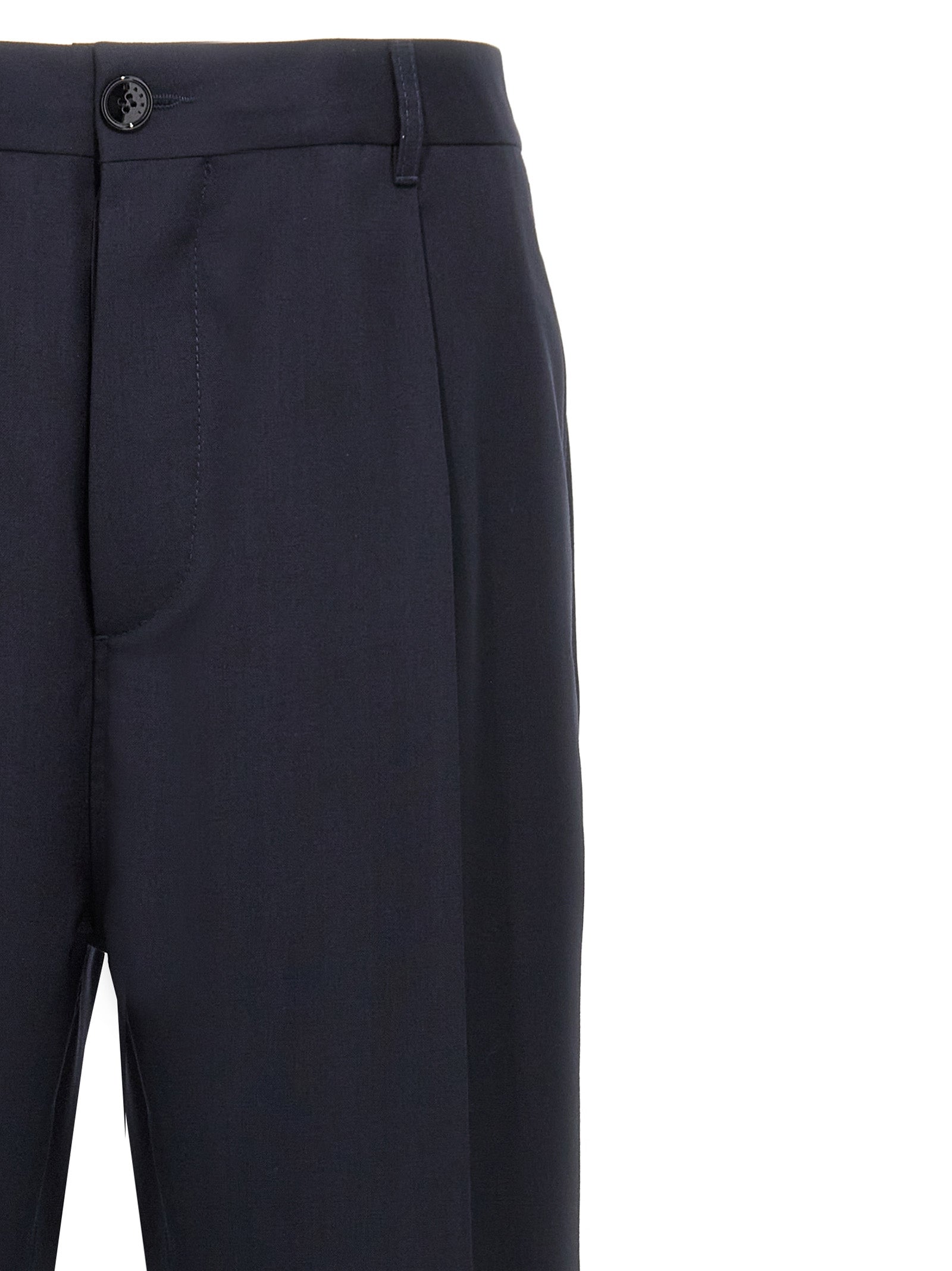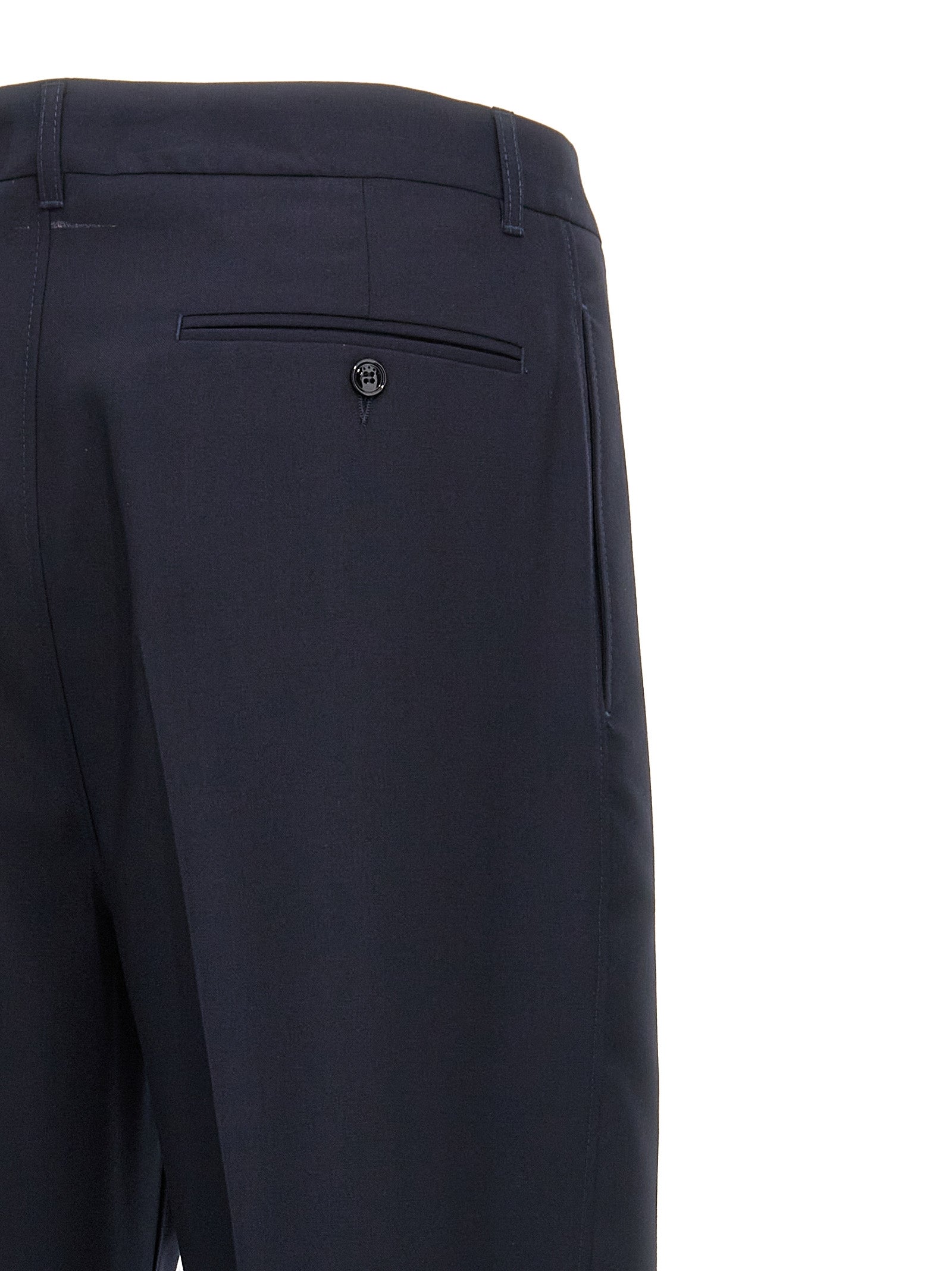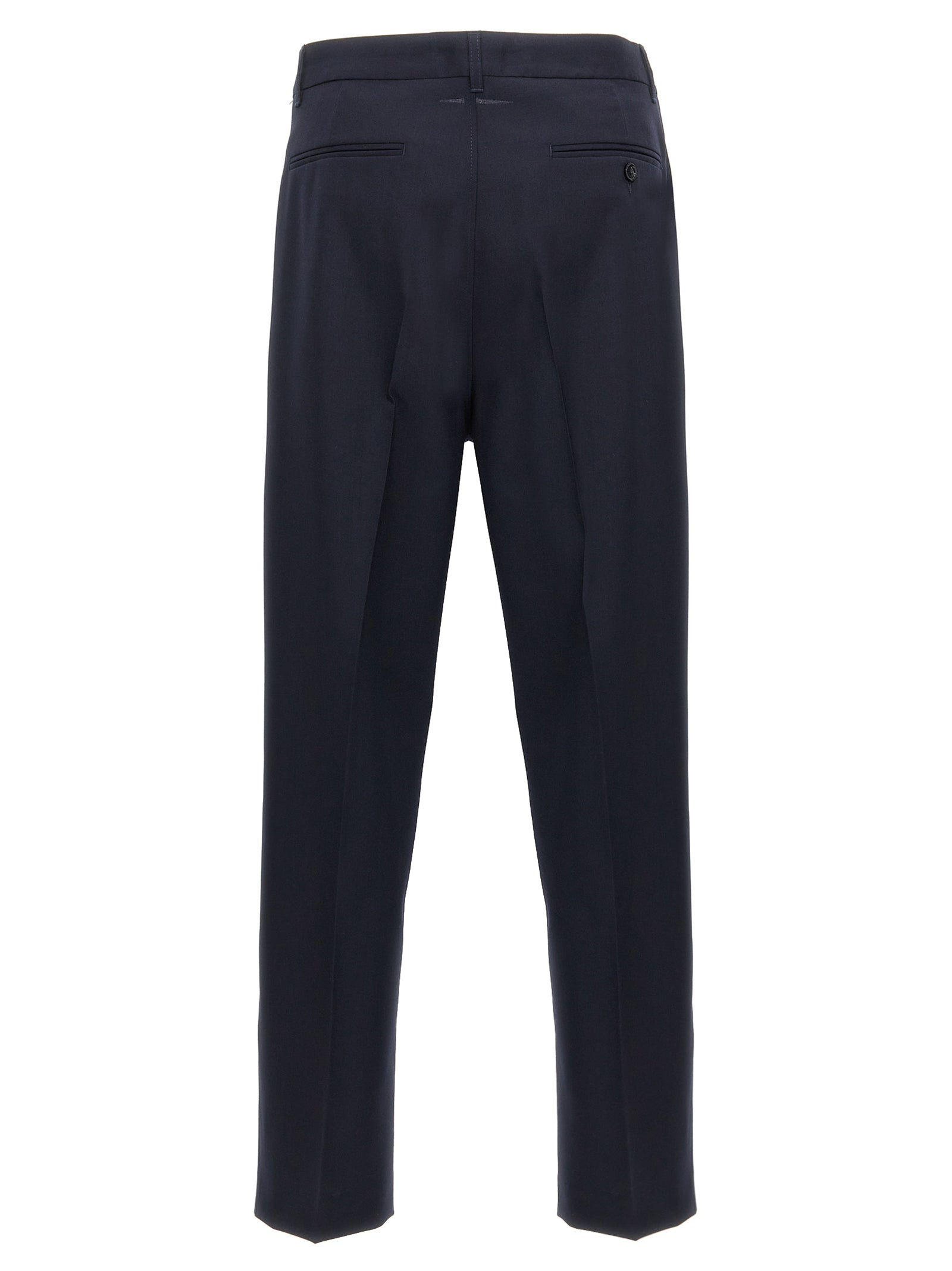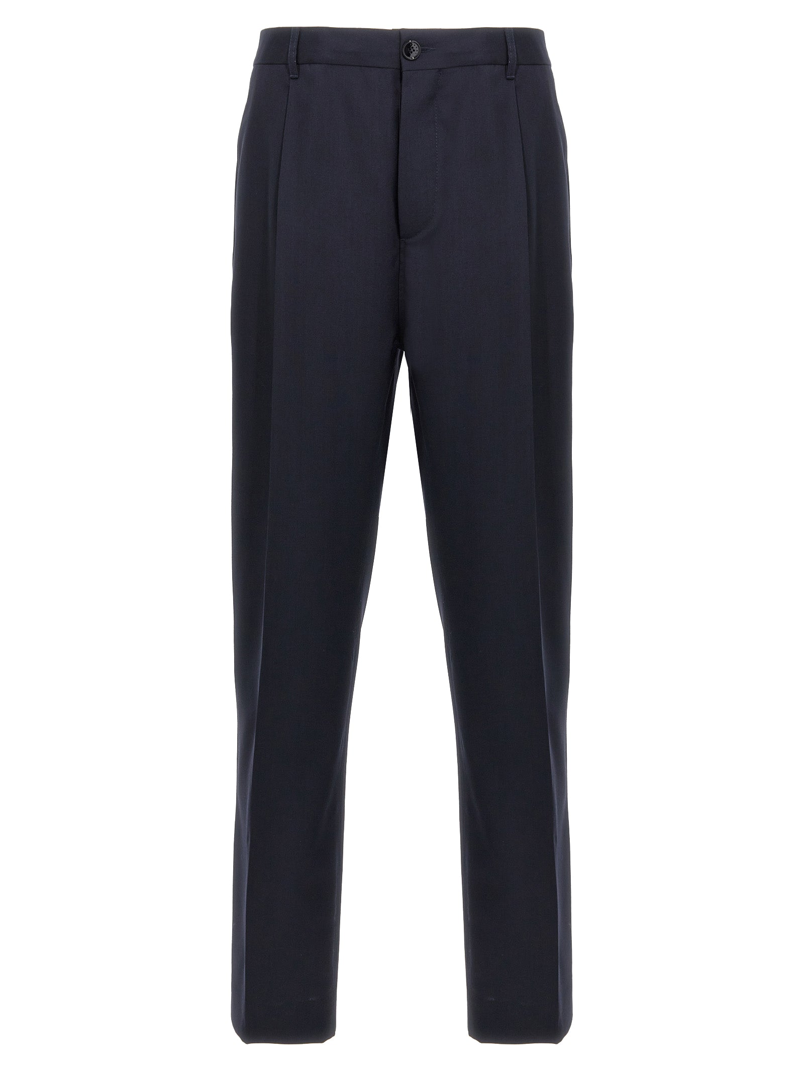 Virgin wool trousers, straight leg with stretched crease, button closure, pockets.