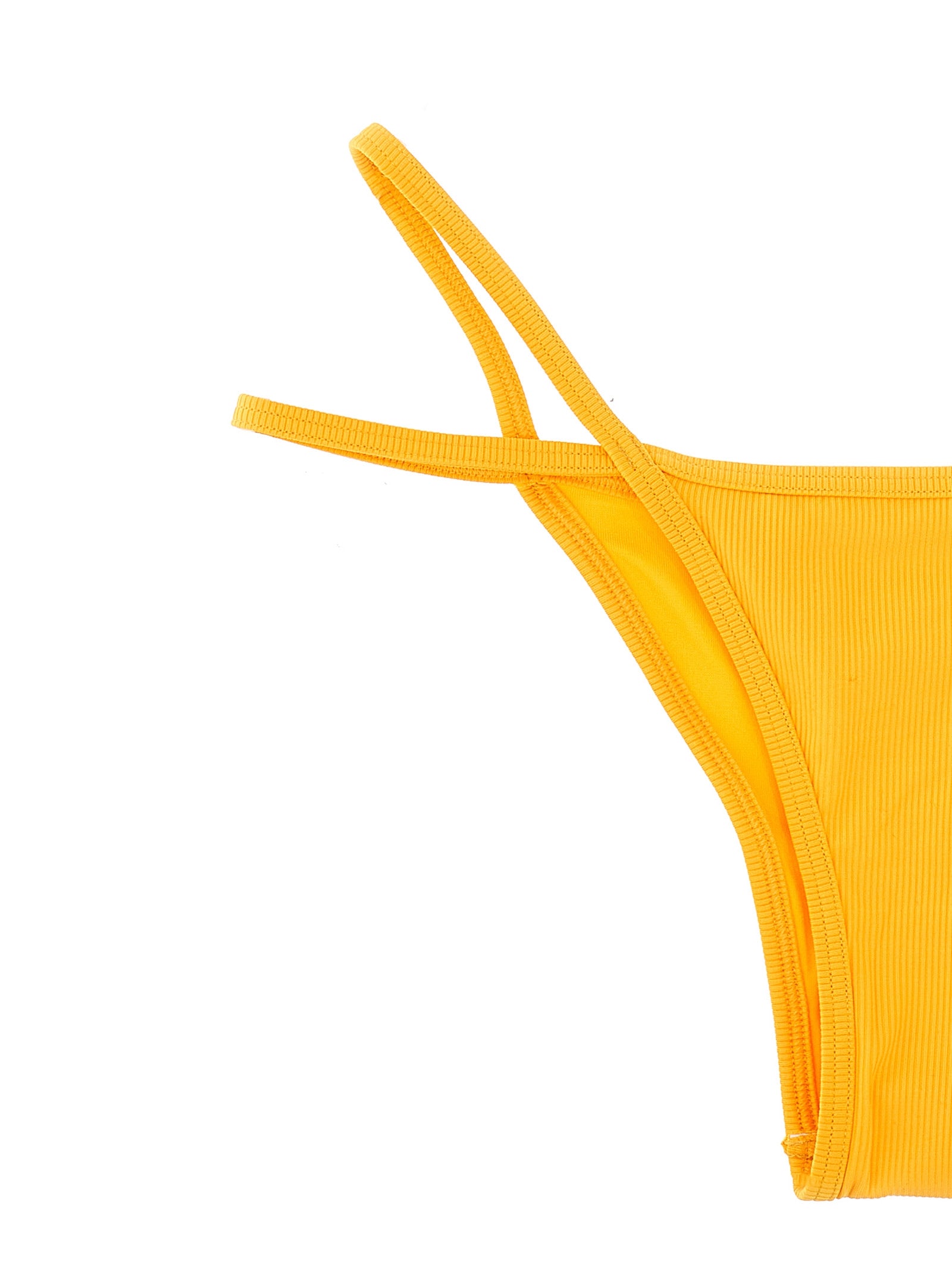 Ribbed lycra bikini with triangle bra, lacing and regular side cut-out briefs.