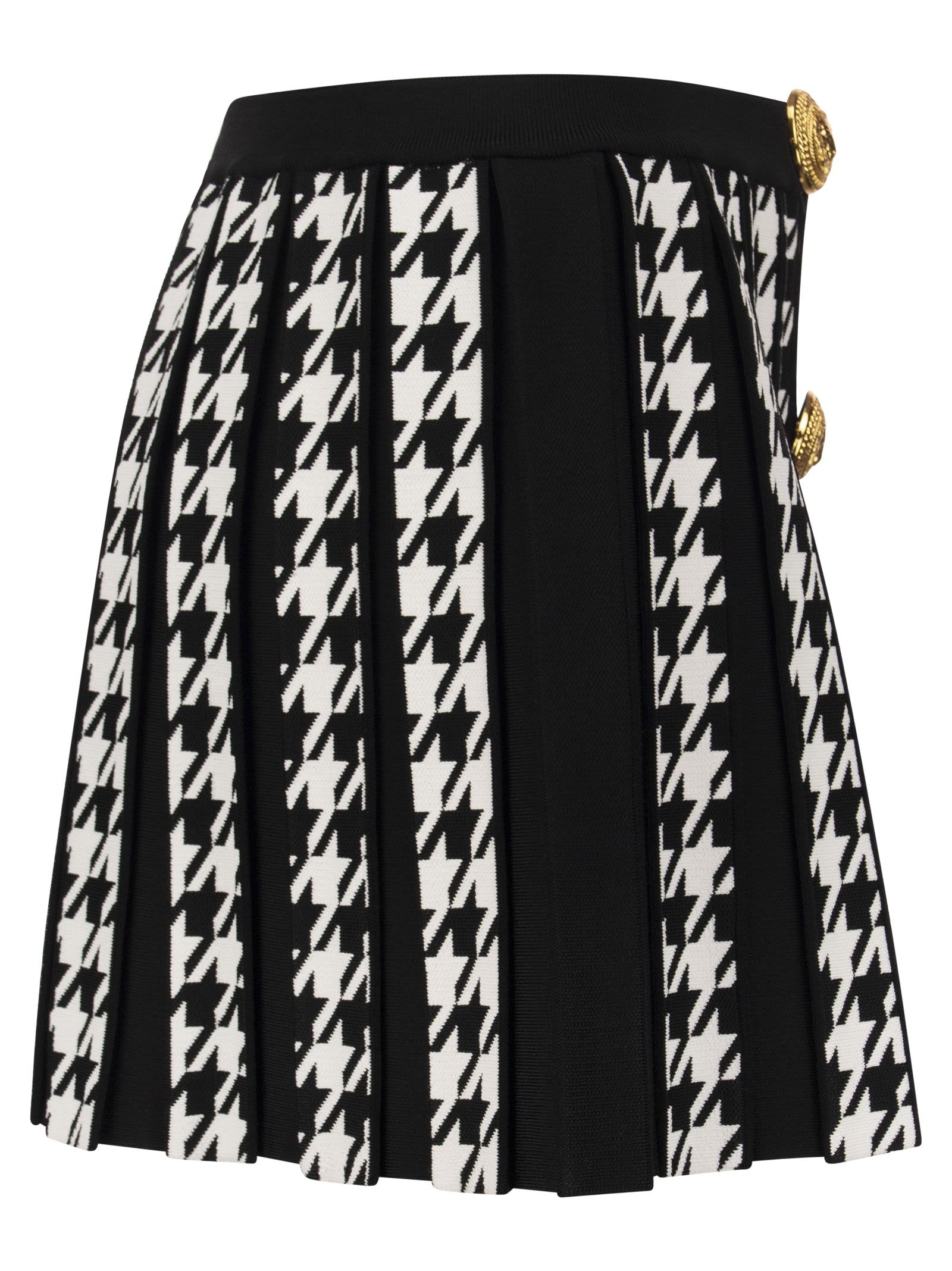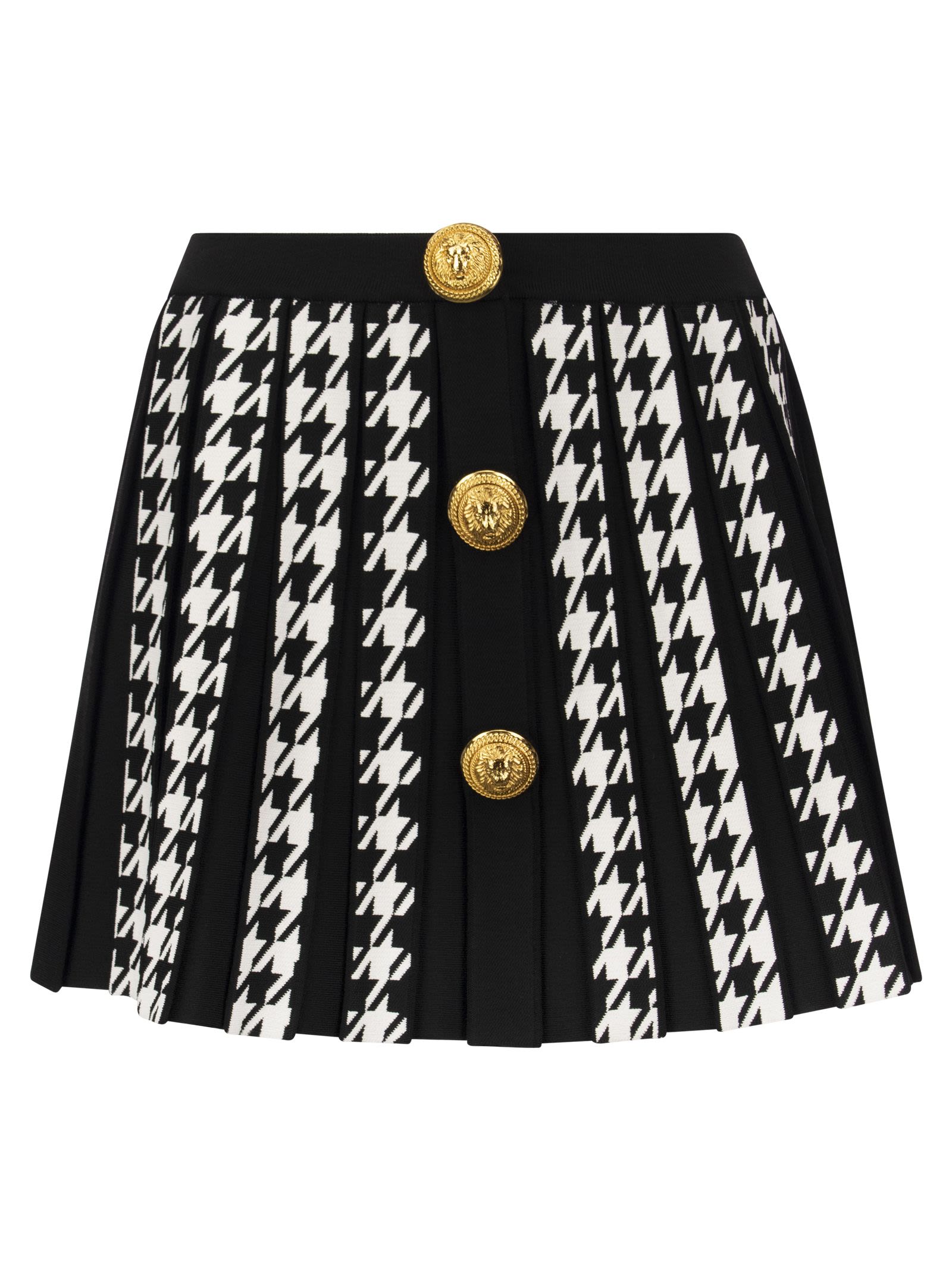 A key piece of the Balmain collections, the miniskirt is more irresistible than ever in this pleated version. Versatile to wear, it winks at the brand's fans with the classic gold buttons on the front. Mix it with light tops, t-shirts and leather ankle boots in your mid-season looks. - Snap button front closure DESIGNER ID: YF1LB479KC23 EAB