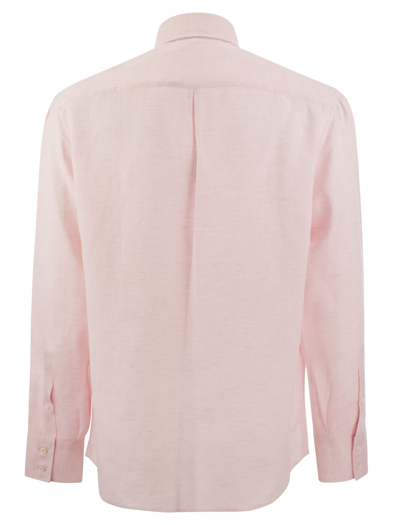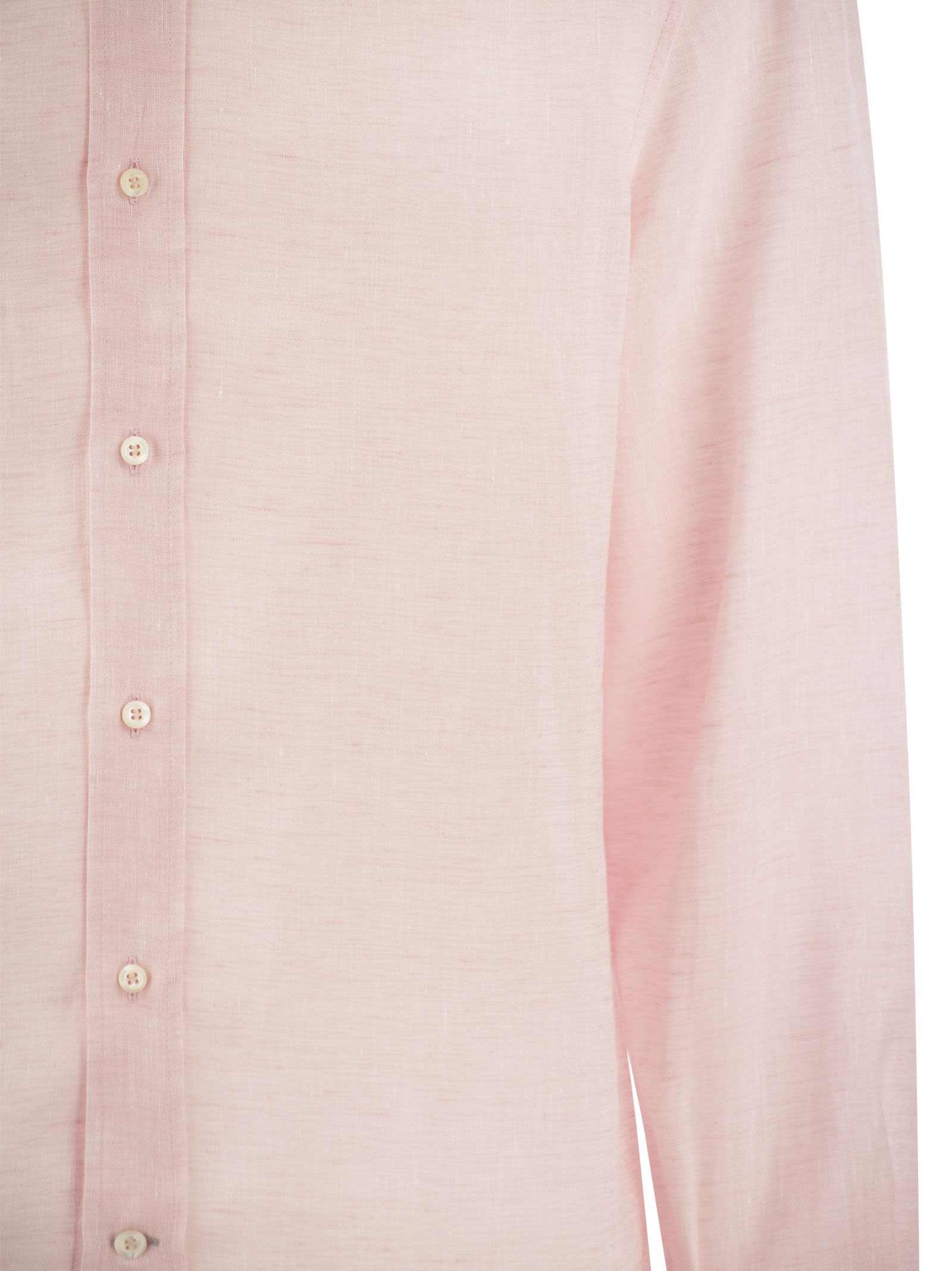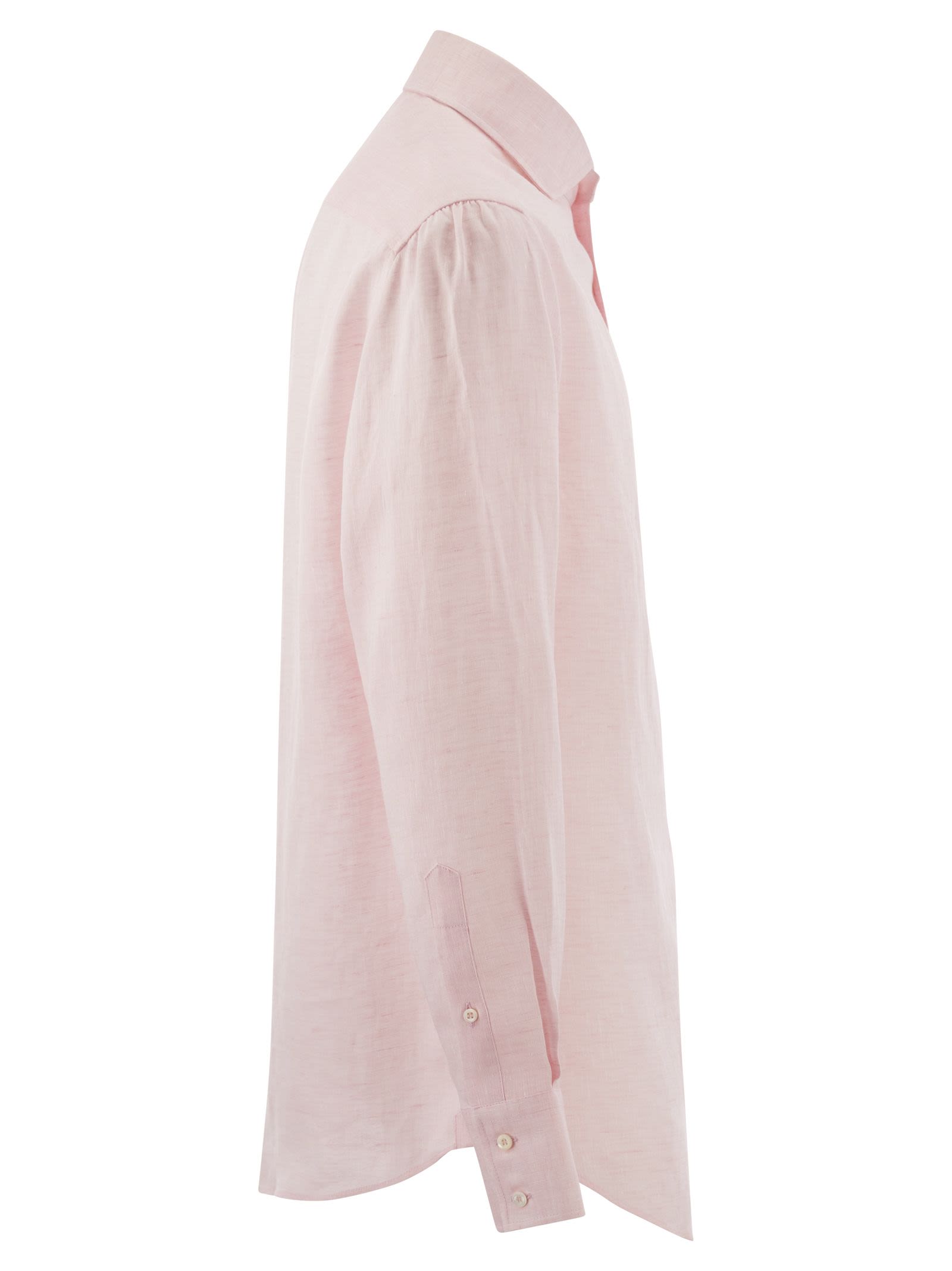 Linen enriches the shirt with French collar, an essential garment to complete seasonal outfits with a refined touch. The basic fit offers regular volumes that fall straight down the bust. - Button and button fastening - French collar - Button cuffs - Basic fit DESIGNER ID: MS6500028 C031