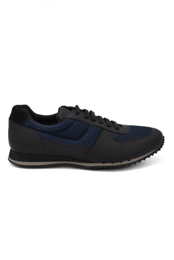Car Shoe sneakers in black leather and blue fabric.