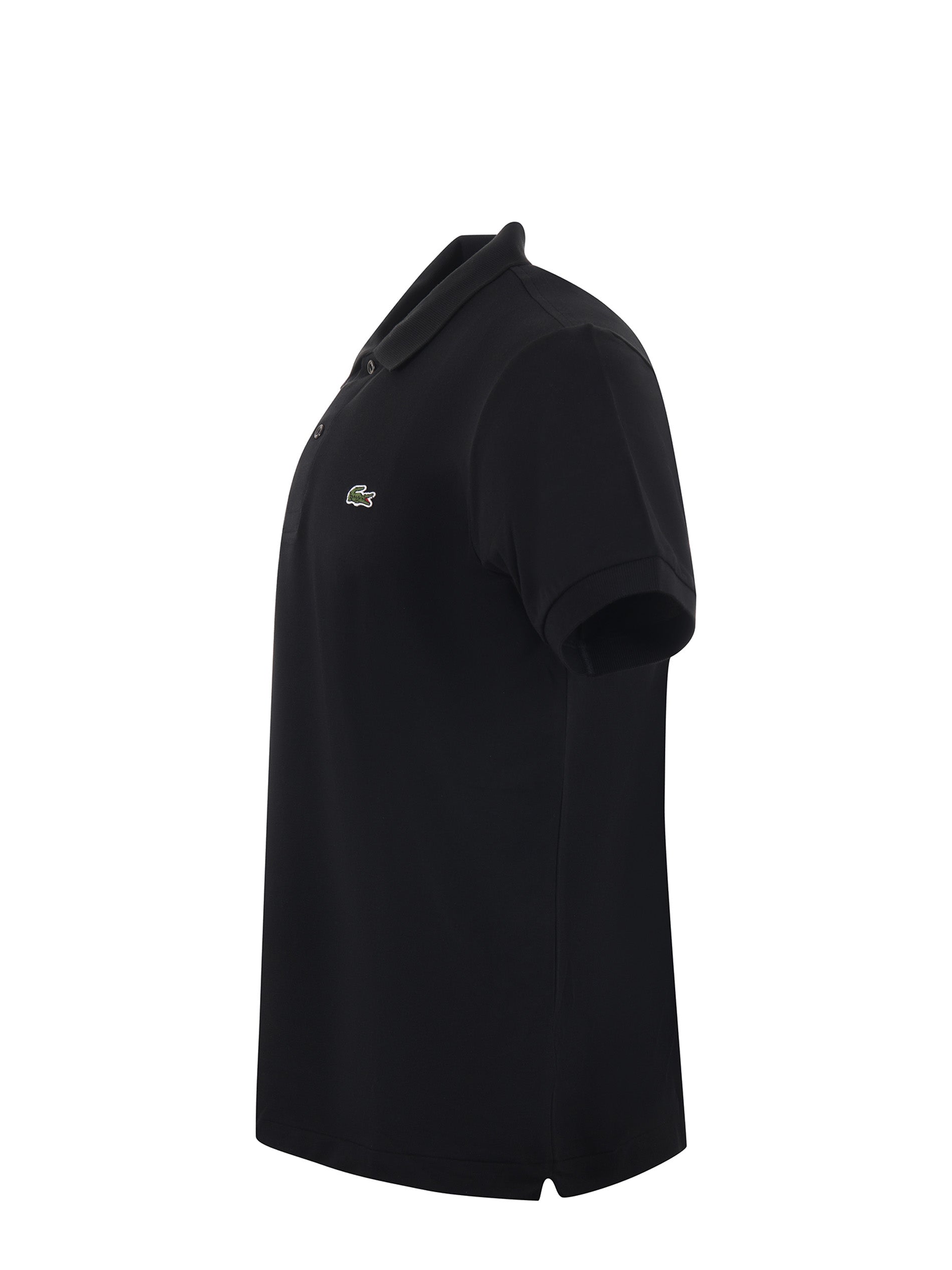 Lacoste polo in lightweight cotton pique. Ribbed collar. Short sleeve. 2-button closure. Front logo. Classic fit. Size in photo 4 French (M) 63% cotton, 31% polyester, 6% elastane