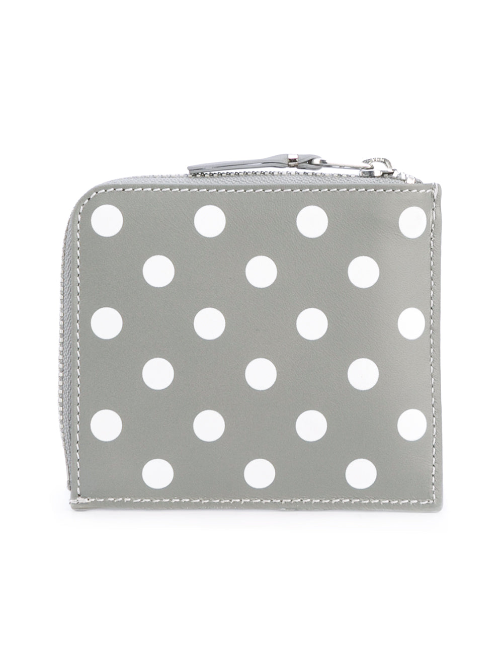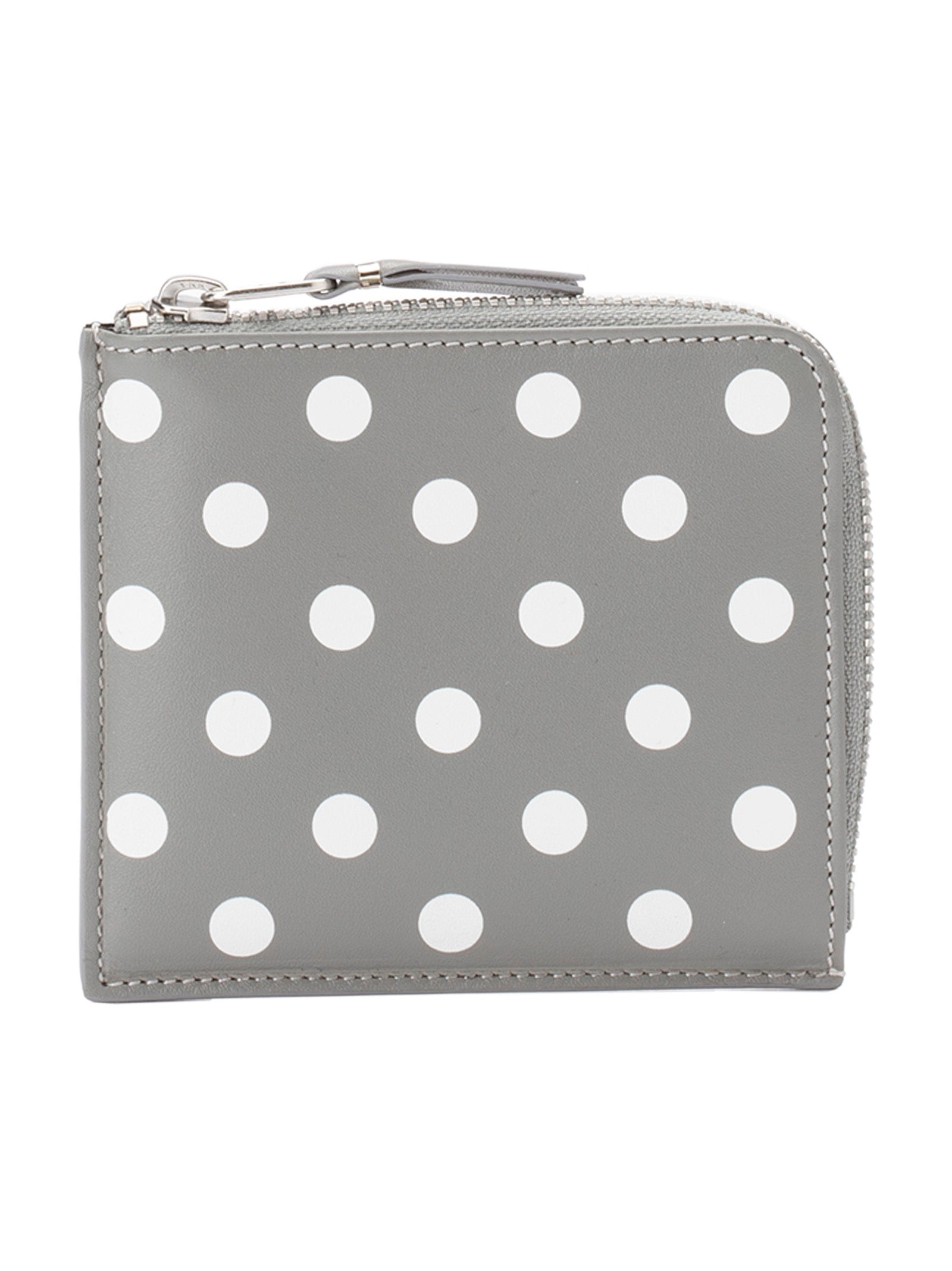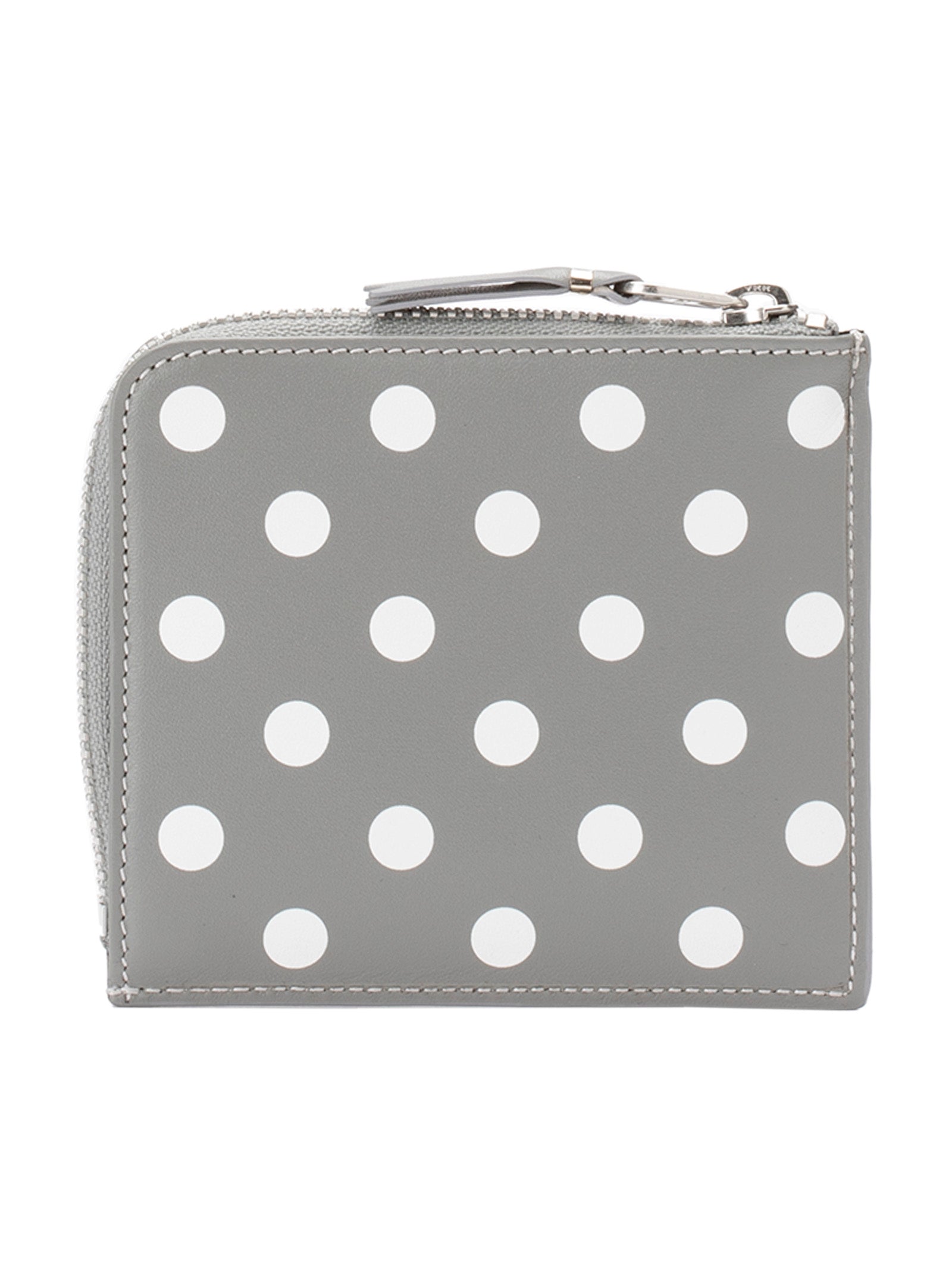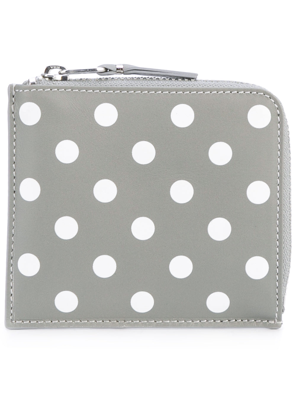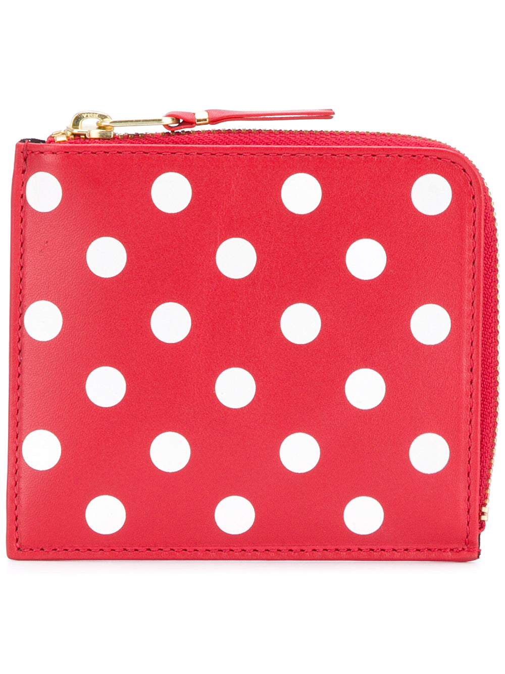 Leather polka dot wallet from Comme Des Garçons Wallet featuring a gold-tone top zip fastening, a front embossed logo stamp and internal pockets.