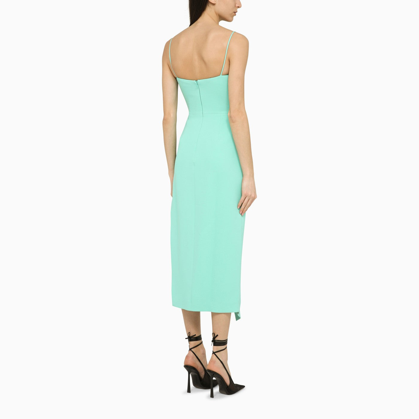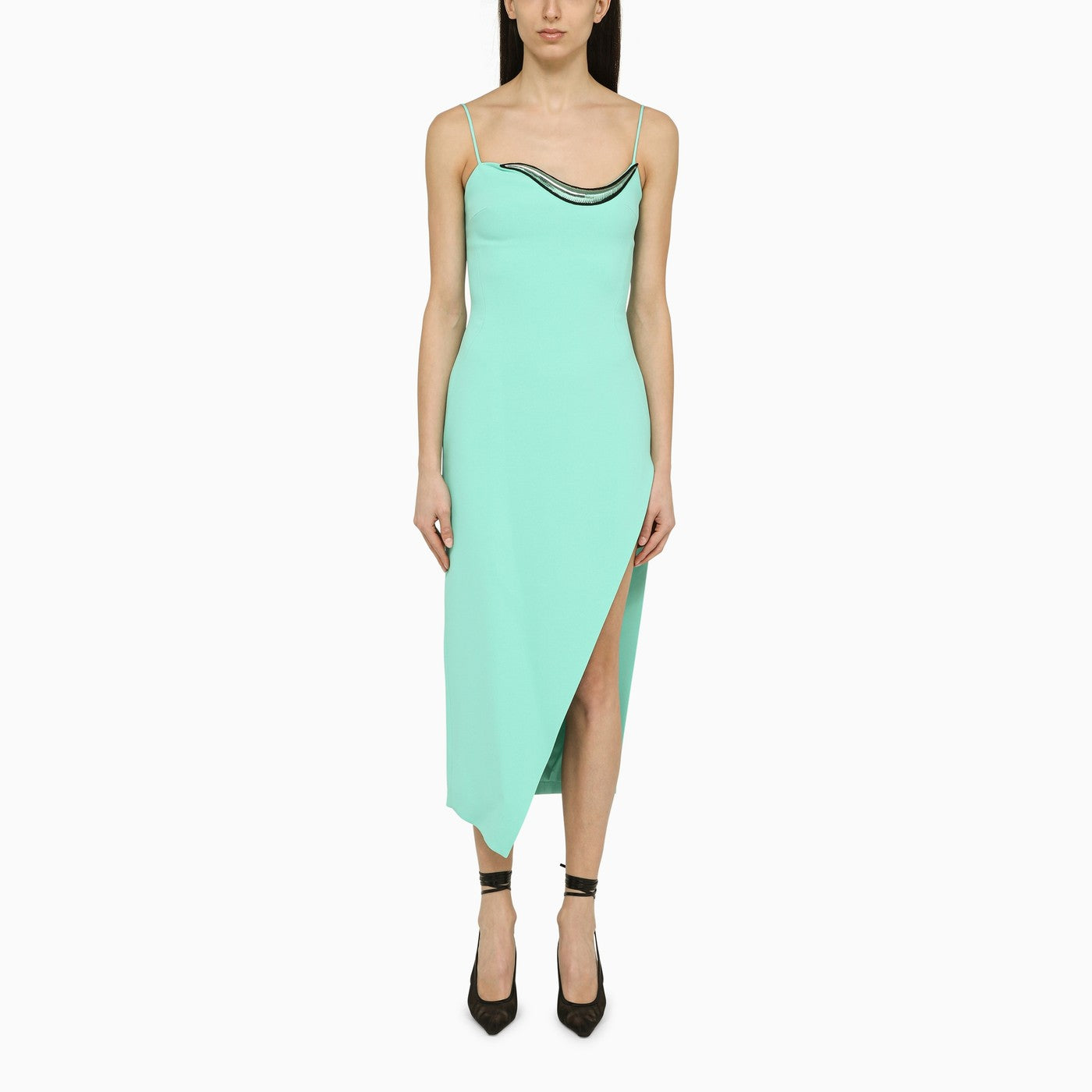 A teal viscose blend midi dress from David Koma featuring thin straps, a deep side slit, a back zip fastening and a sequin detail on the neckline.