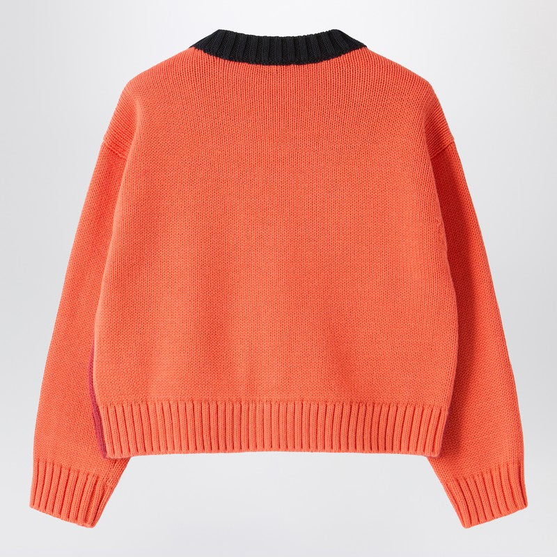 Il Gufo cotton cardigan with begonia, currant, and blue color-block design, featuring V-neckline, front button fastening, long sleeves, and ribbed trims.