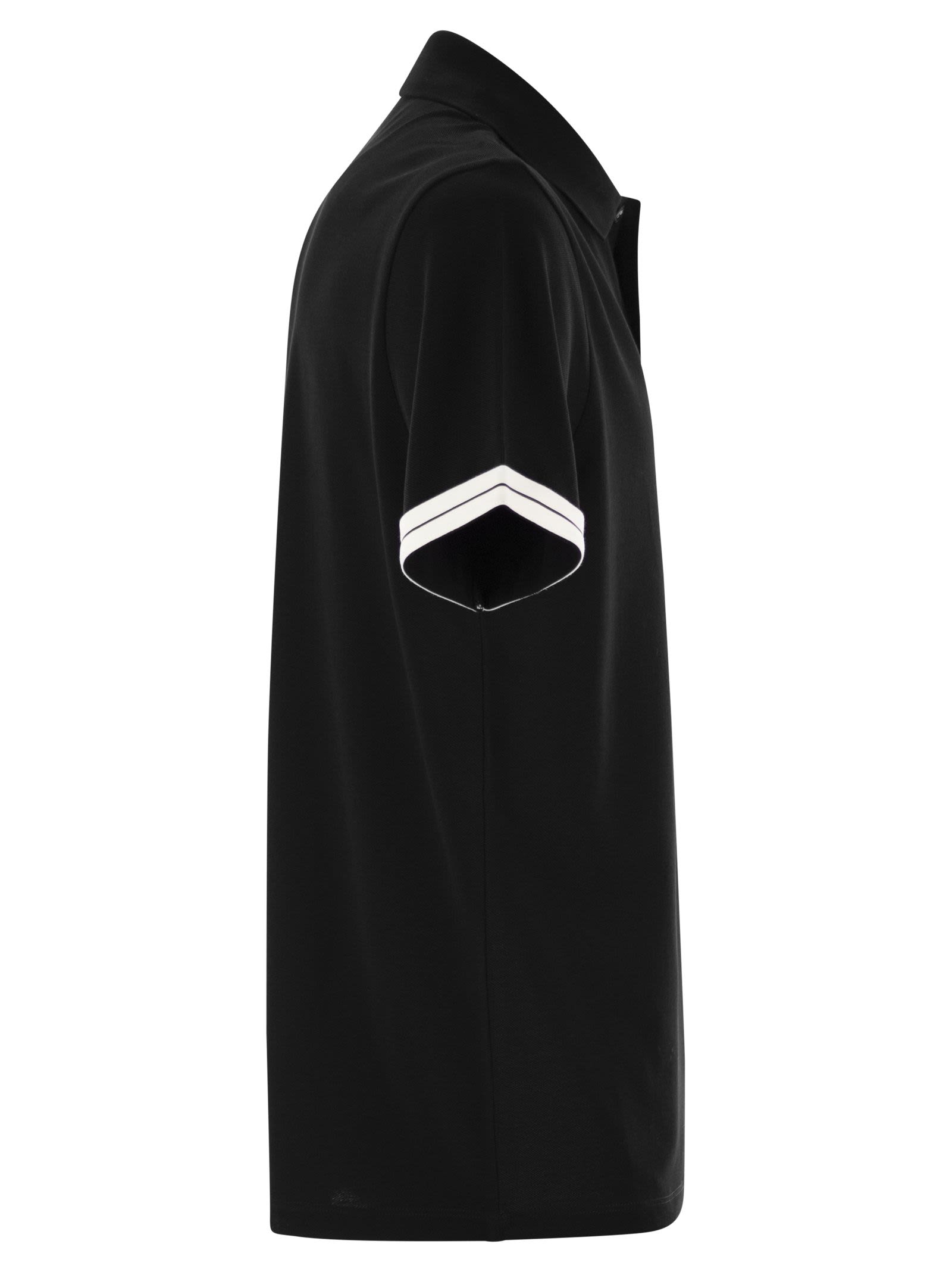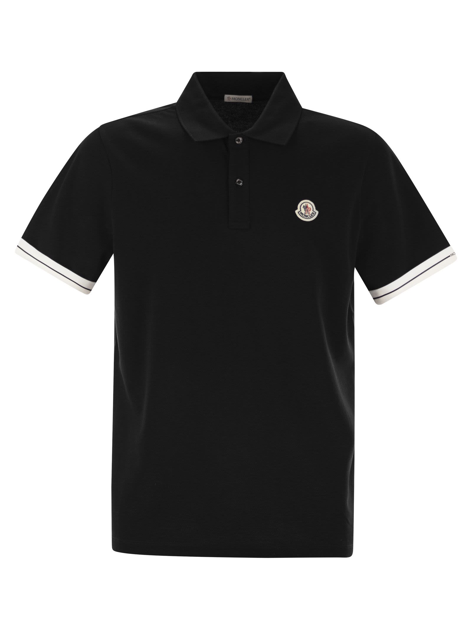 This piqué cotton polo shirt is perfect to wear all year round. This classic short-sleeved garment discreetly embodies the Moncler spirit, with a striped logo print on each cuff. - Made in piqué cotton - Knitted collar - Short sleeves - Mother-of-pearl button closure - Jersey cuffs with rubberized logo print - Regular fit DESIGNER ID: K10918A0002789ALK 999