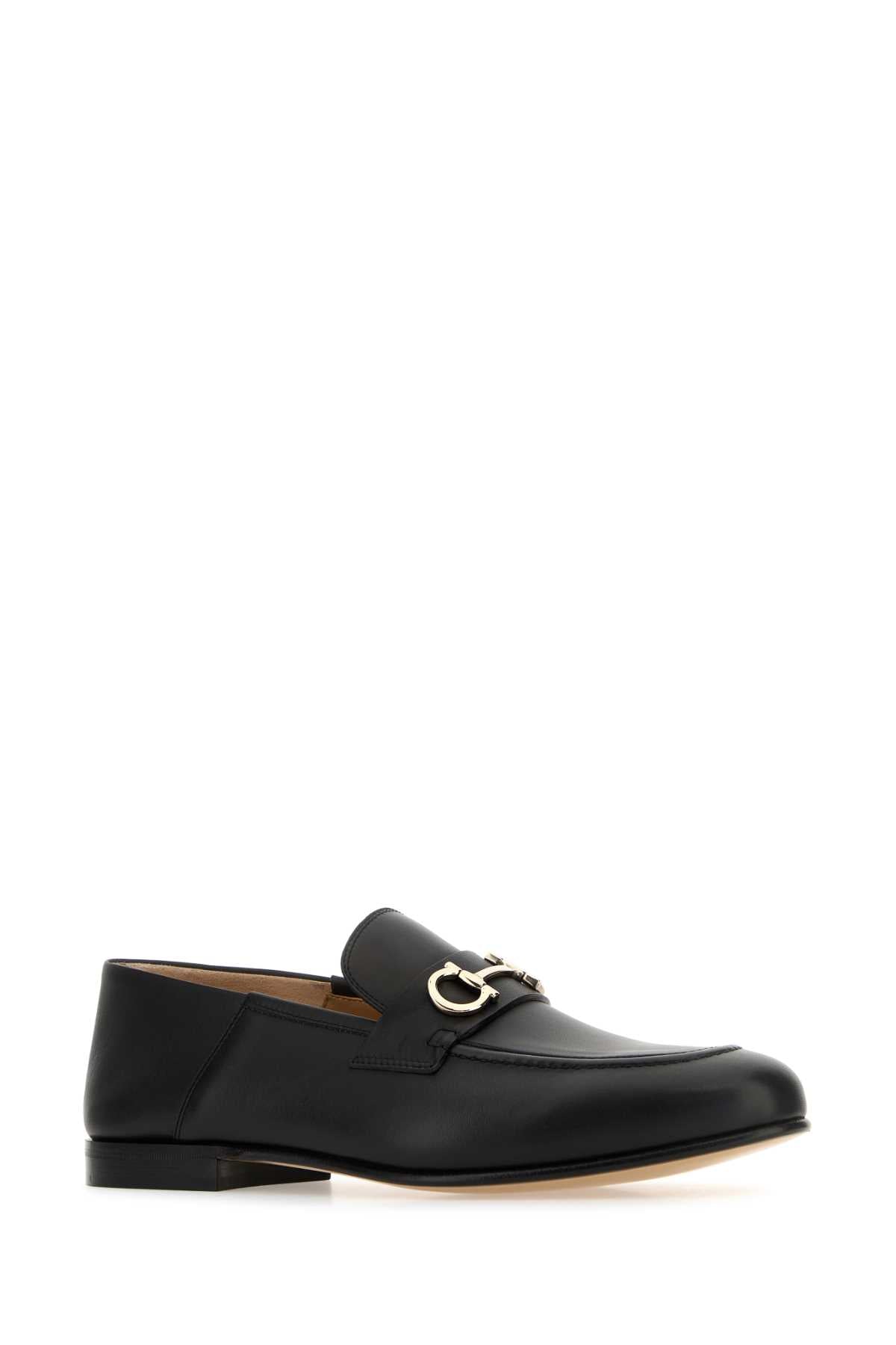 Salvatore Ferragamo Black Leather Gin Loafers