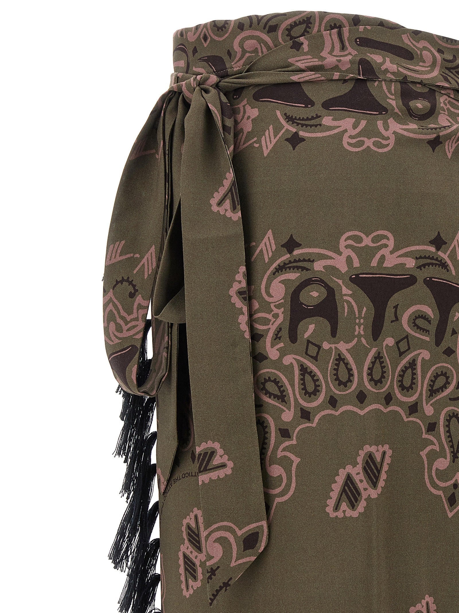 'Bandana' print cotton sarong with side fringes, knot closure at the waist.