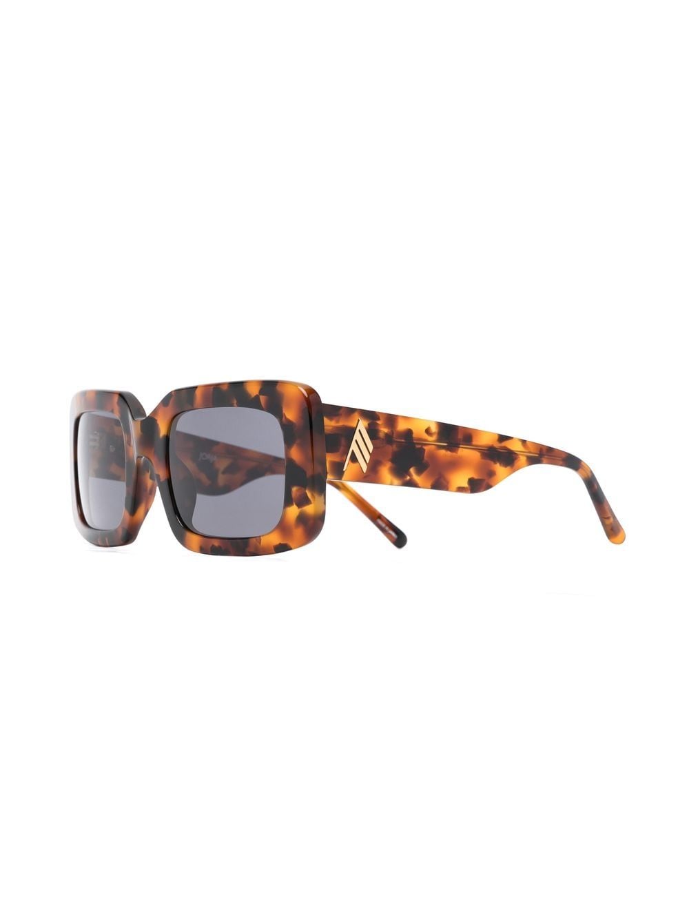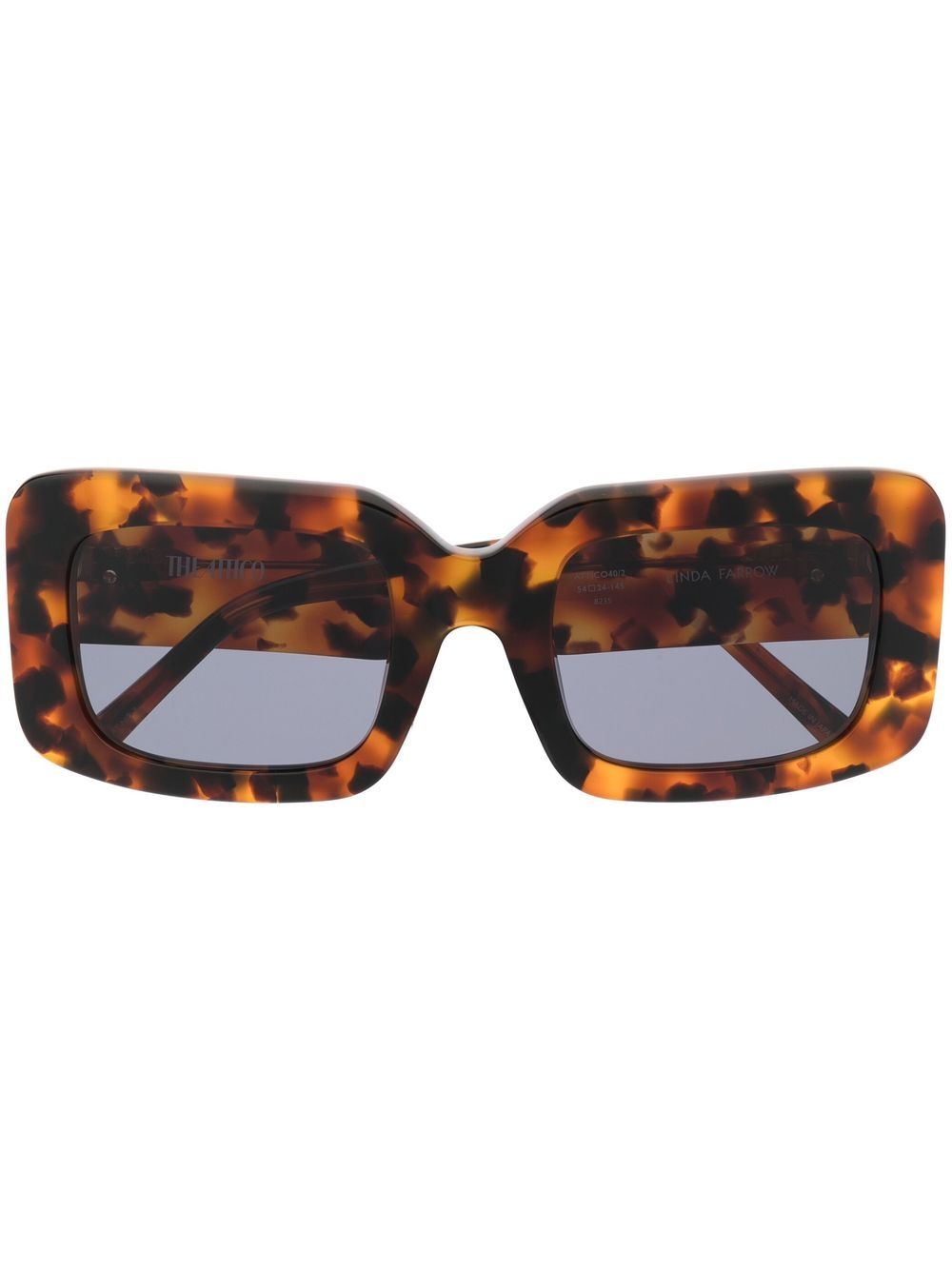 x Linda Farrow Jorja square-frame sunglasses from The Attico featuring brown, acetate, square frame, blue tinted lenses, tortoiseshell effect, logo plaque at the arm, straight arms and curved tips. These glasses come with a protective case..