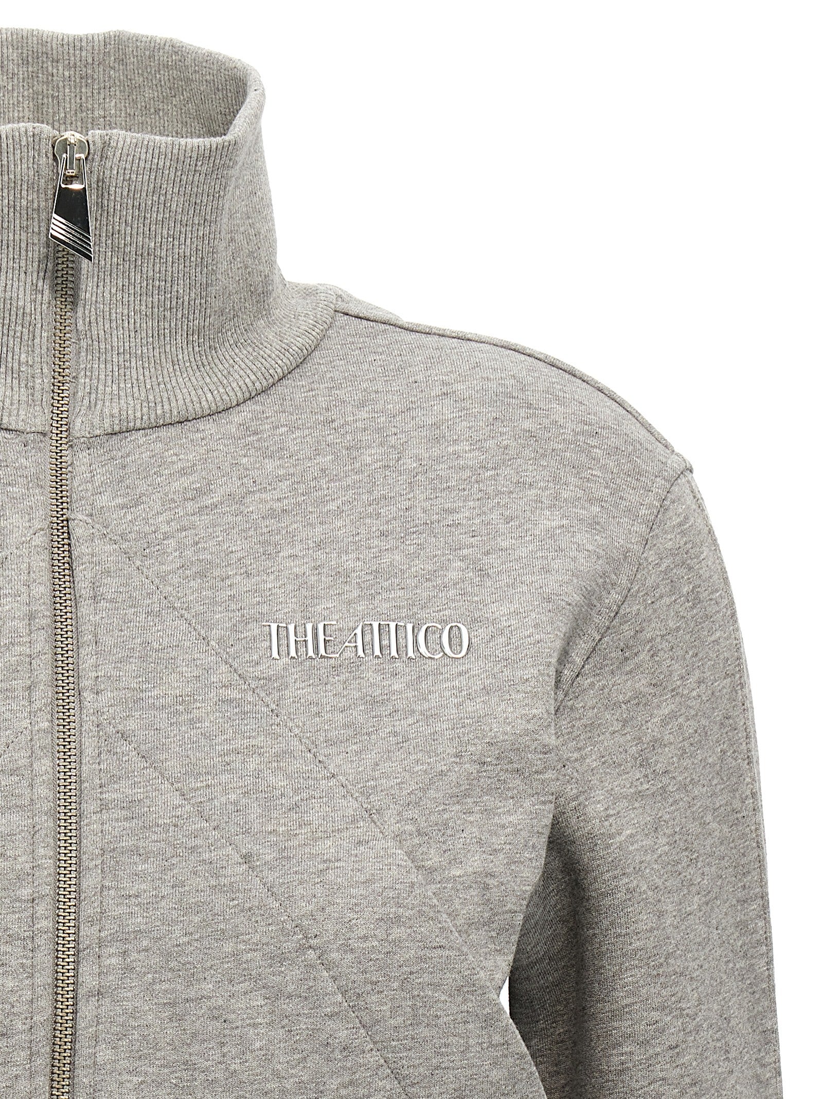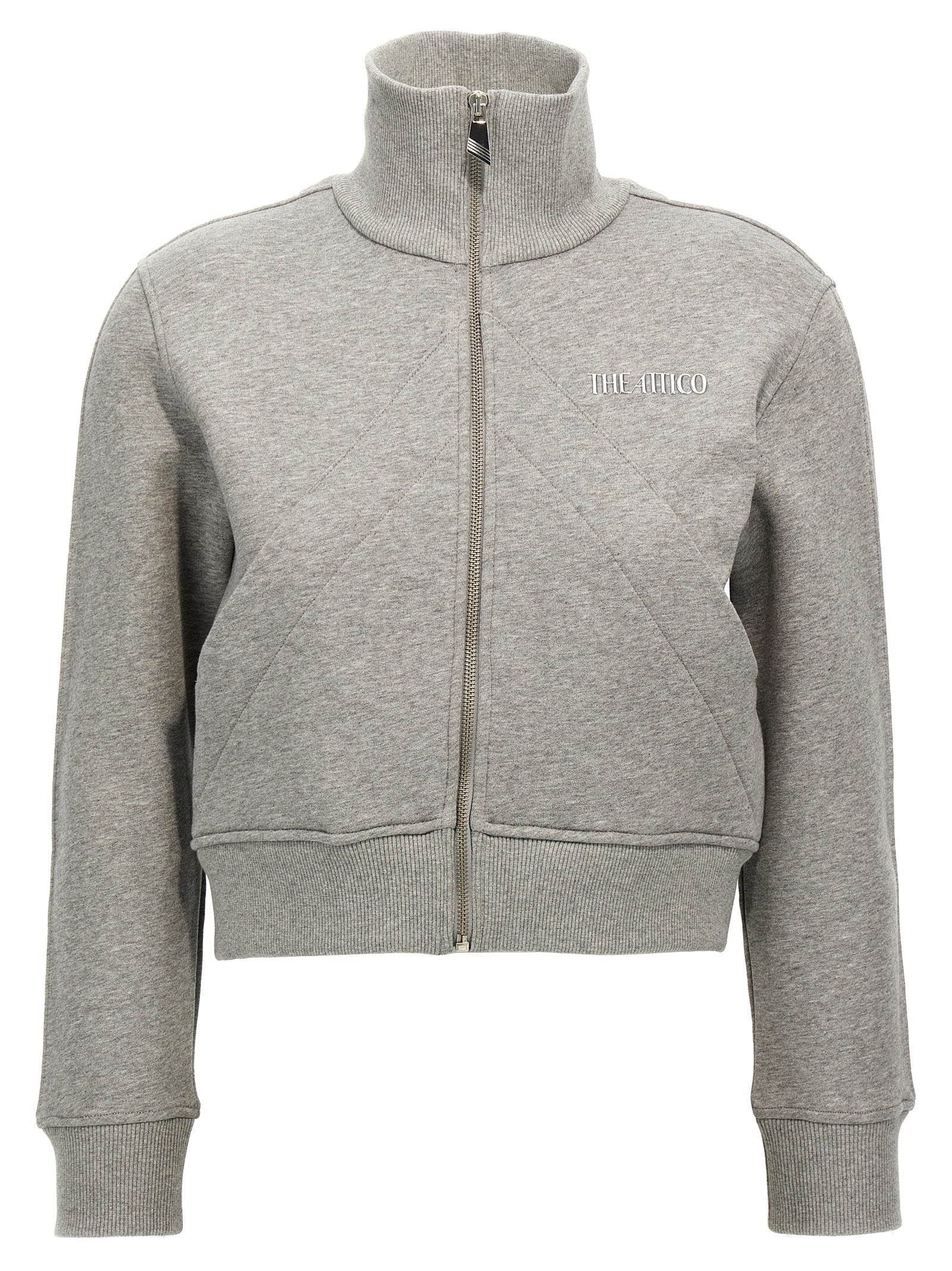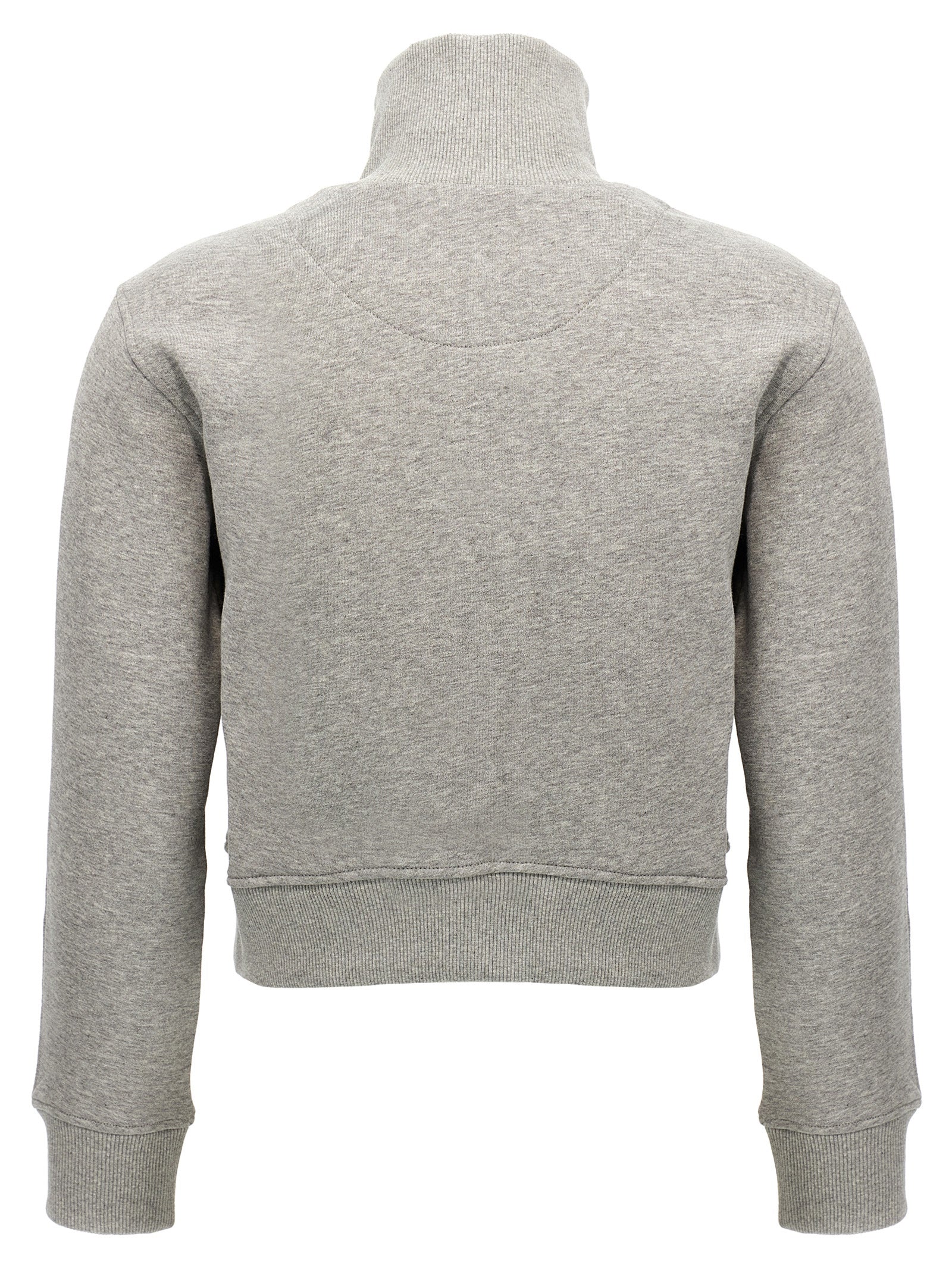 American fleece cotton sweatshirt with front embossed logo, crop style, high neck, zip closure, pockets, long cuffed sleeves.