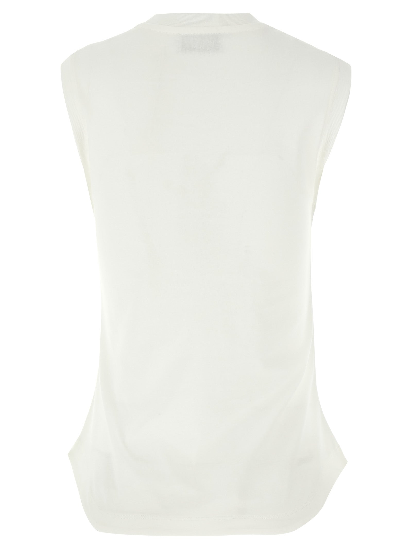 'Reese' cotton top with front logo appliqué, armholes, crew neck, shaped hem.