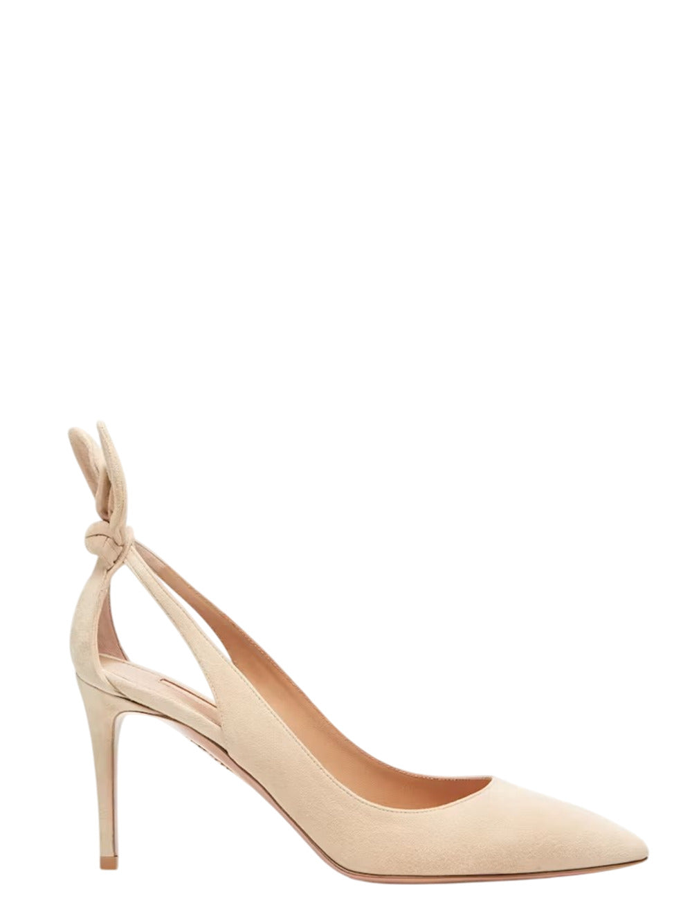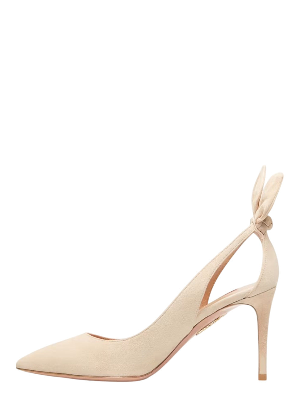 The Bow Tie 85 nude pumps are a versatile and elegant model, perfect for creating feminine and refined combinations. The beige pumps, in fact, are made of suede and have a tapered toe design. On the back, the undisputed protagonist is the bow, which gives a touch of liveliness and originality to the model. The Bow Tie 85 pumps will add sophistication to formal looks, or enrich casual outfits with style to wear on more informal occasions.