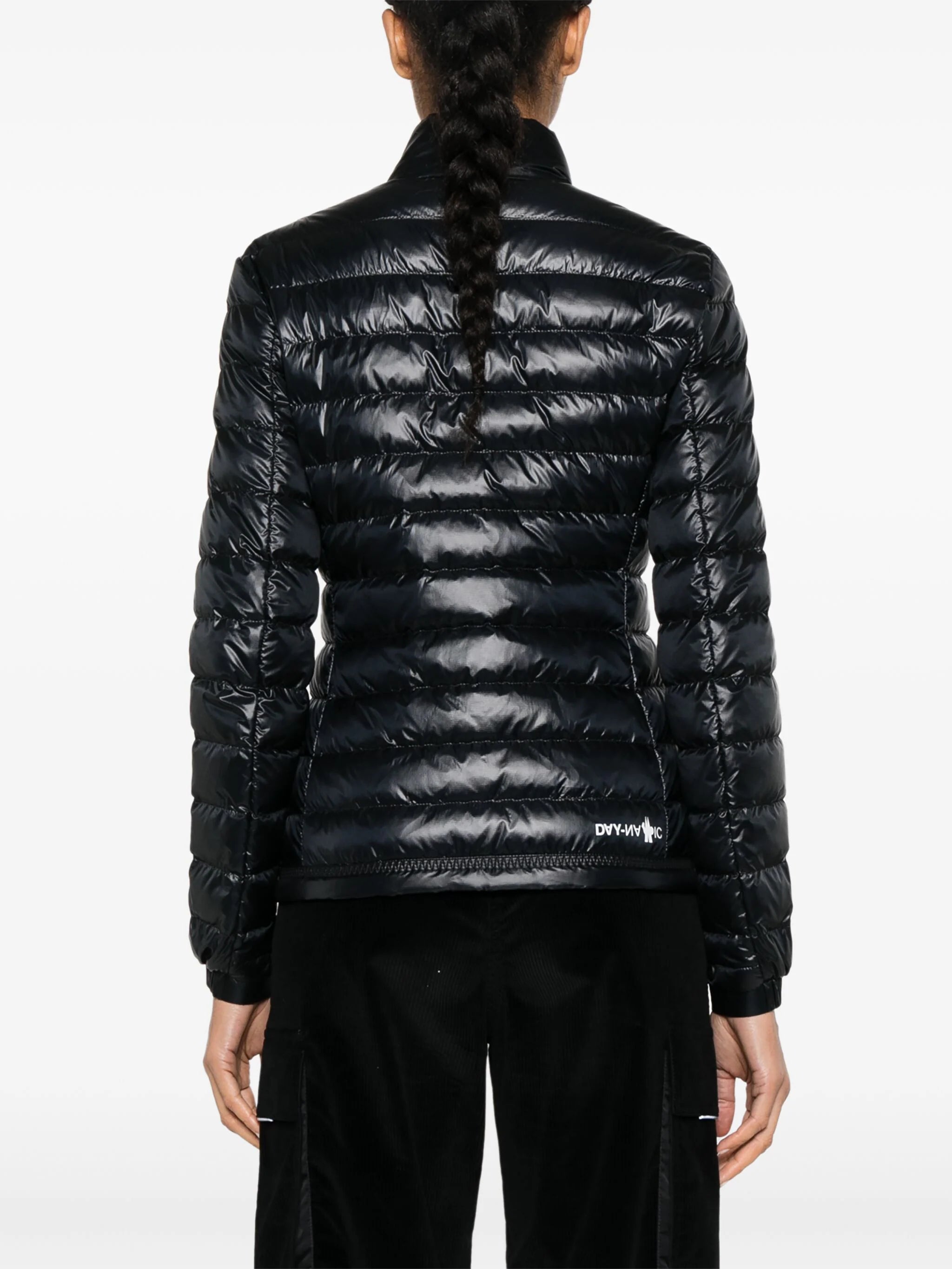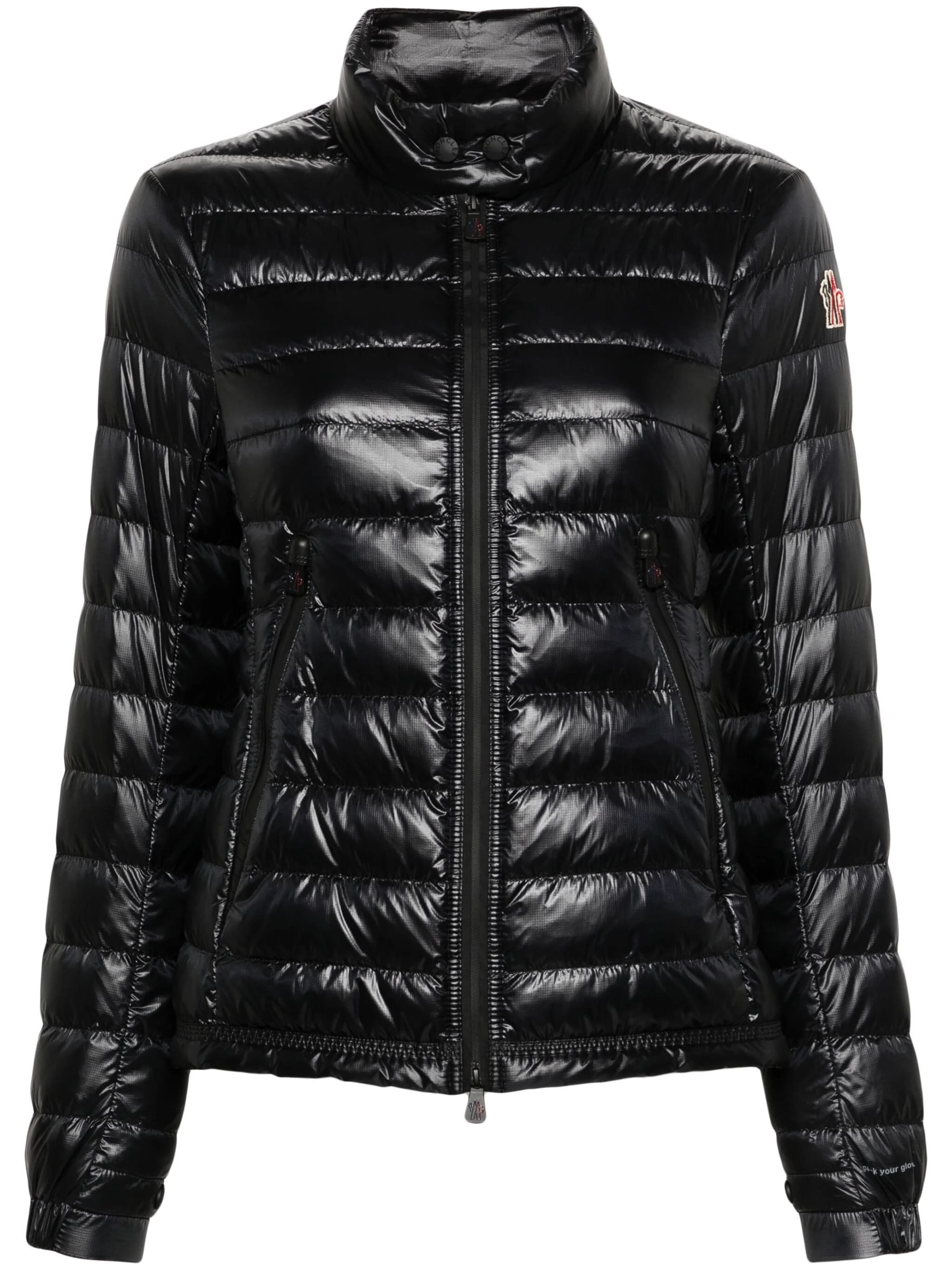 design trapuntato con texture a struttura ripstop di colore rosa chiaro, logo trapuntato sulla manica, colletto a imbuto, chiusura a pressione sul collo, chiusura a zip bidirezionale sul davanti, maniche lunghe, polsini elasticizzati, guanti nascosti, due tasche laterali con zip, fodera a contrasto, tasca interna con zip, orlo dritto.