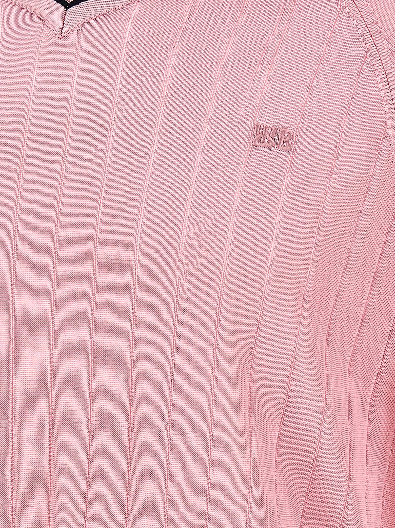 'Roots polo shirt' V-neck sweater with contrast collar and trim, ribbed pattern, long cuffed sleeves.