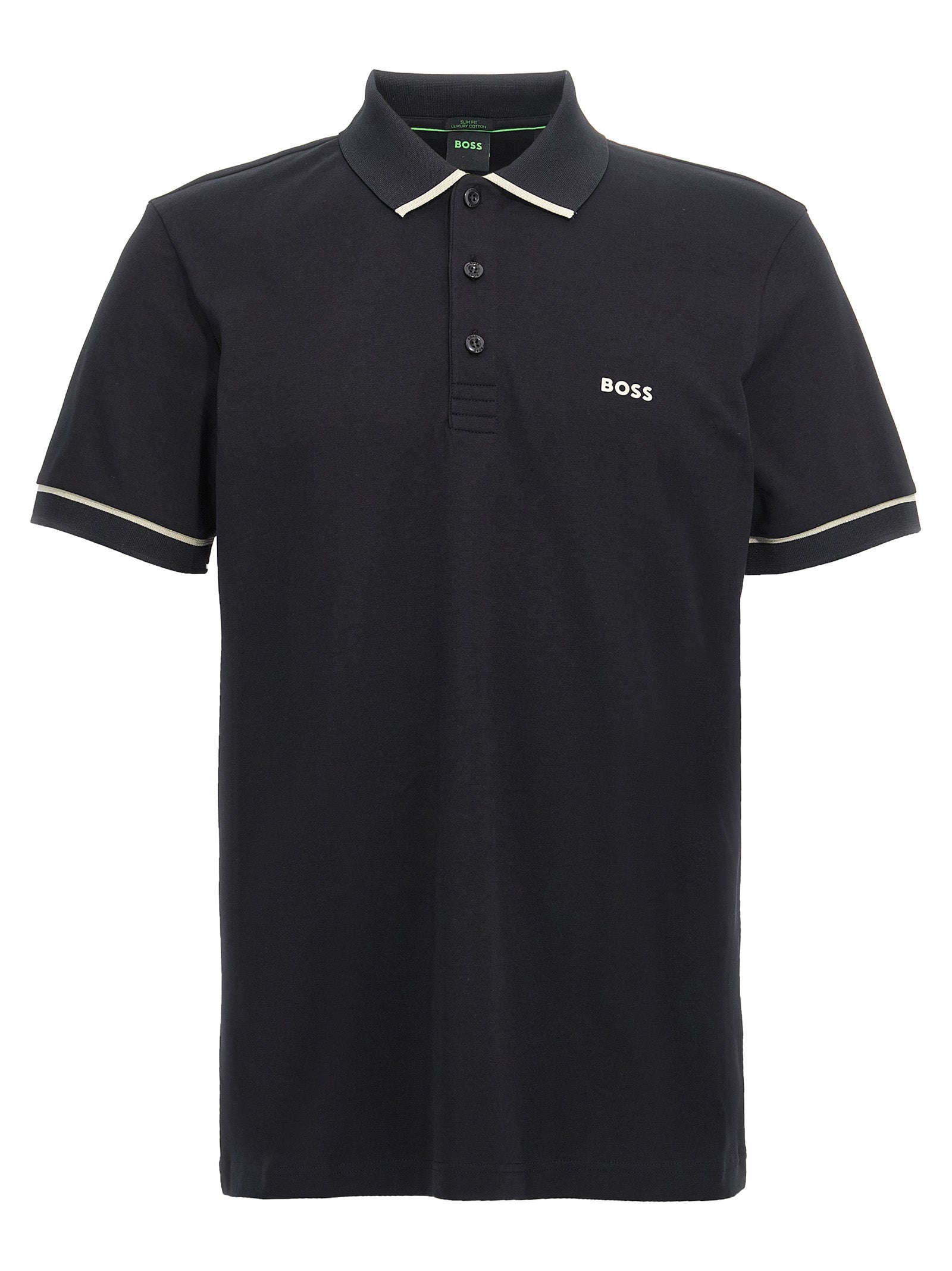 'Paule' cotton polo shirt with front logo patch, button collar, short sleeves.