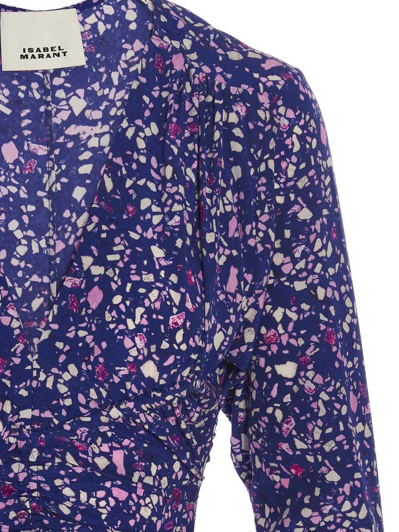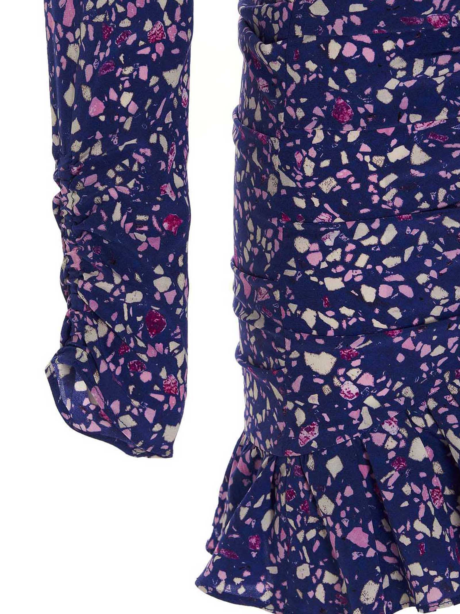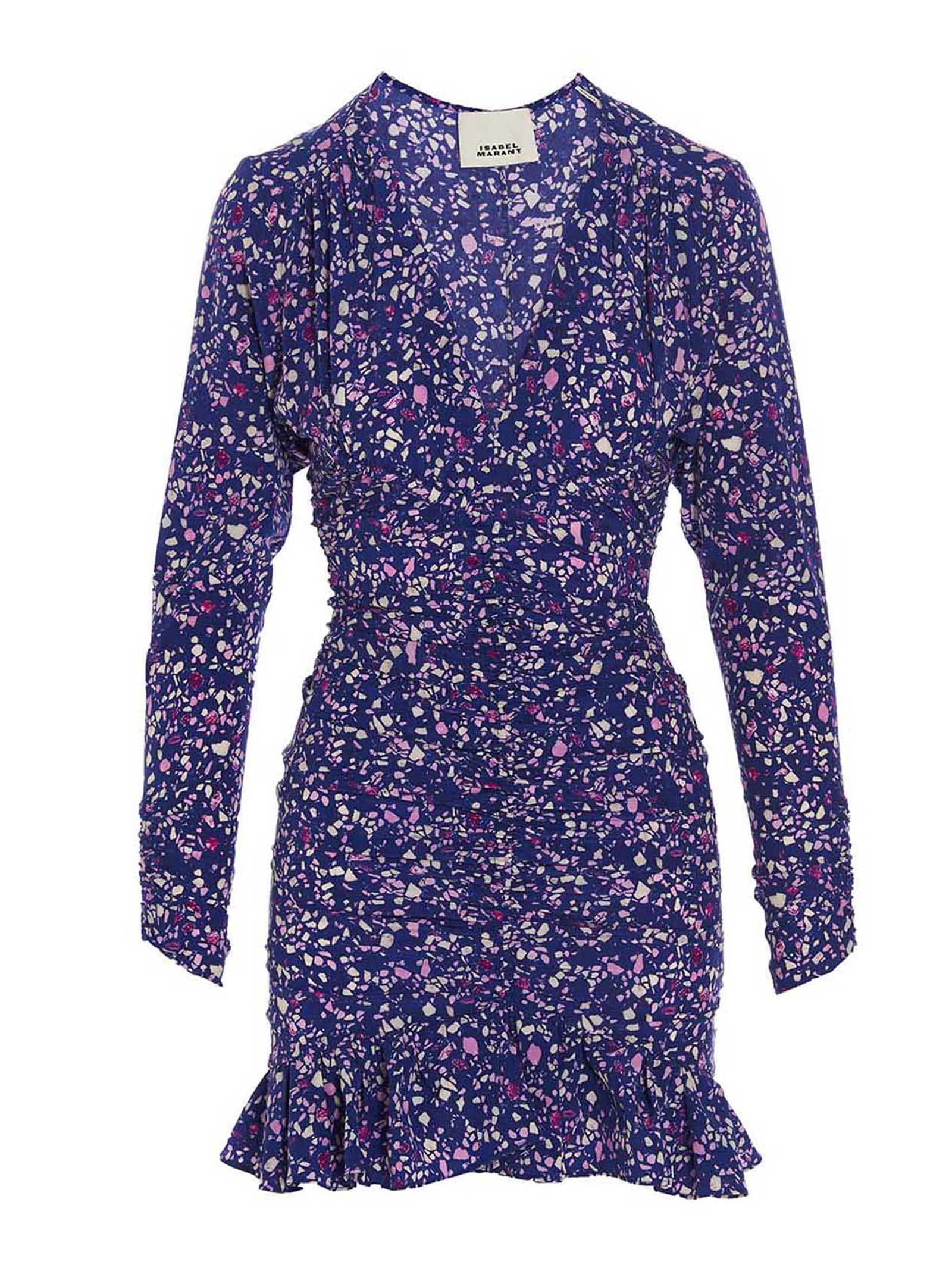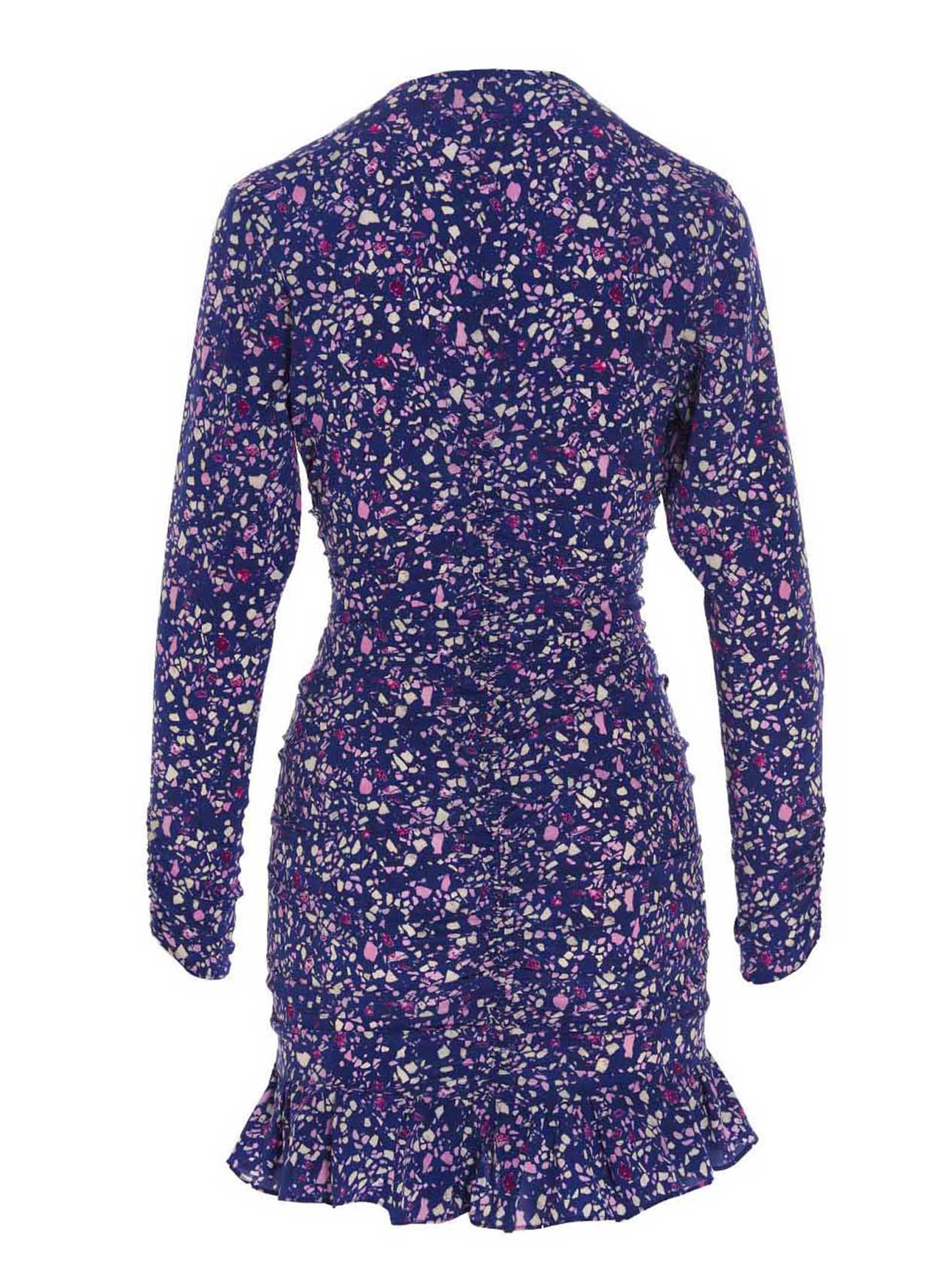 Lara' stretch silk dress with all-over print, V-neck, long sleeves, central elastic detail at the front and back and a side zip closure.