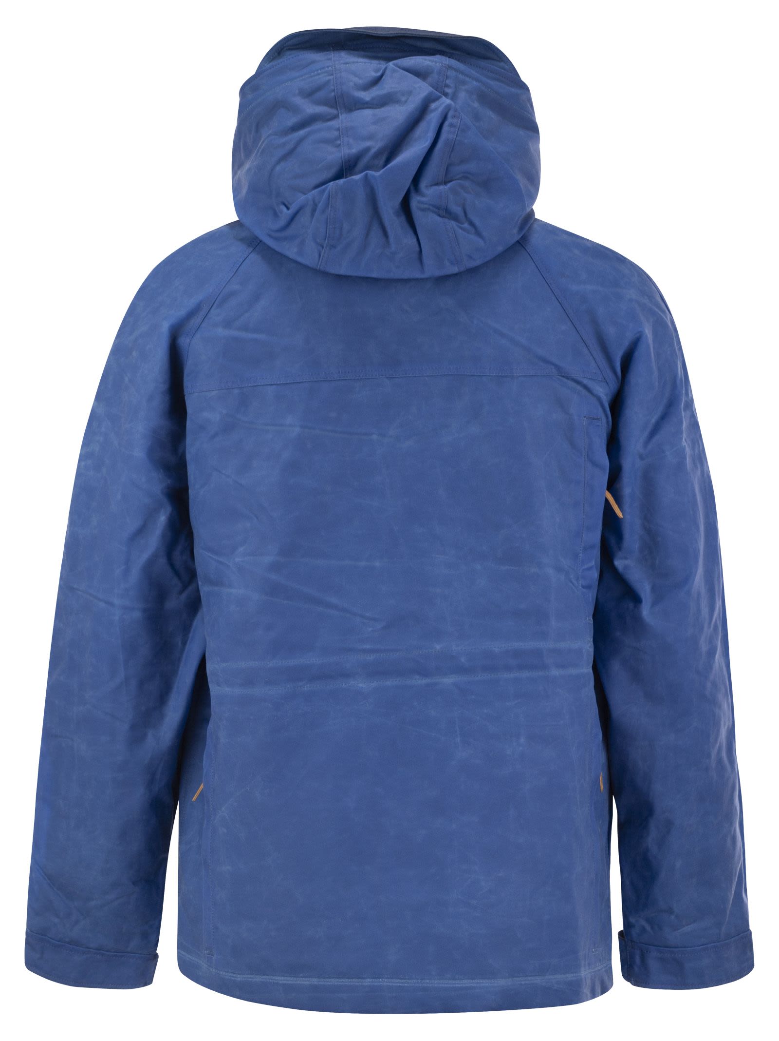Fisherman Parka, made of paraffin-coated cotton and water-repellent recycled polyester. The body is lined with quilted cotton and padded with wool wadding, the sleeves are lined with cupro and padded with wool wadding from sheep raised in Italy. It has three zipped inner pockets and various compartments for pens, etc., a slot for earphones and a drawstring regulation at the waist. Externally it has two large low front pockets with flaps plus two upper handwarmer pockets also closed with flaps and press studs, elastic sleeve cuffs that do not allow air to enter. At the rear there are two large zipped hunter's pockets and one upper pocket, also zipped. - Two double-button adjustment frogs are present on the cuffs. - The jacket has a front fastening with a double-slider zip and an upper windproof flap closed with press studs, on which the brand name is stamped, legibly and directionally. - Each button has leather reinforcement discs. - The hood has a front drawstring that makes it fit snugly over the face. - Sewn with water-repellent thread. - All accessories are in vegetable-dyed natural leather. - Made in Italy with passion DESIGNER ID: 7091WX MID BLUE