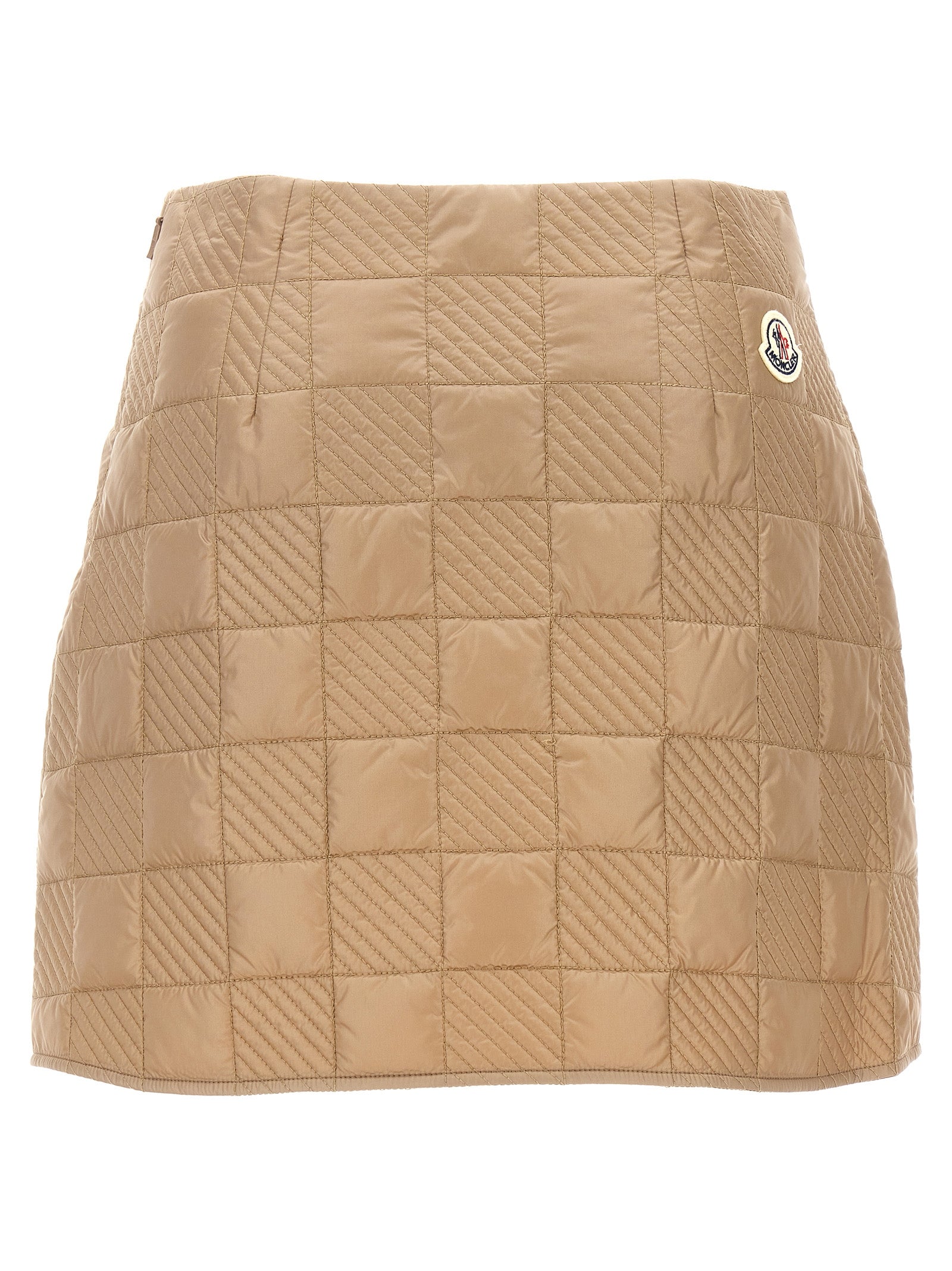 Quilted skirt in embroidered and padded nylon, side zip closure, back logo patch.