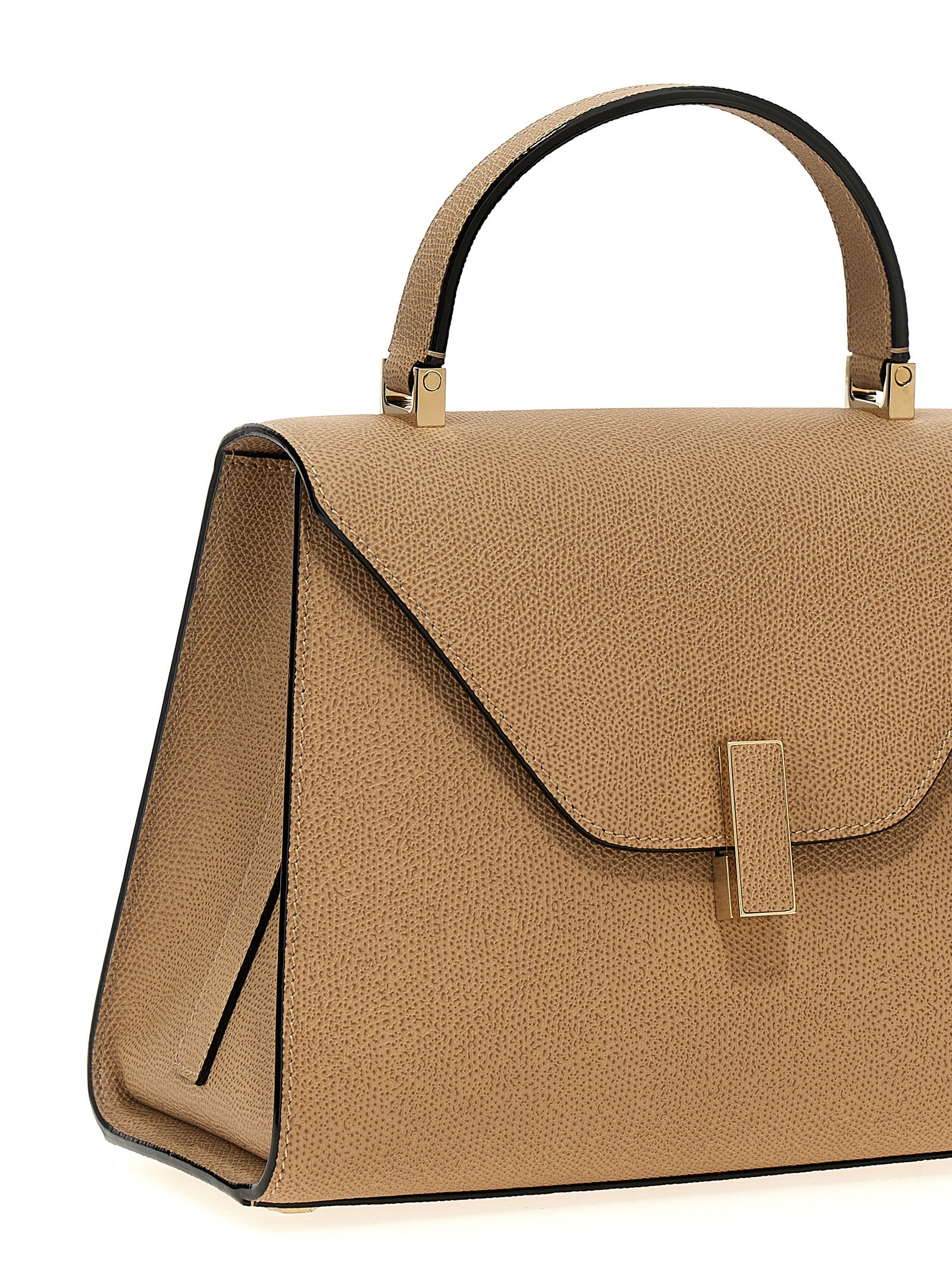 'Iside' medium handbag in Millepunte calf leather, Costa Valextra piping, fixed handle, flap turn-up closure, metal details, adjustable and removable shoulder strap.