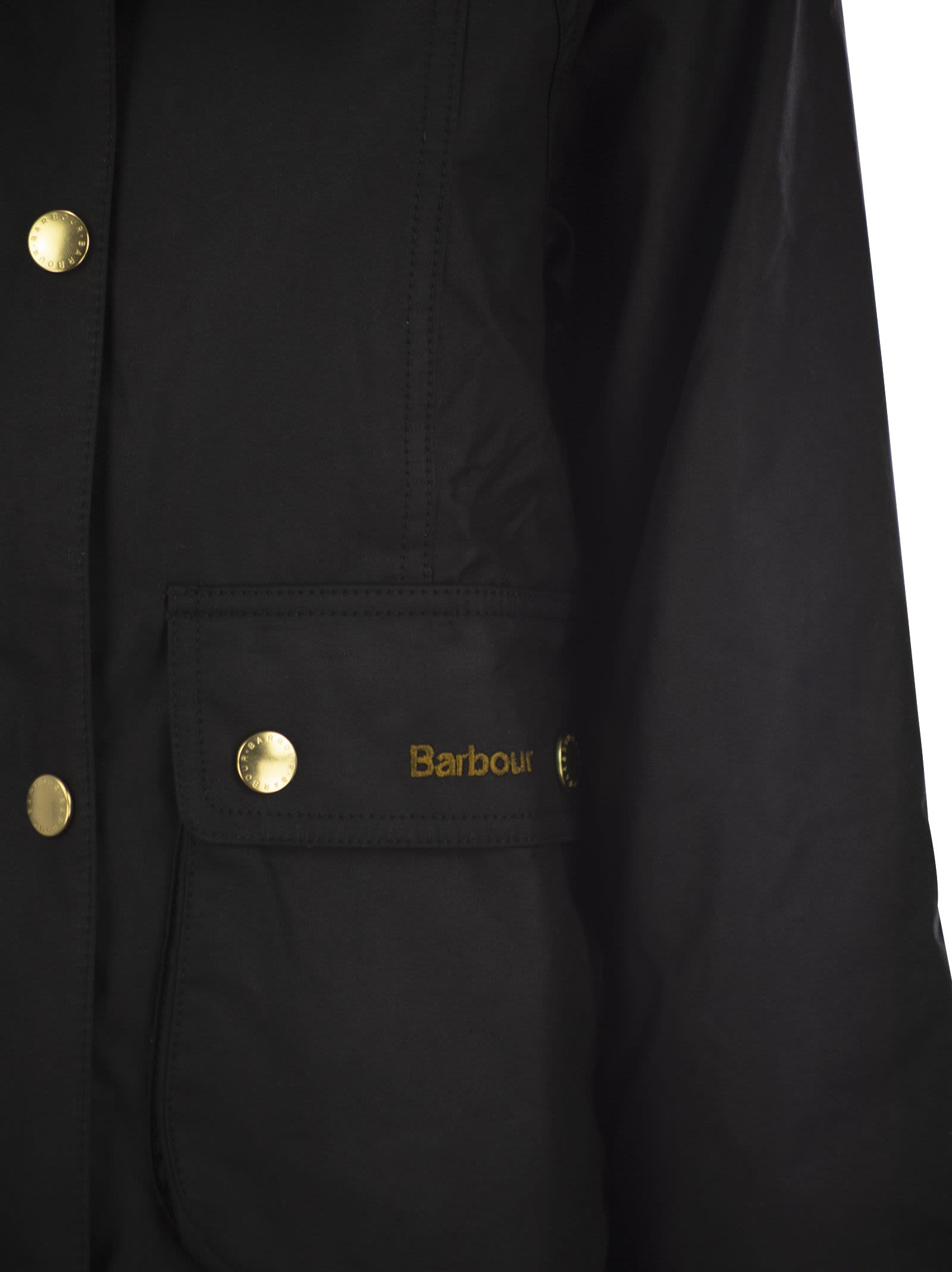 The Beadnell waxed jacket became part of the Barbour collection in 2010, offering a feminine, slightly fitted version of one of the best-selling models, the men's waxed Bedale. This season sees the Beadnell given a modern makeover with a crop cut designed by Barbour to give life to a new outerwear that sports the same details as the original but in an oversized format. Featuring large gold logo press studs and the unmistakable pouch pockets, this style is finished with a slim ribbed collar and maxi elasticated cuffs, giving it a contemporary feel. - Cropped line - Snap button closure - Elasticated cuffs DESIGNER ID: LWX1403 LWX BK71