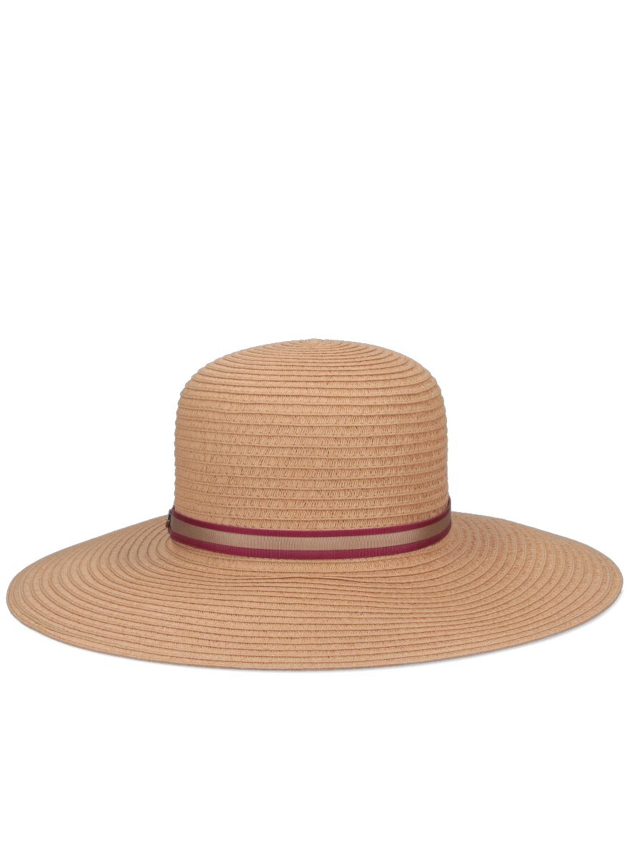 El sombrero Giselle, hecho de trenza trenzada, ofrece resistencia y flexibilidad. Caracterizado por una banda de dos tonos de 1,5 cm con botón automático logado, tiene una cabeza de aproximadamente 9 cm de ancho.