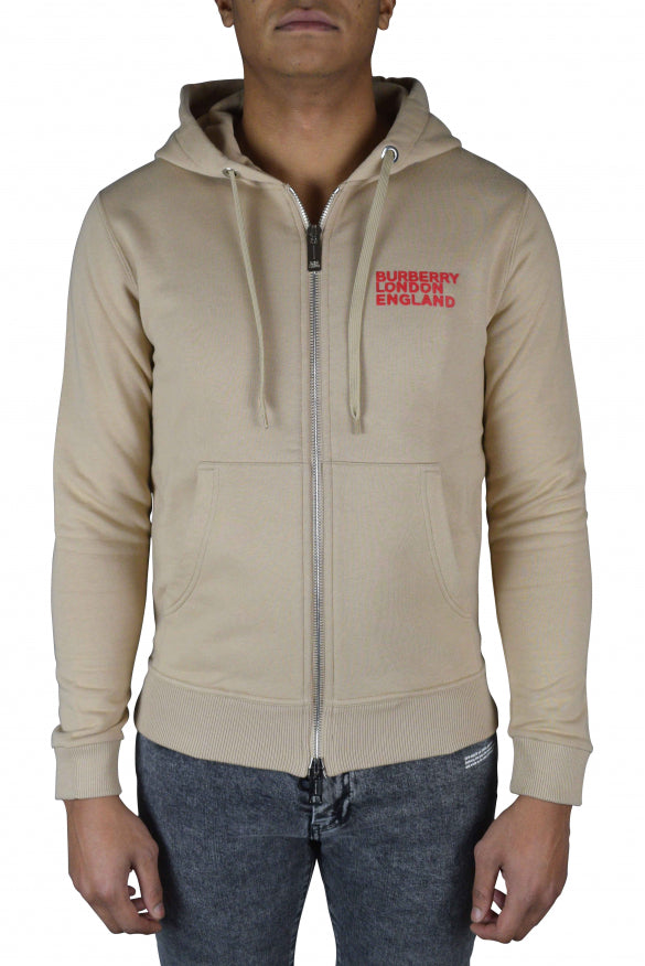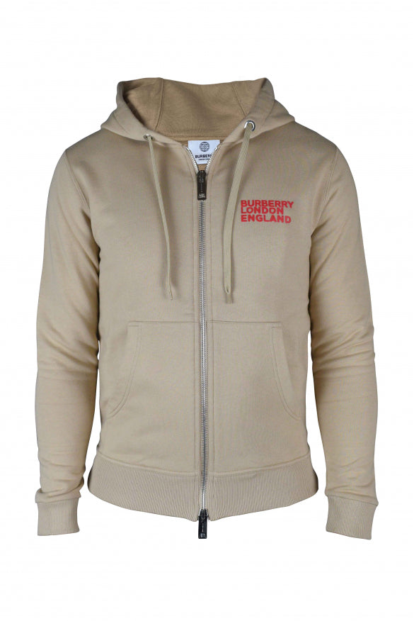 Logotipo impreso Burberry London Inglaterra en rojo en el cofre.