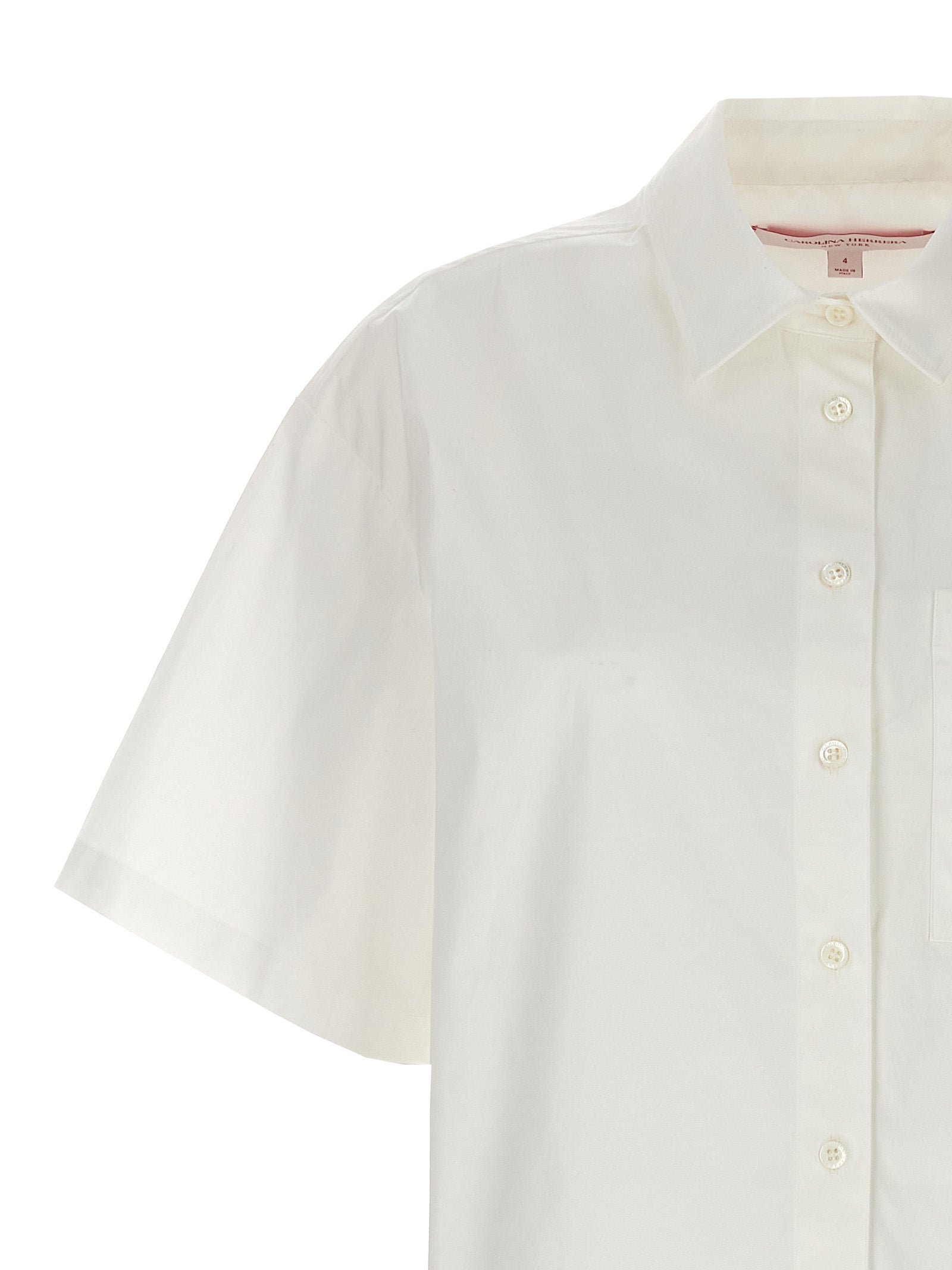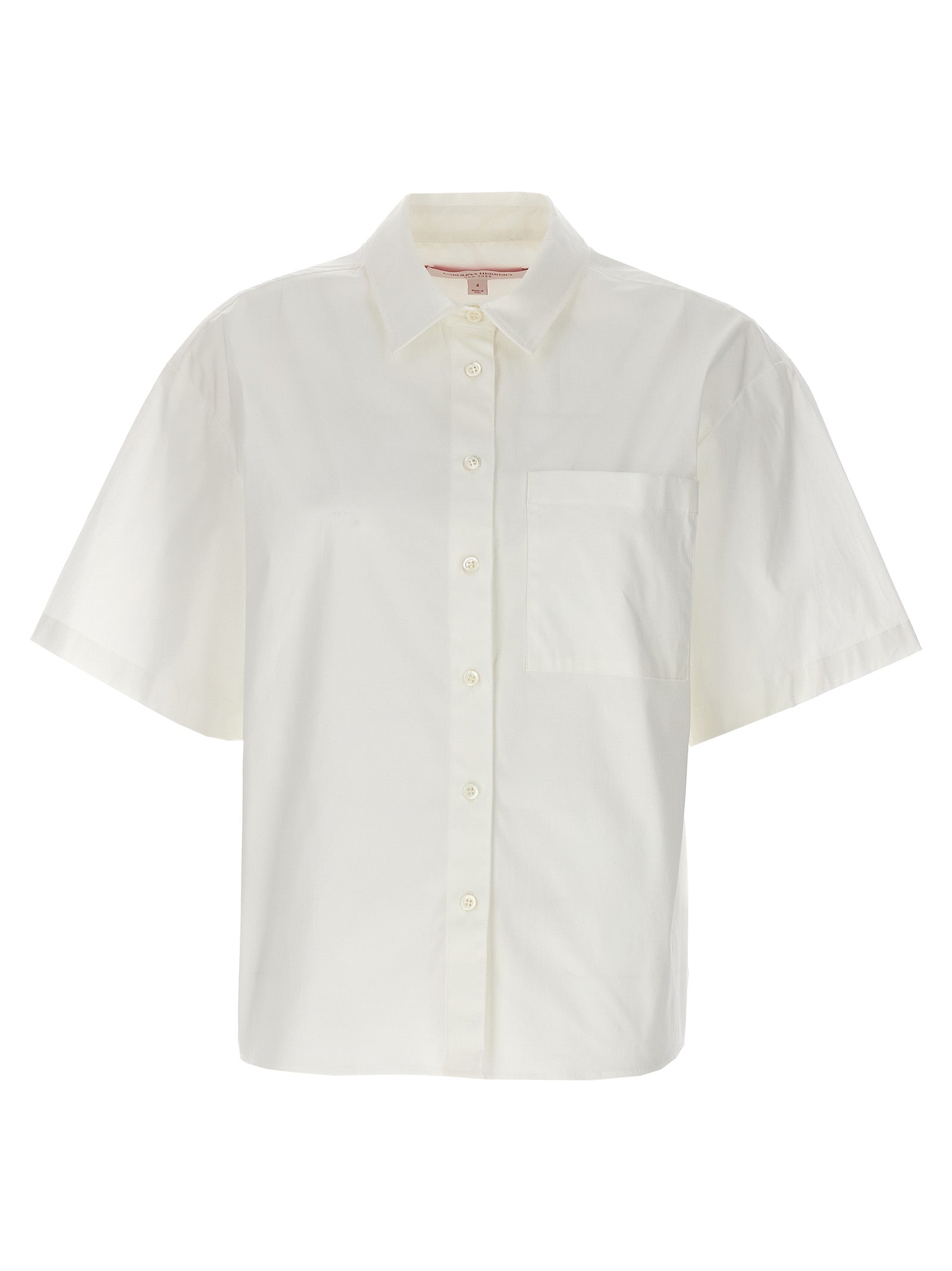 Camisa de algodón, bolsillo delantero, cierre de botones, mangas cortas.